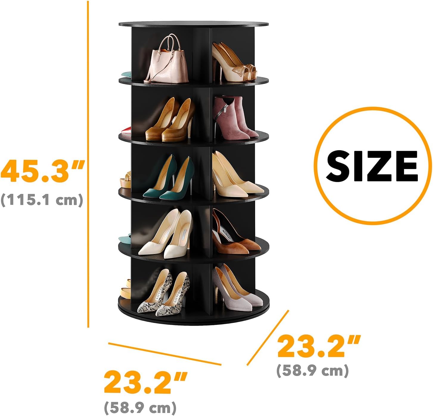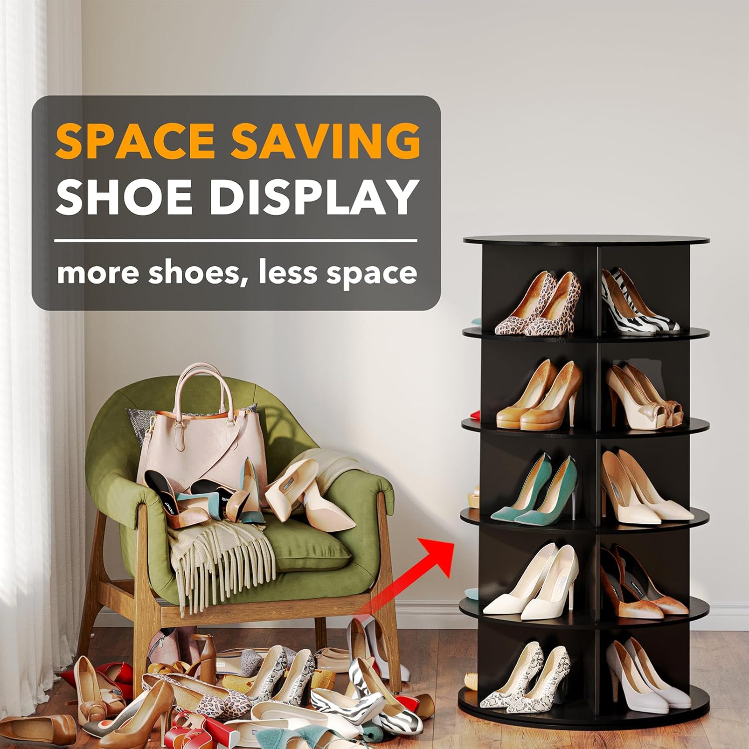 SpaceAid Black 7-Tier Spinning Rotating Shoe Rack Organizer, Shoe Display Tower Lazy Susan, Revolving Shoes Rack StorageOrganization, 360 Vertical Bags Holder Rotate Organizer