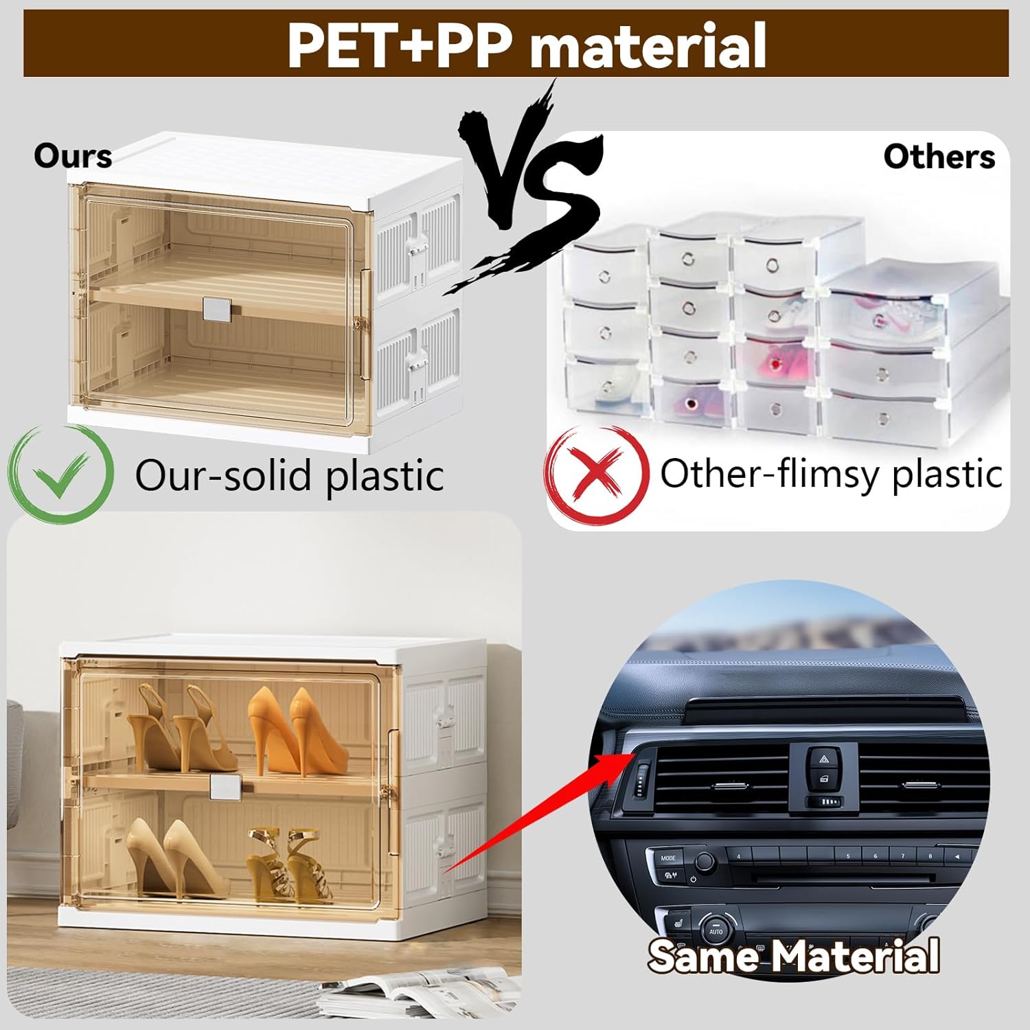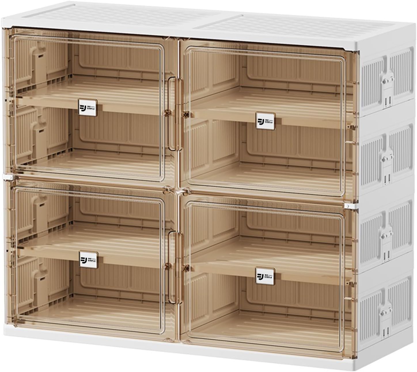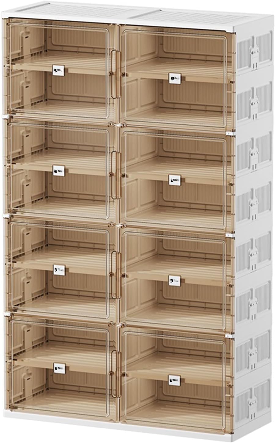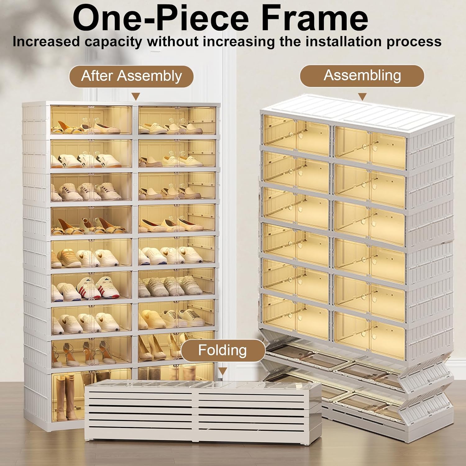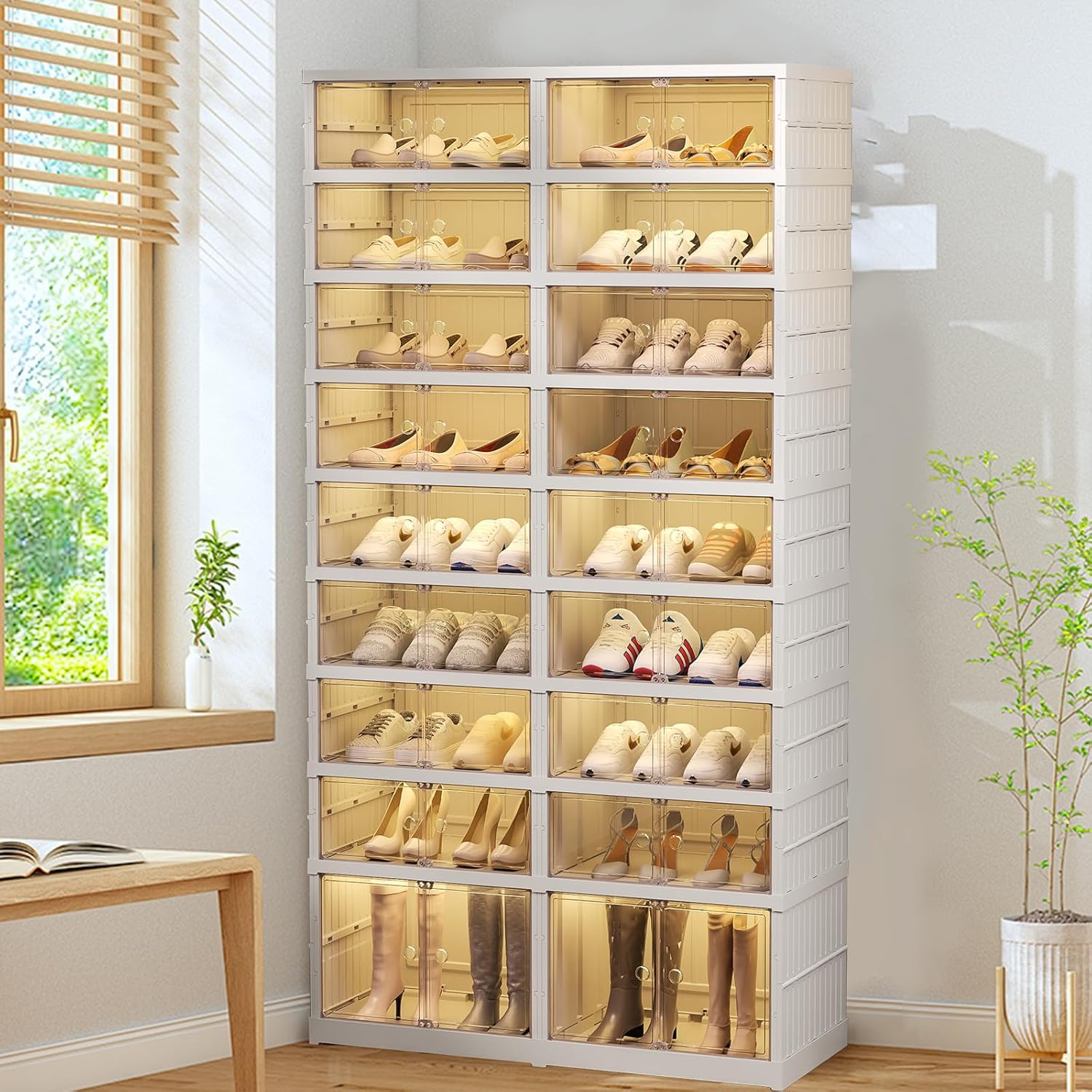 16 Pairs Shoes Storage Cabinet of 3-Step Fast Installation,Plastic Shoe Box with Clear Magnetic Door for Display, Shoe Organizer for Sneaker, Sandals, Heels (2 Row, 4 Tier)