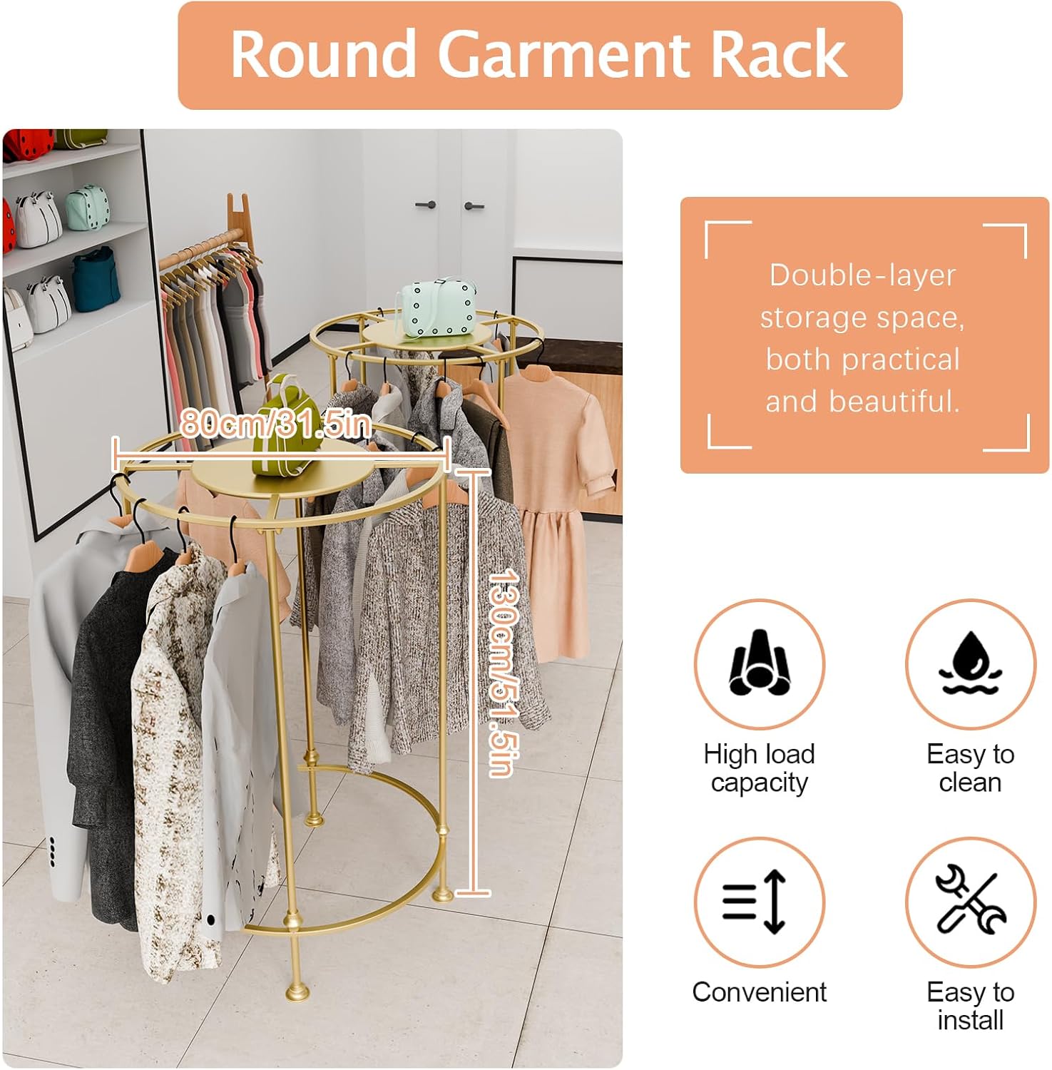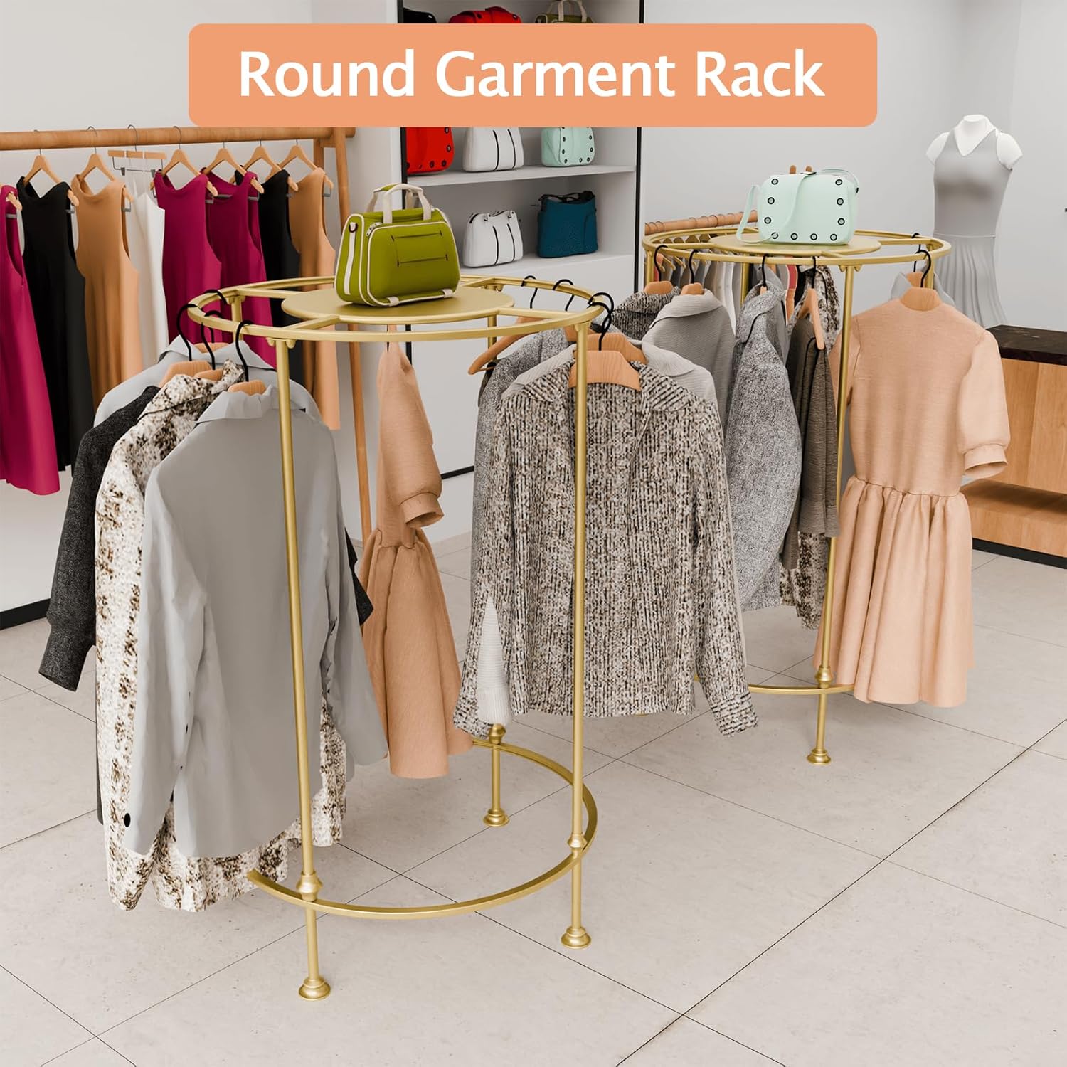 Round Garment Rack,Freestanding Clothes Hanging Rack,for Shopping Malls Retail Bedroom (Gold)