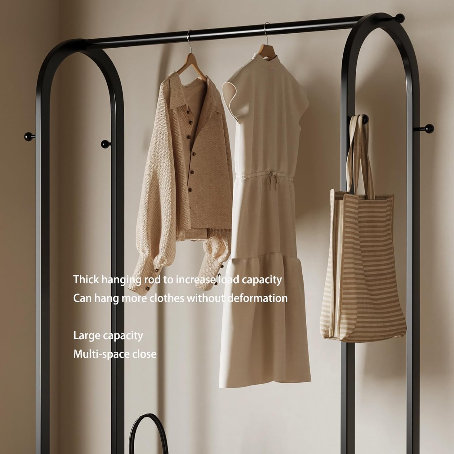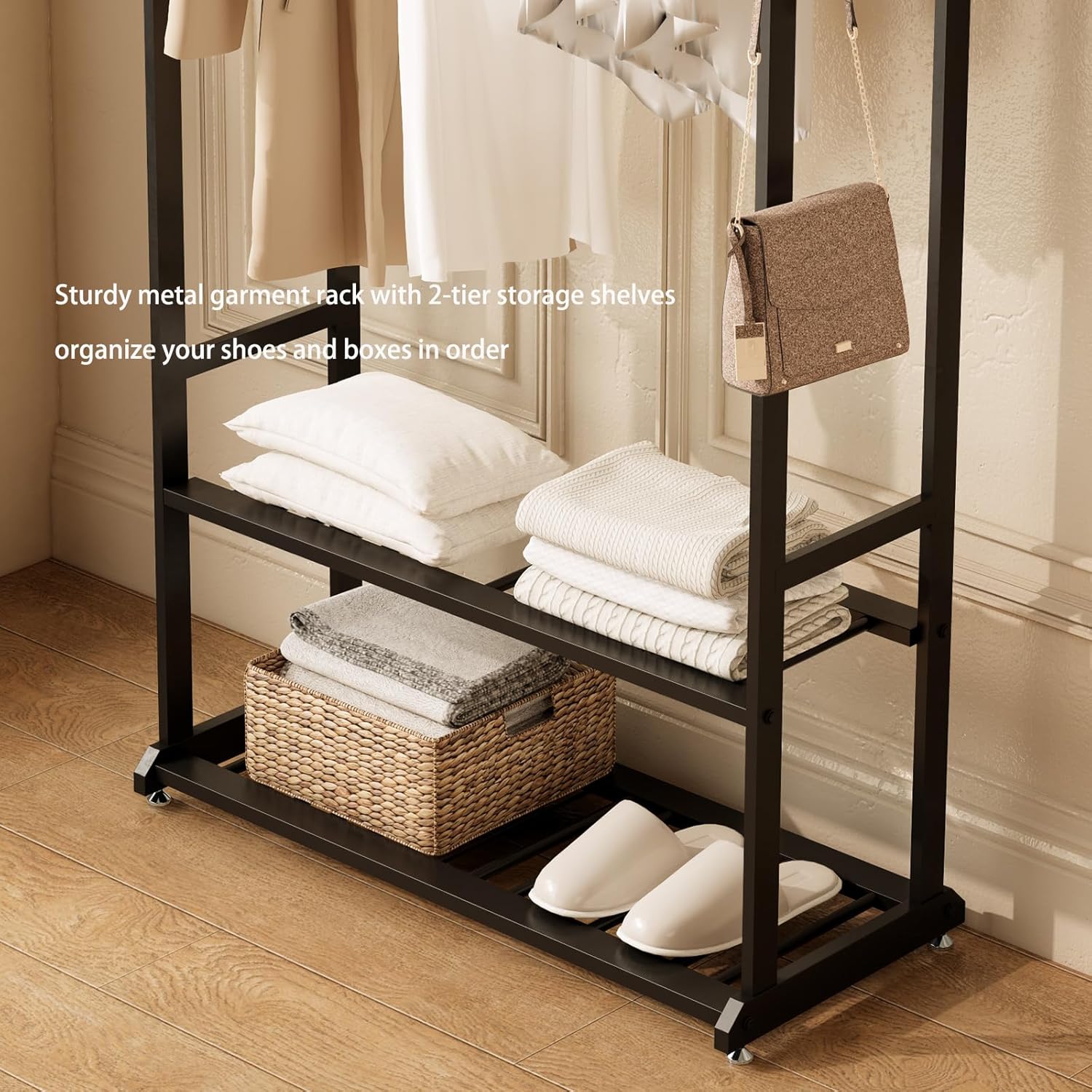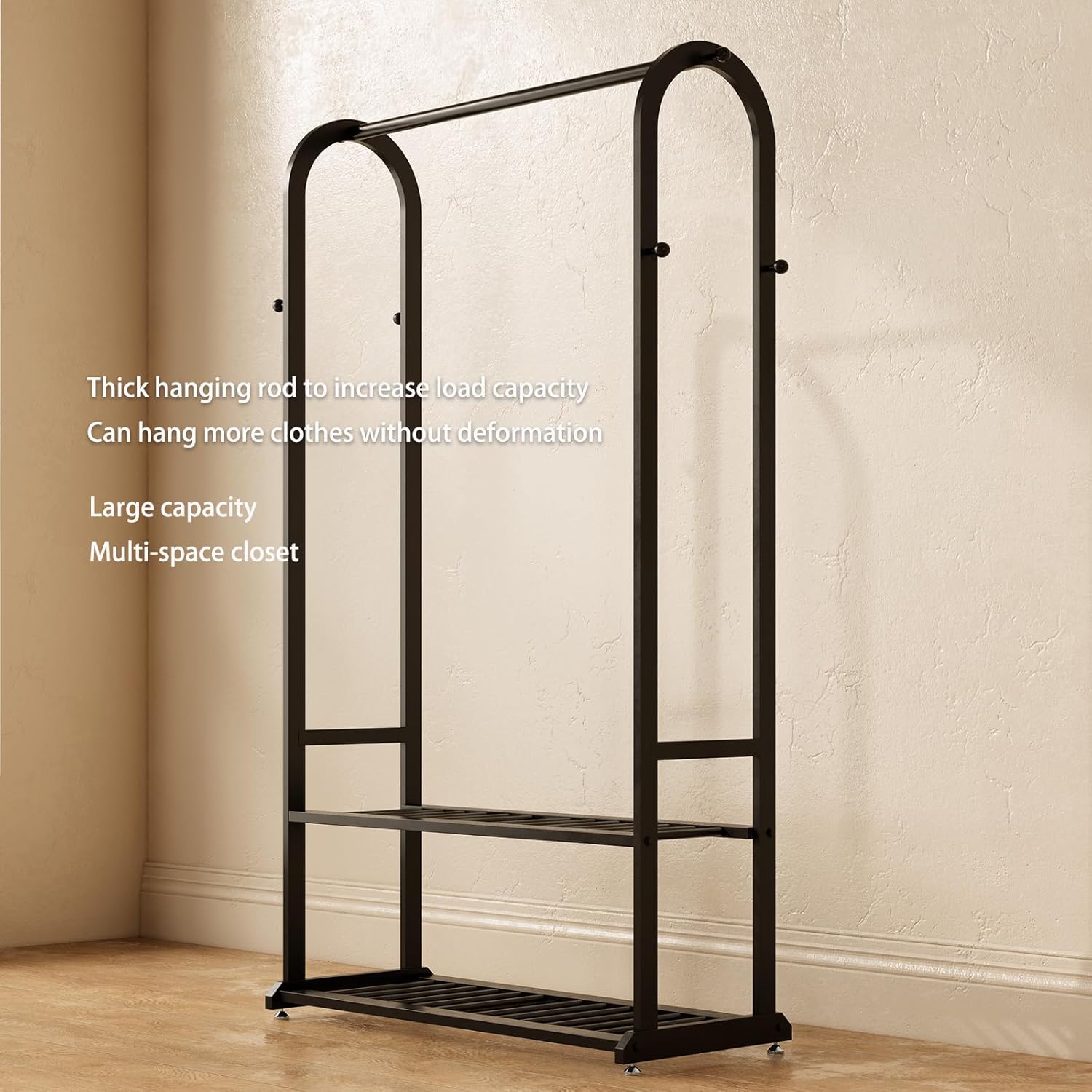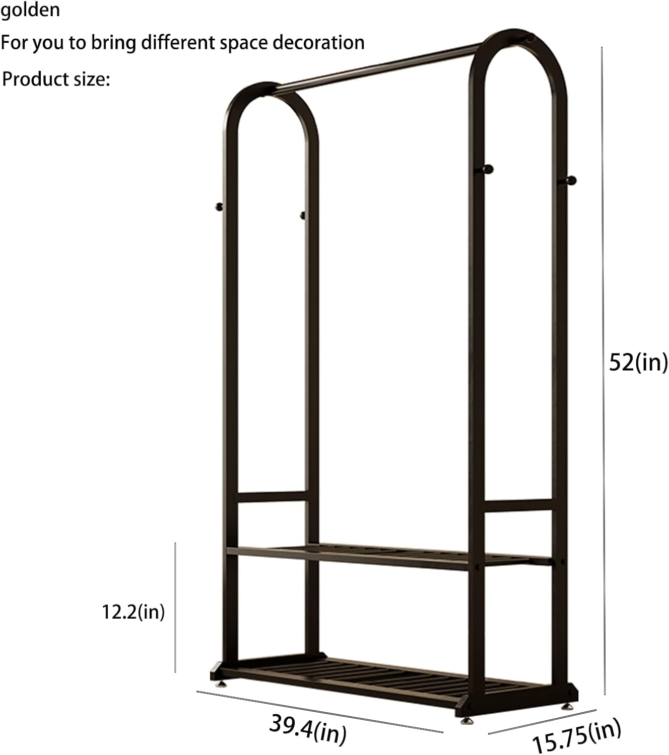 heavy duty clothes rack,gold clothing rack with bottom shelves and 6 side hooks,Metal garment rack for hanging clothes for Bedroom