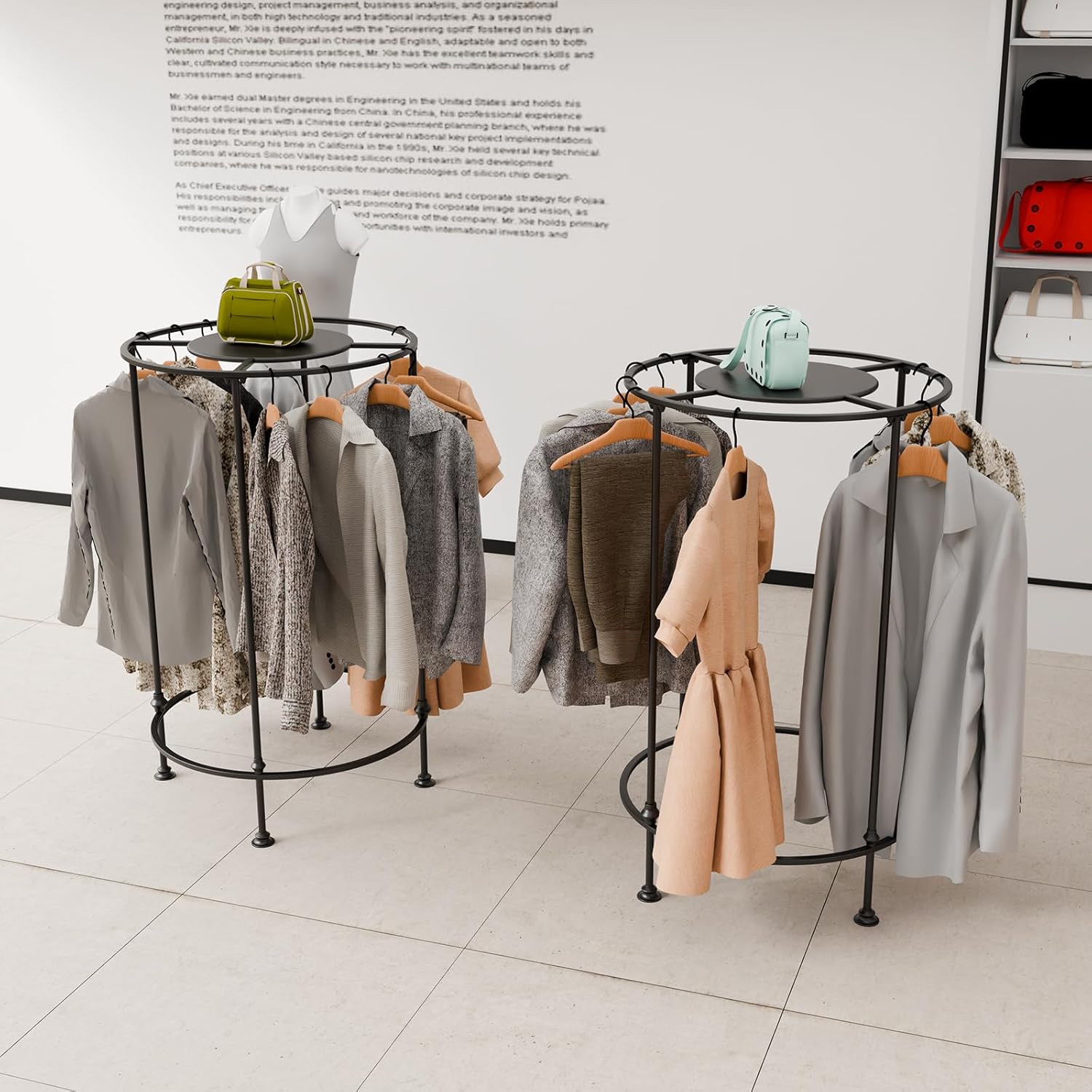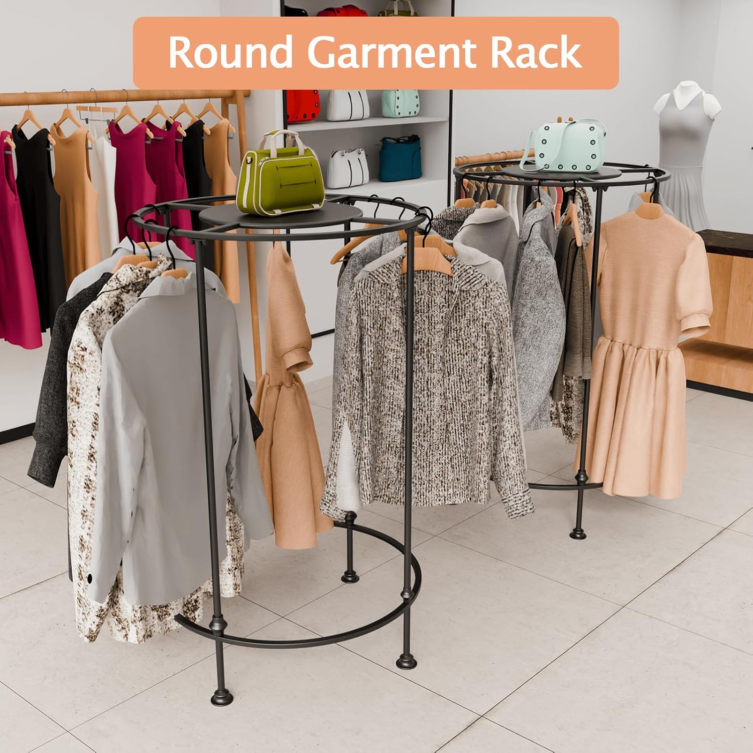 Round Garment Rack,Freestanding Clothes Hanging Rack,for Shopping Malls Retail Bedroom (Black)
