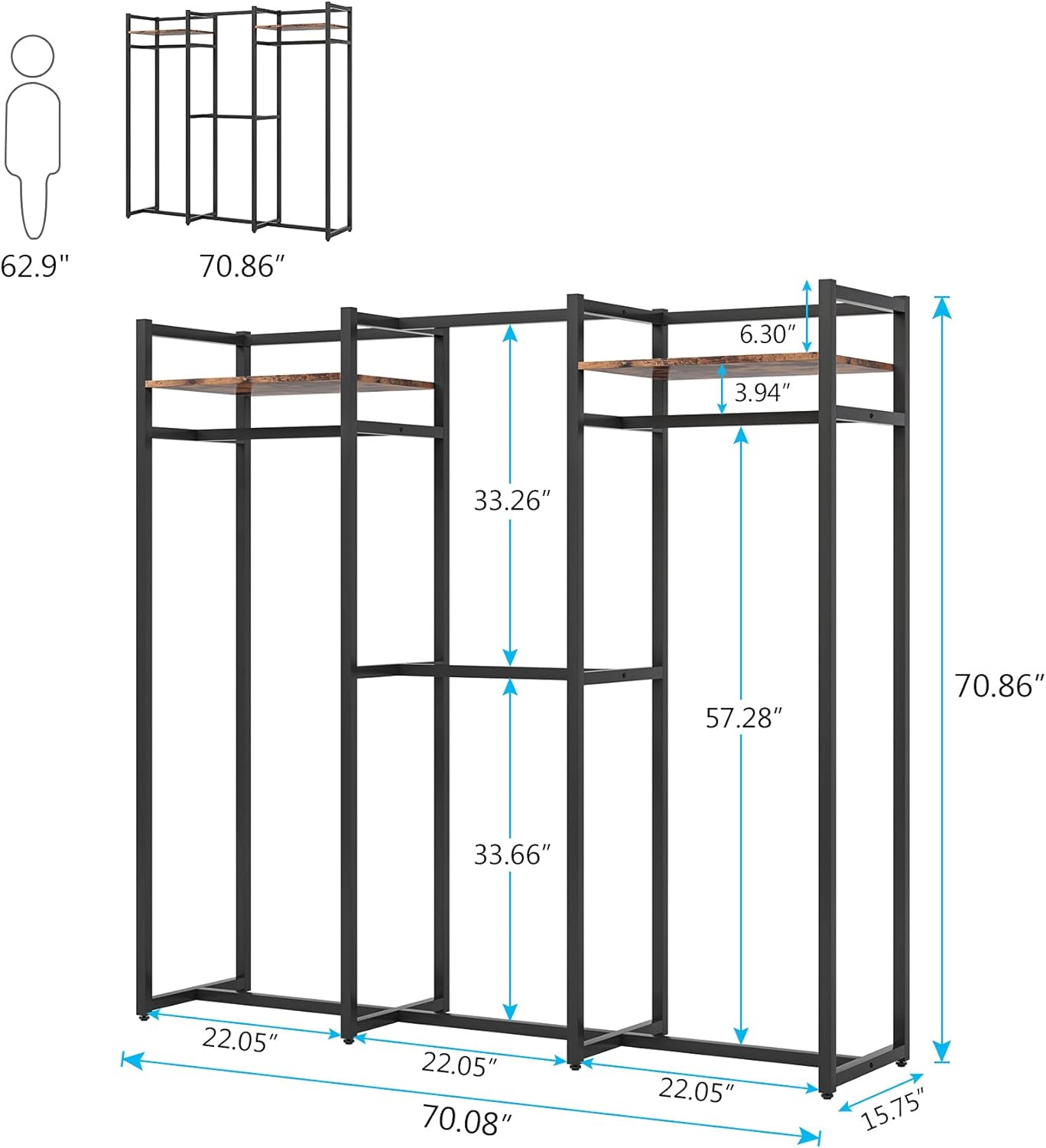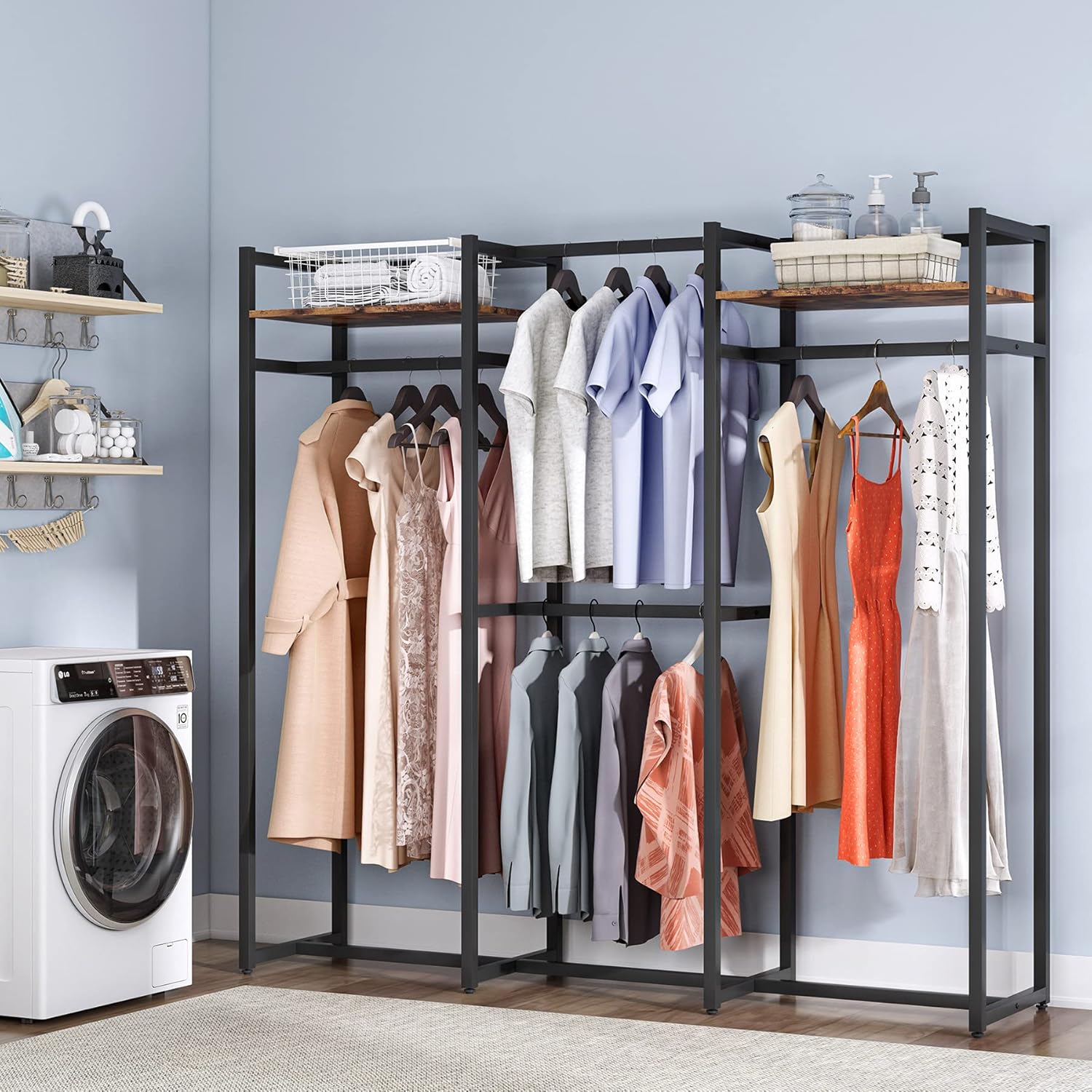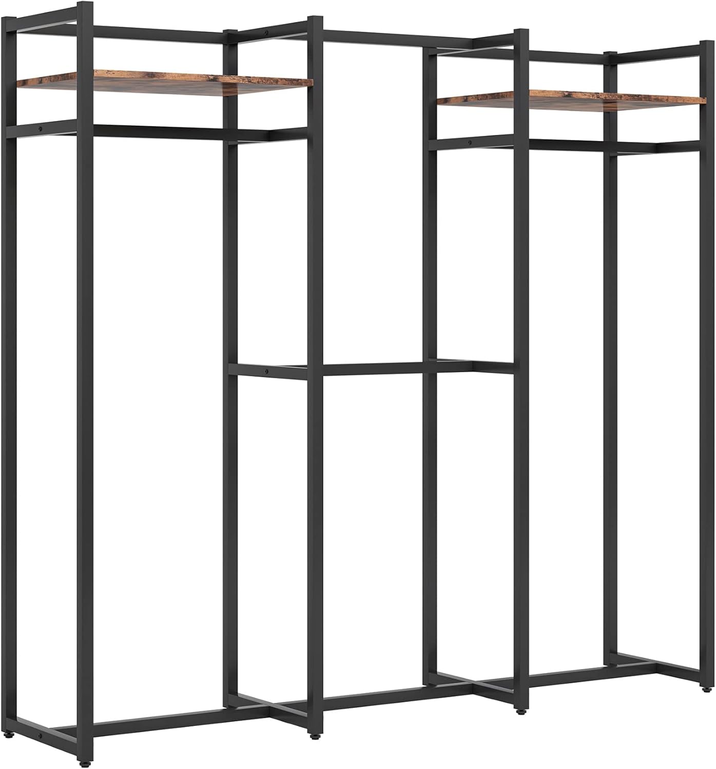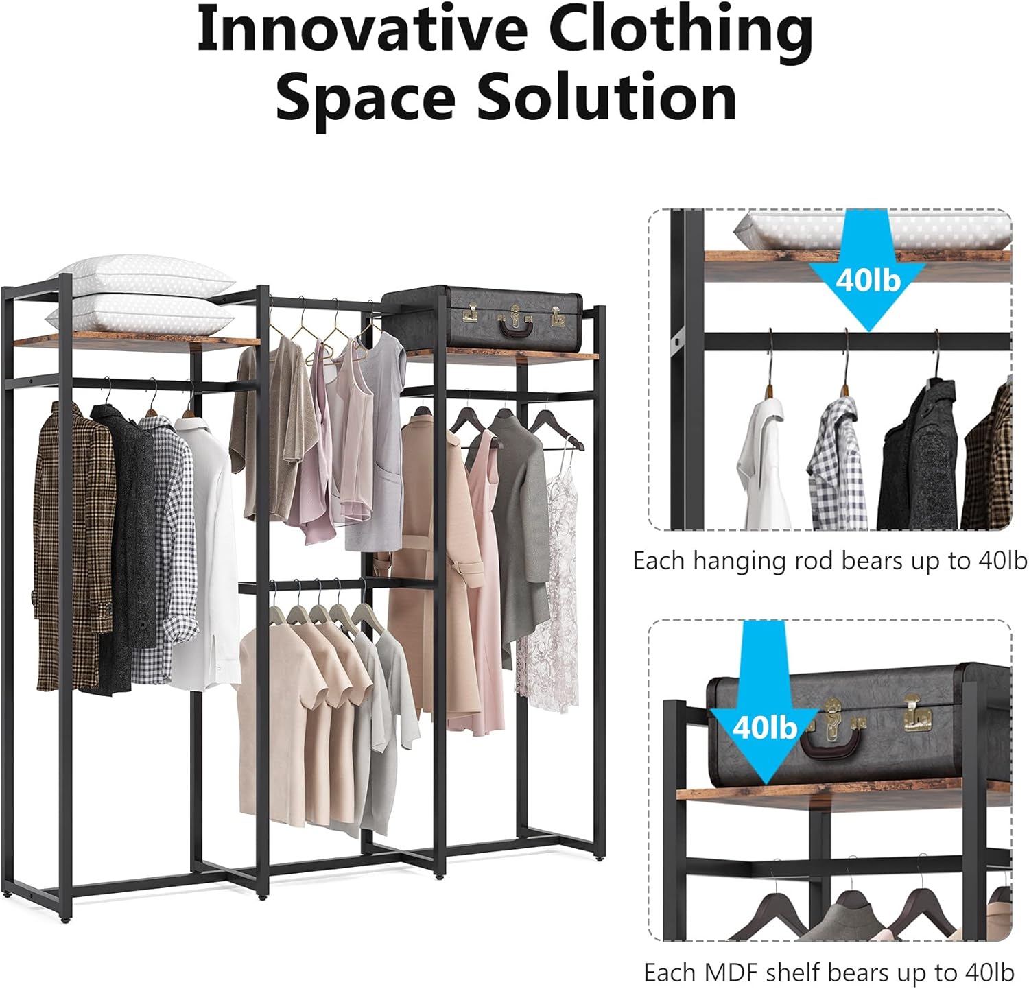 Tribesigns Garment Rack Heavy Duty Clothes Rack, Free Standing Closet Organizer with Shelves and Hanging Rod, Large Metal Clothing Rack for Hallway, Bedroom, Max Load 500Lbs (Dark Black)