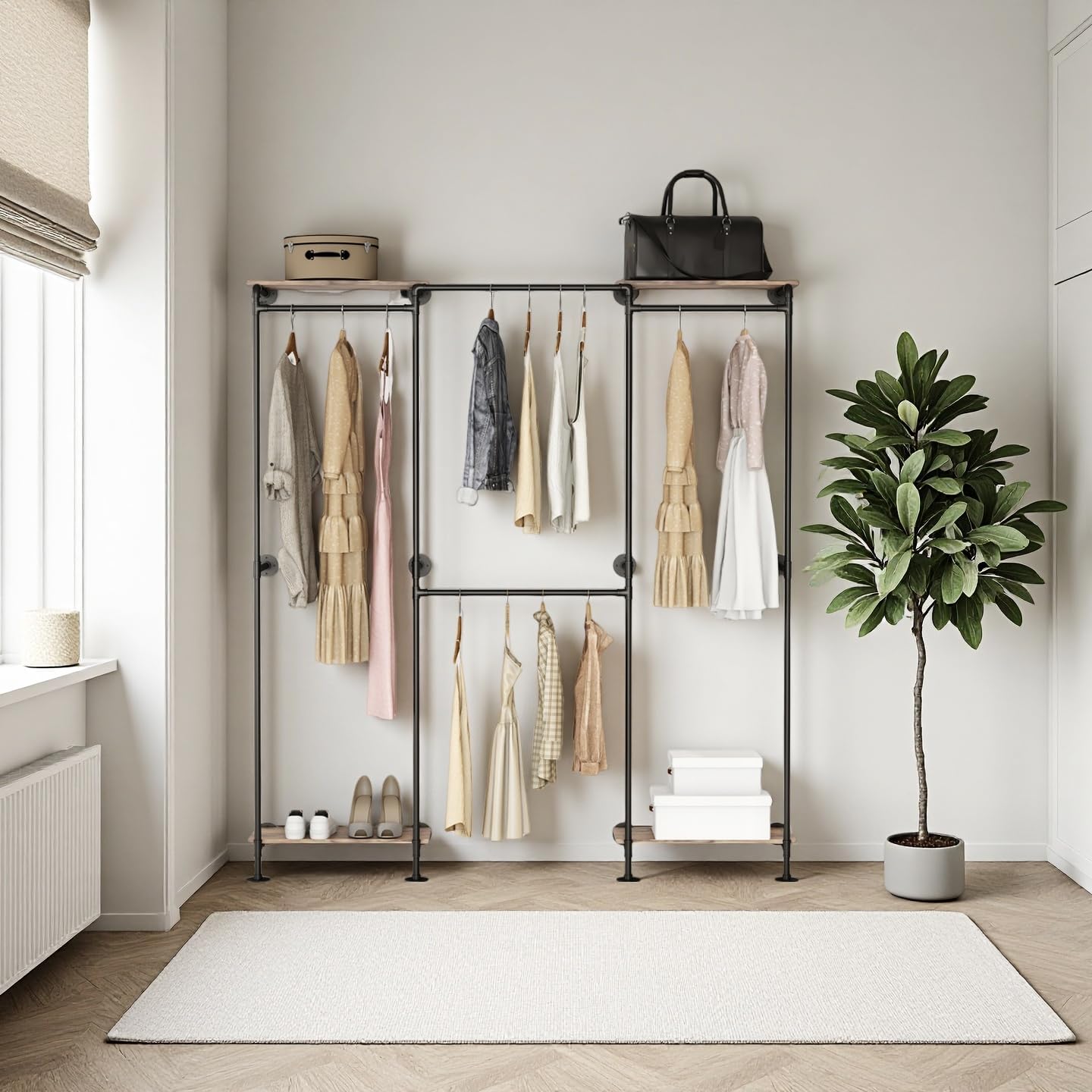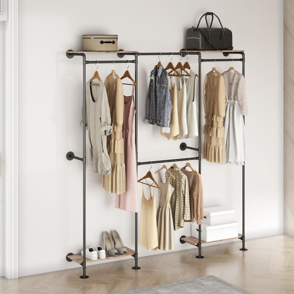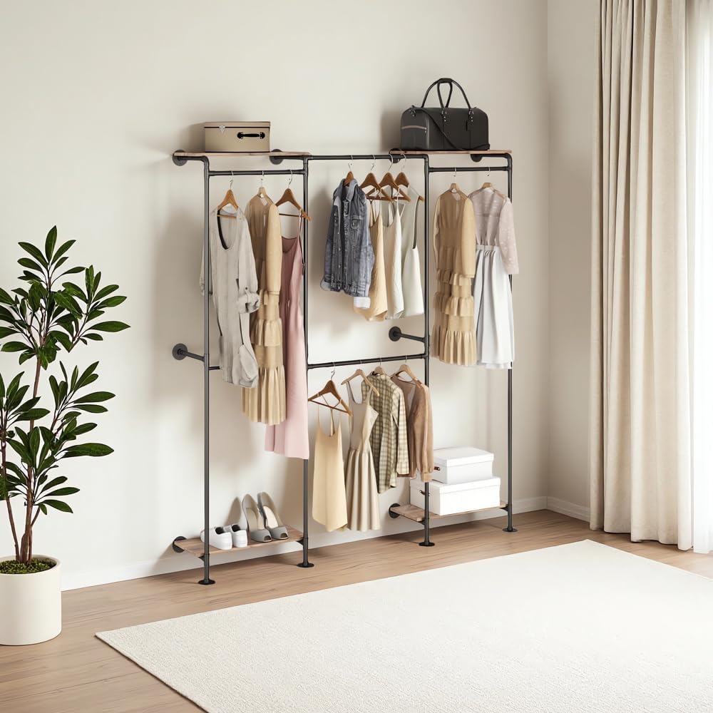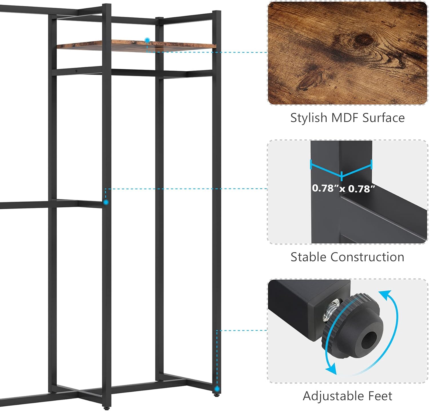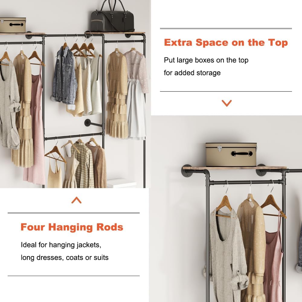 Tribesigns Garment Rack Heavy Duty Clothes Rack, Free Standing Closet Organizer with Shelves and Hanging Rod, Large Metal Clothing Rack for Hallway, Bedroom, Max Load 500Lbs (Dark Black)