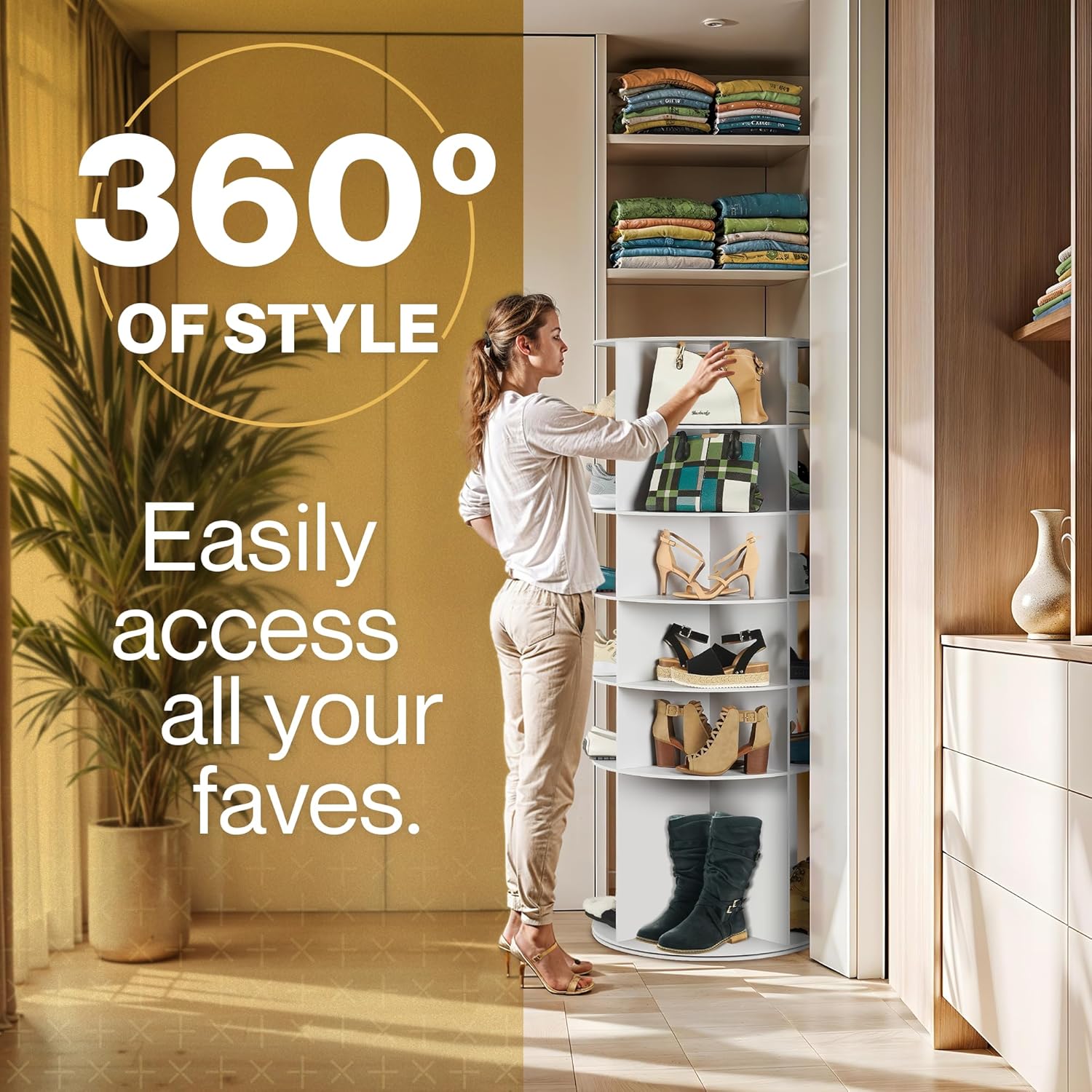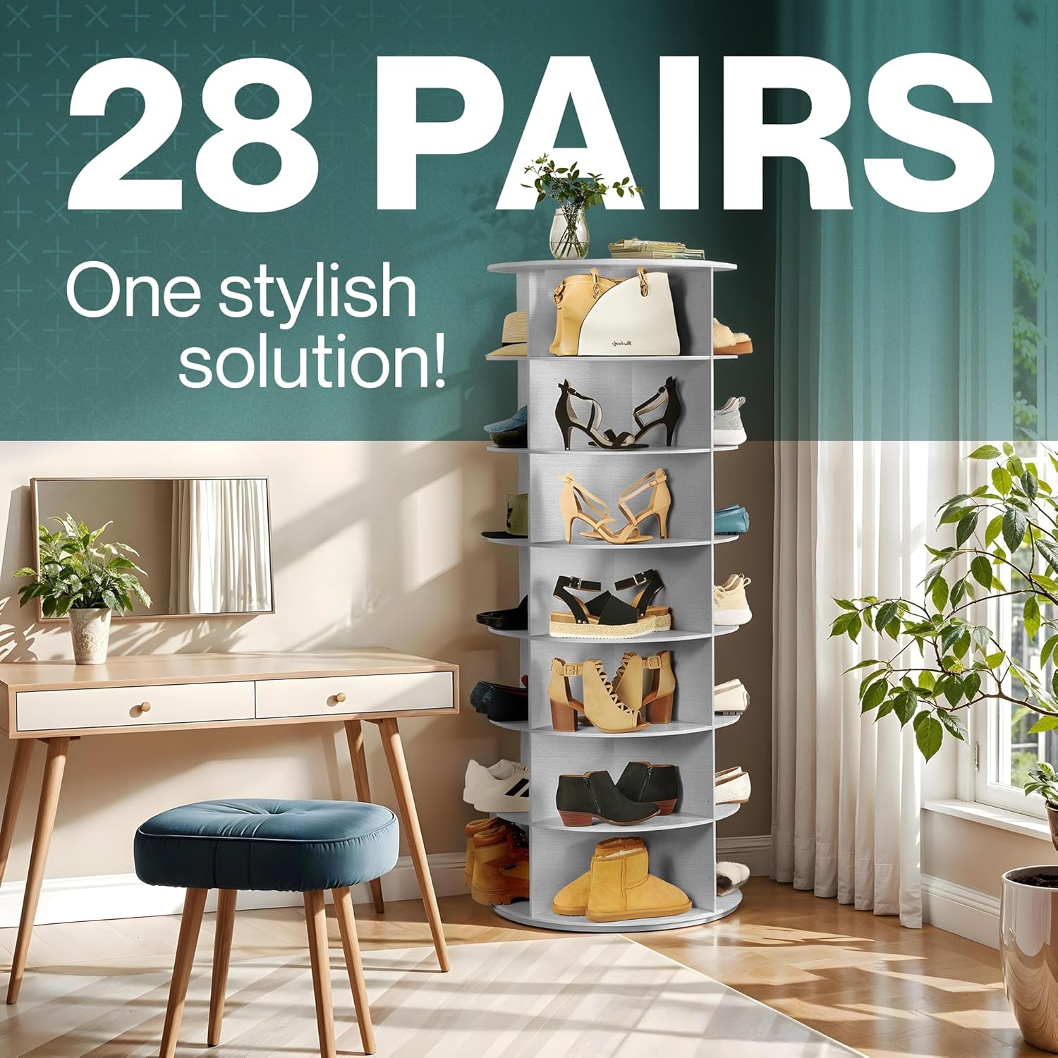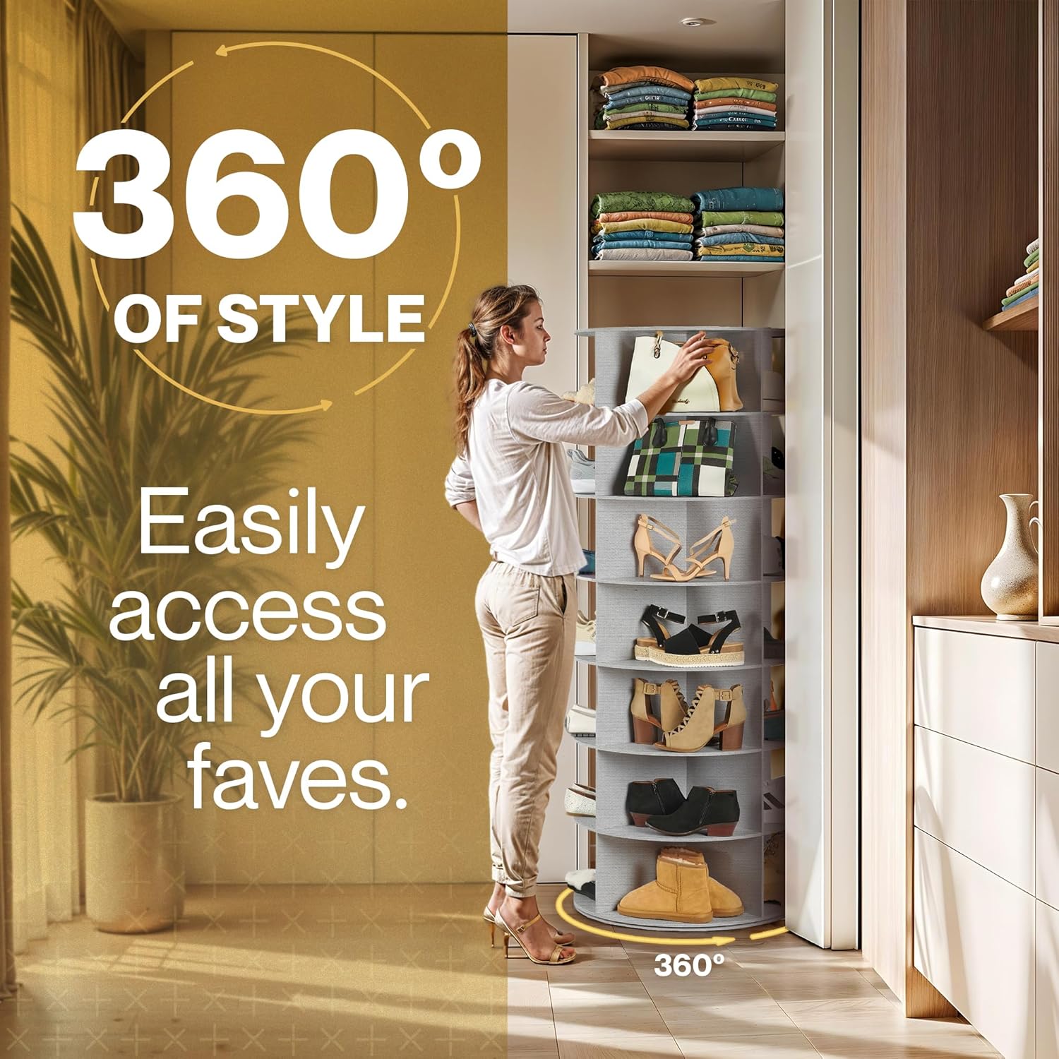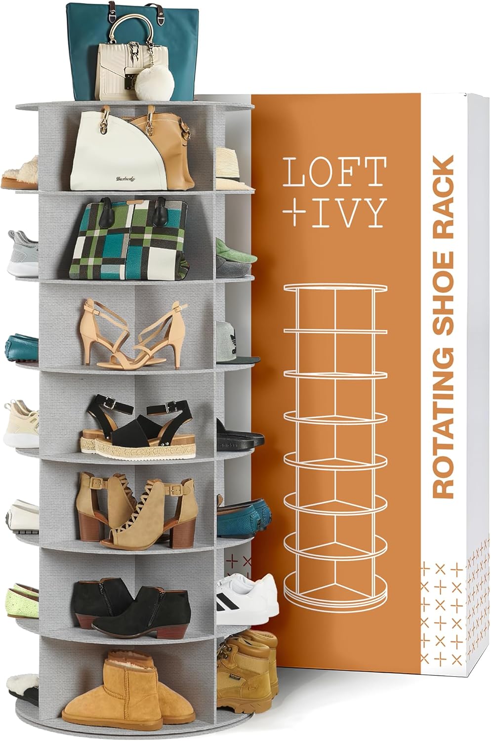 LOFT + IVY 7 Tier Rotating Shoe Rack Tower – 360° Spinning Storage Organizer, Modern Round Shoe Carousel for Closet, Entryway, Bedroom – Space Saving Rotating Lazy Susan Storage Tower