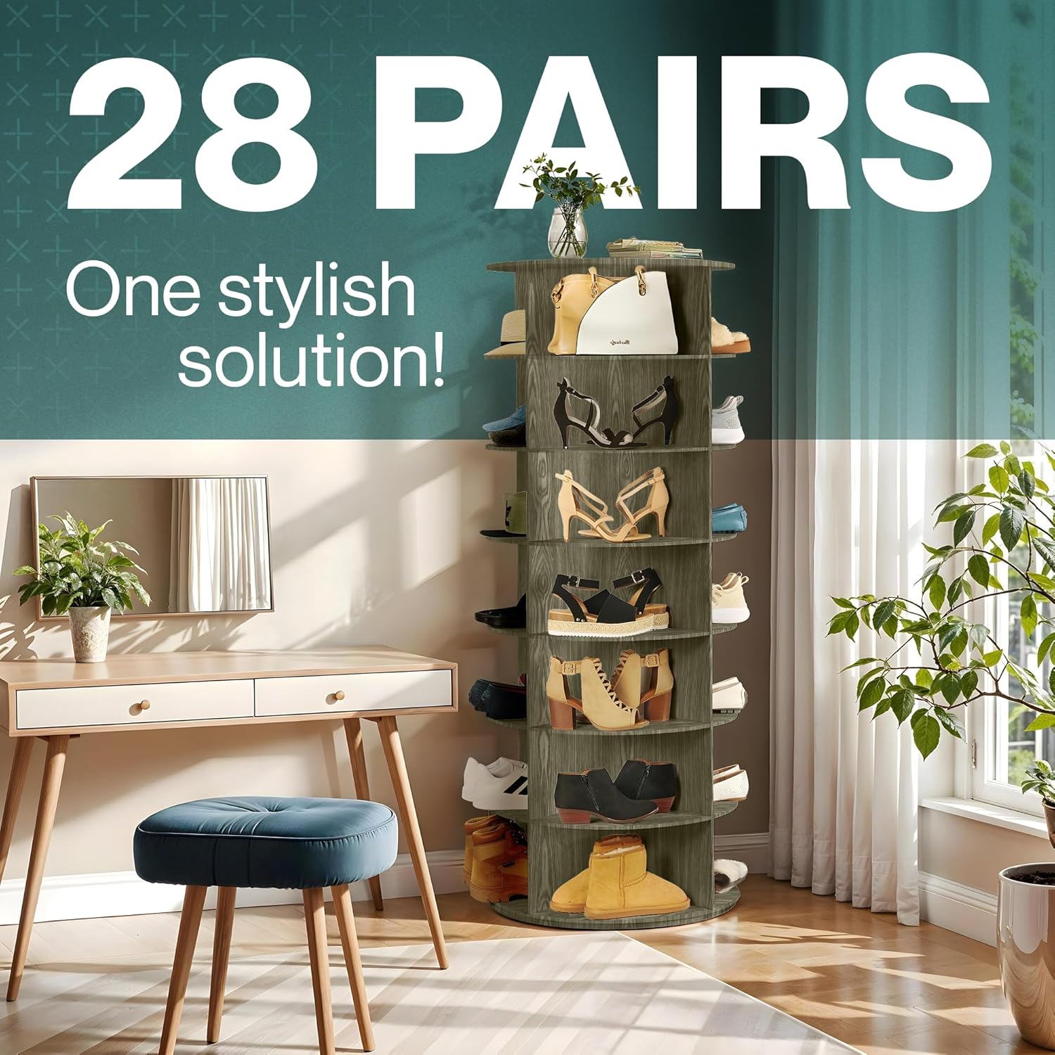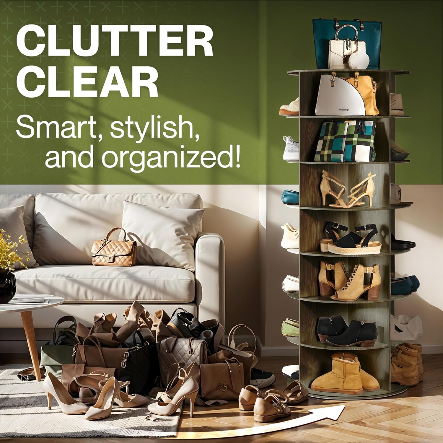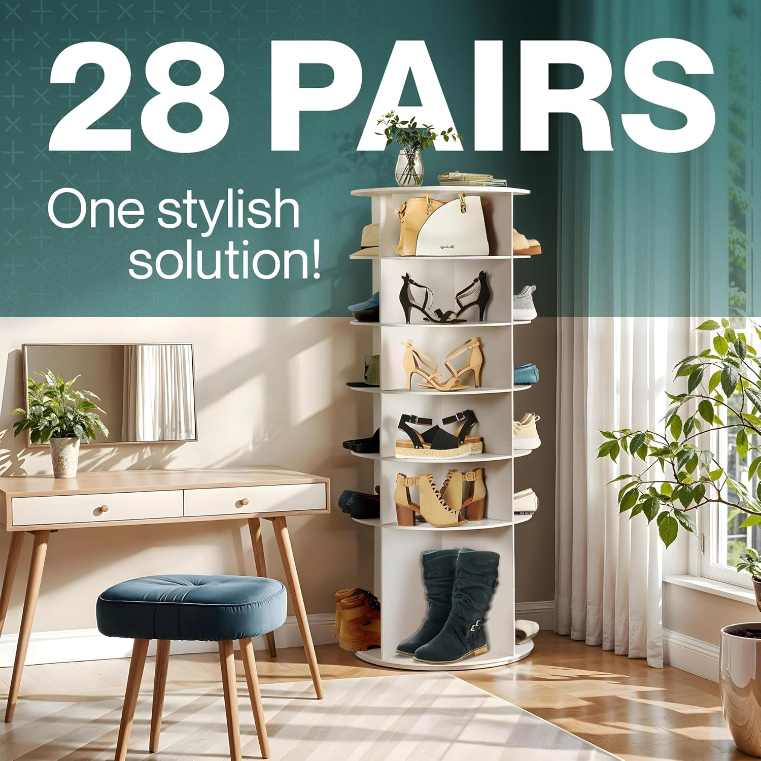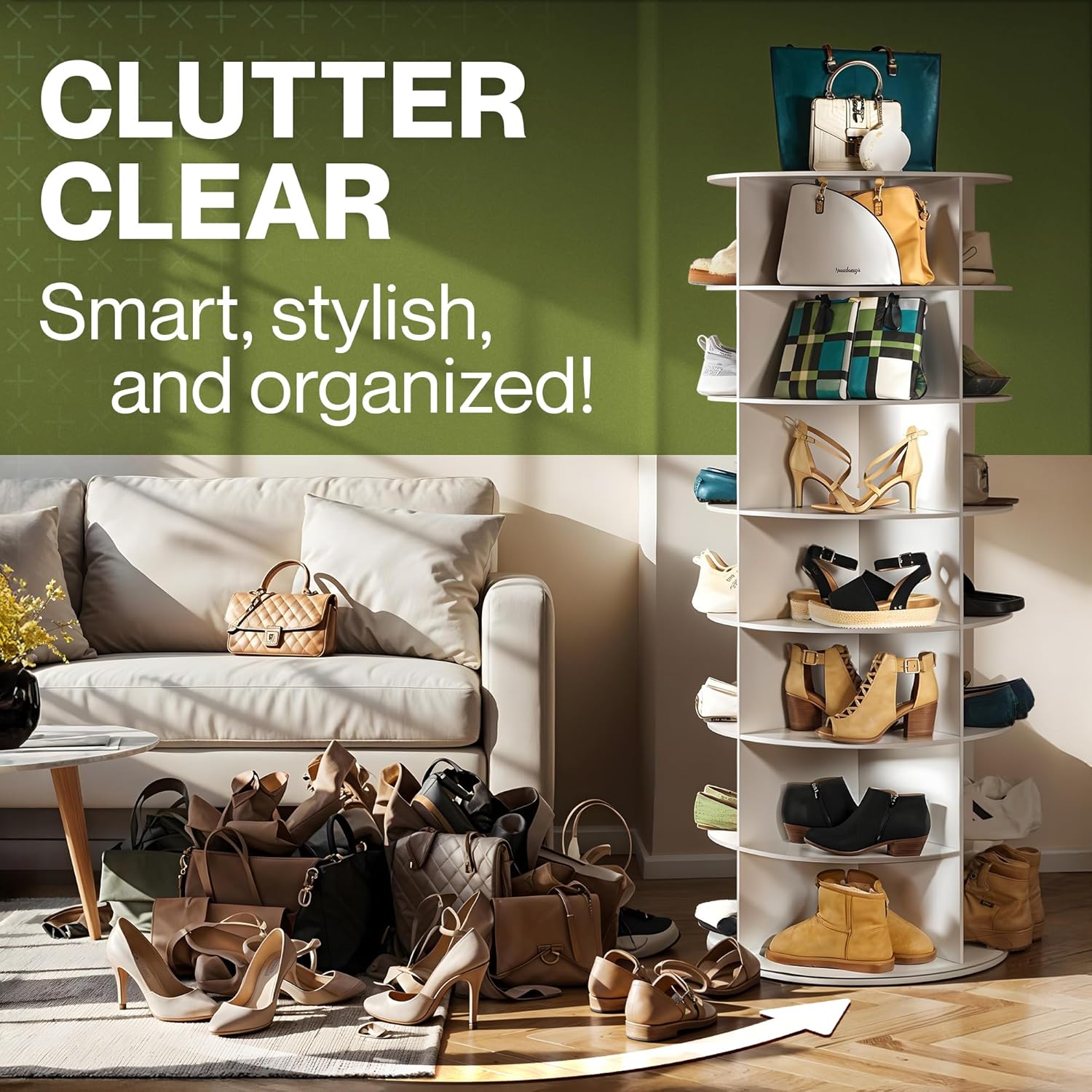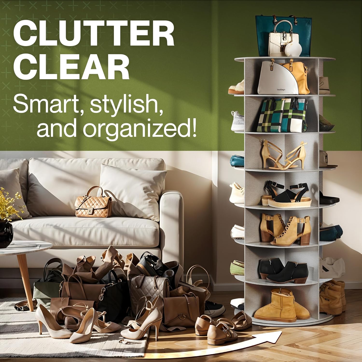 LOFT + IVY 7 Tier Rotating Shoe Rack Tower – 360° Spinning Storage Organizer, Modern Round Shoe Carousel for Closet, Entryway, Bedroom – Space Saving Rotating Lazy Susan Storage Tower
