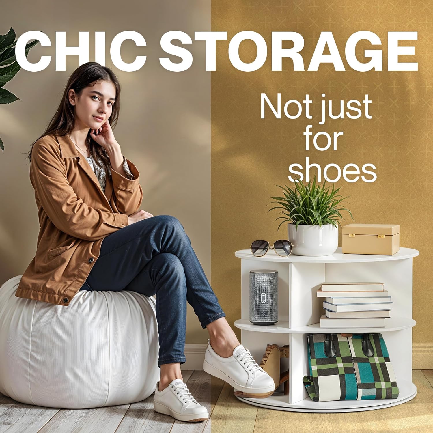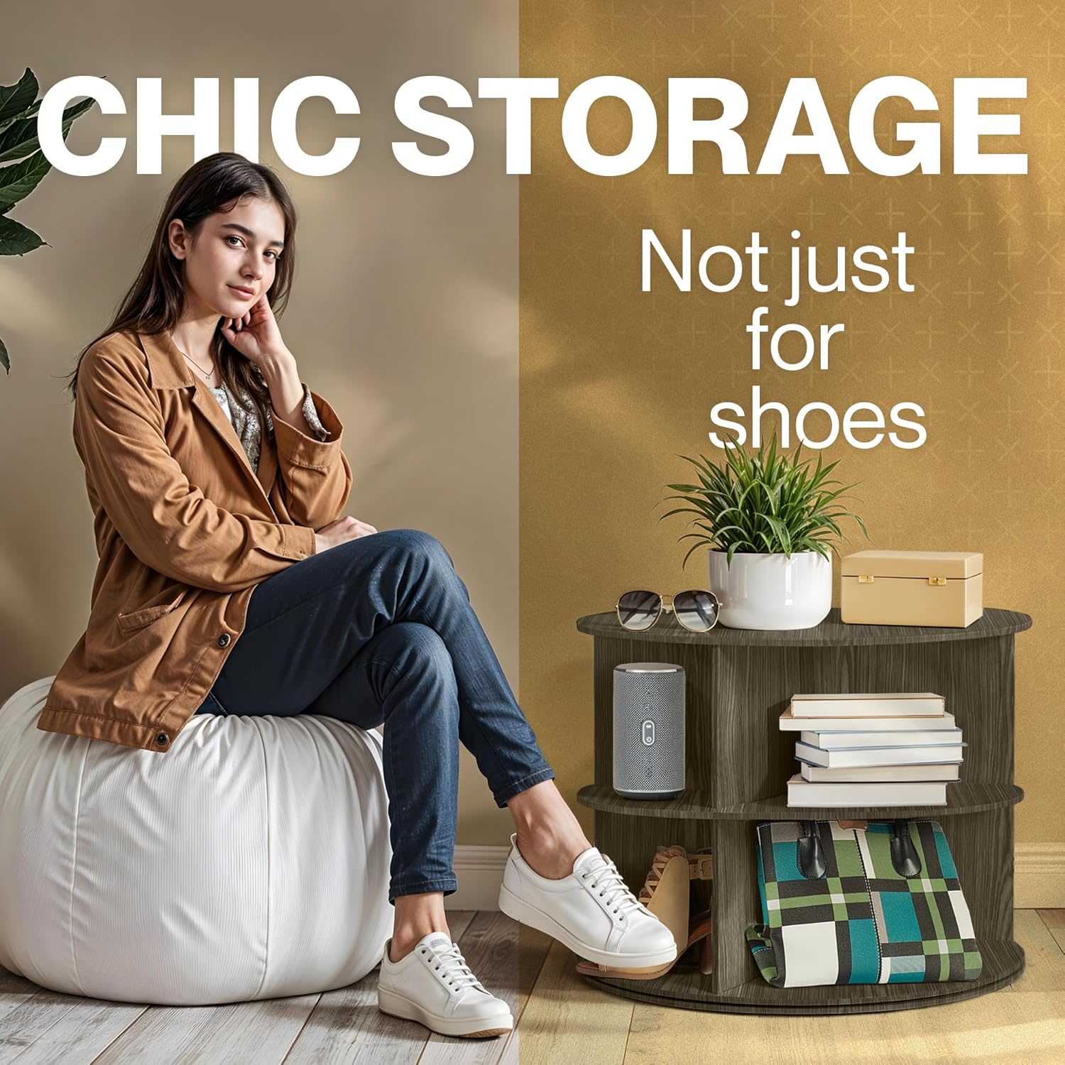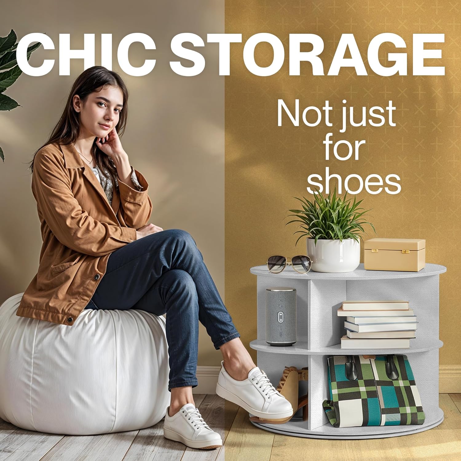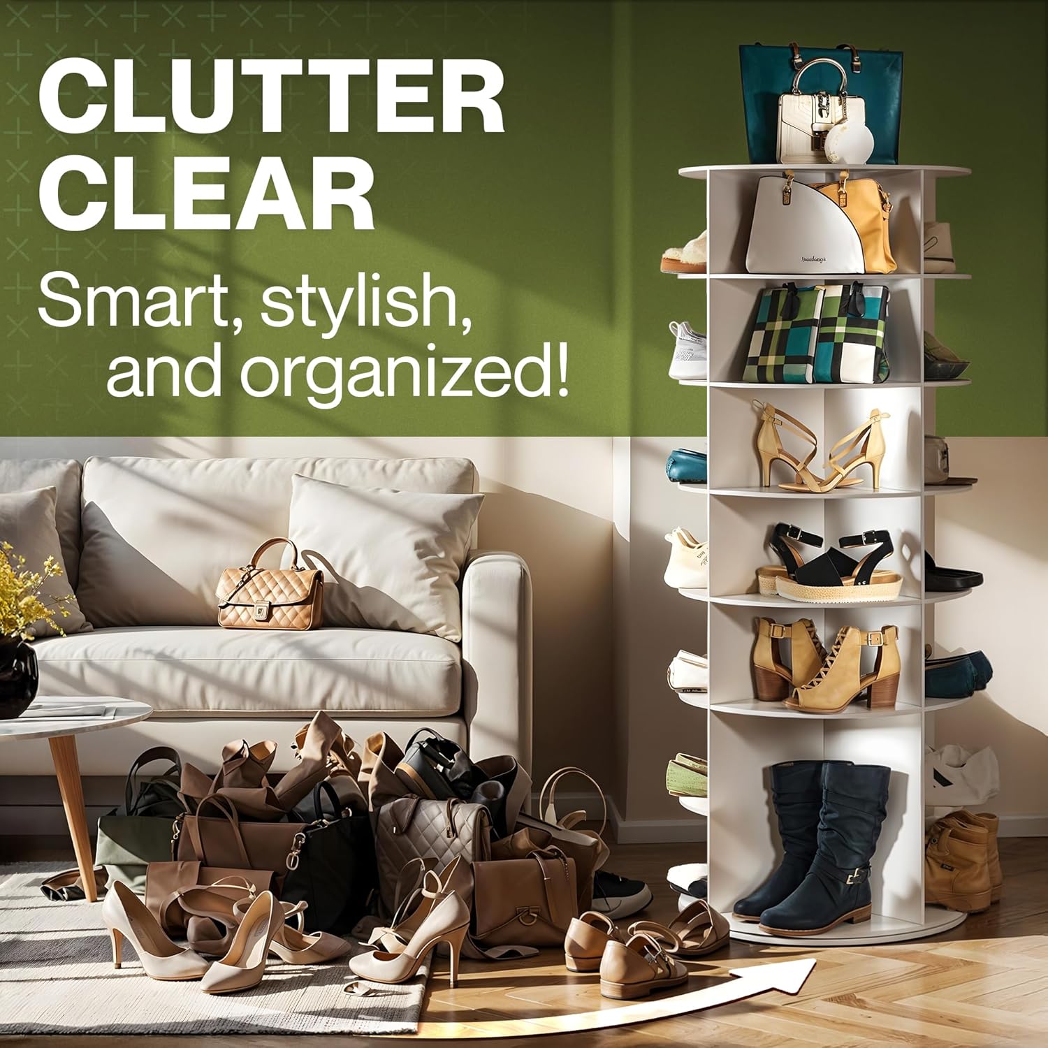 LOFT + IVY 7 Tier Rotating Shoe Rack Tower – 360° Spinning Storage Organizer, Modern Round Shoe Carousel for Closet, Entryway, Bedroom – Space Saving Rotating Lazy Susan Storage Tower