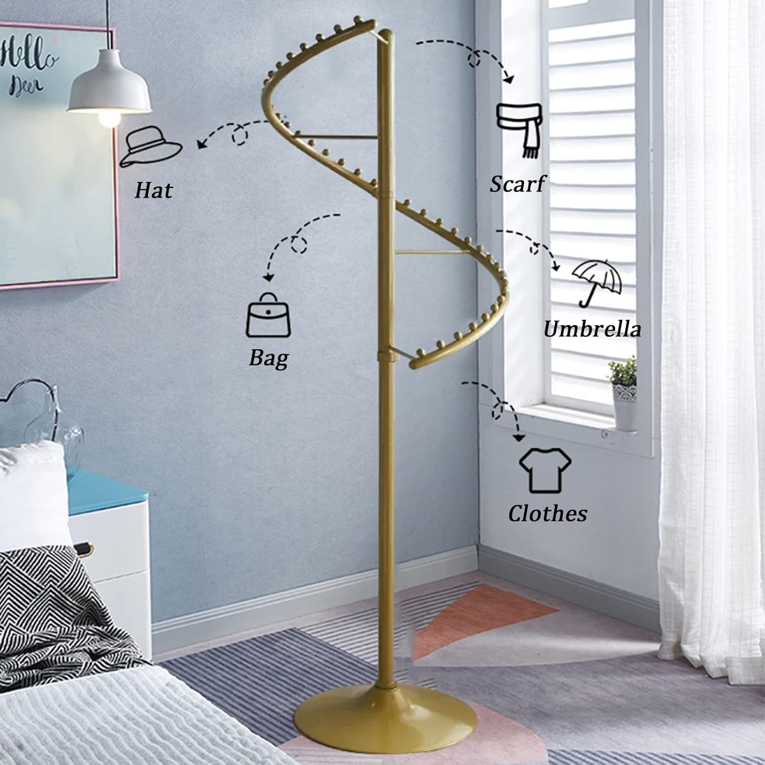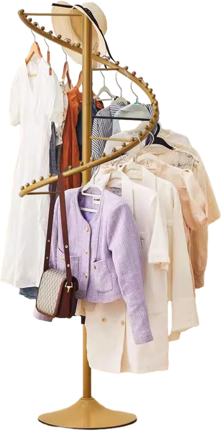 Spiral Rotating Clothing Rack, 38 Ball Heavy Duty Garment Rack, Standing Metal Sturdy Freestanding Hanger For Boutique Bedroom Space Saving (Color : Gold, Size : 180cm)
