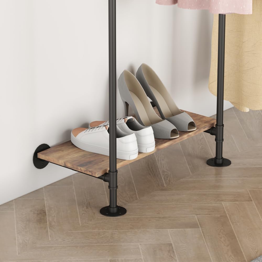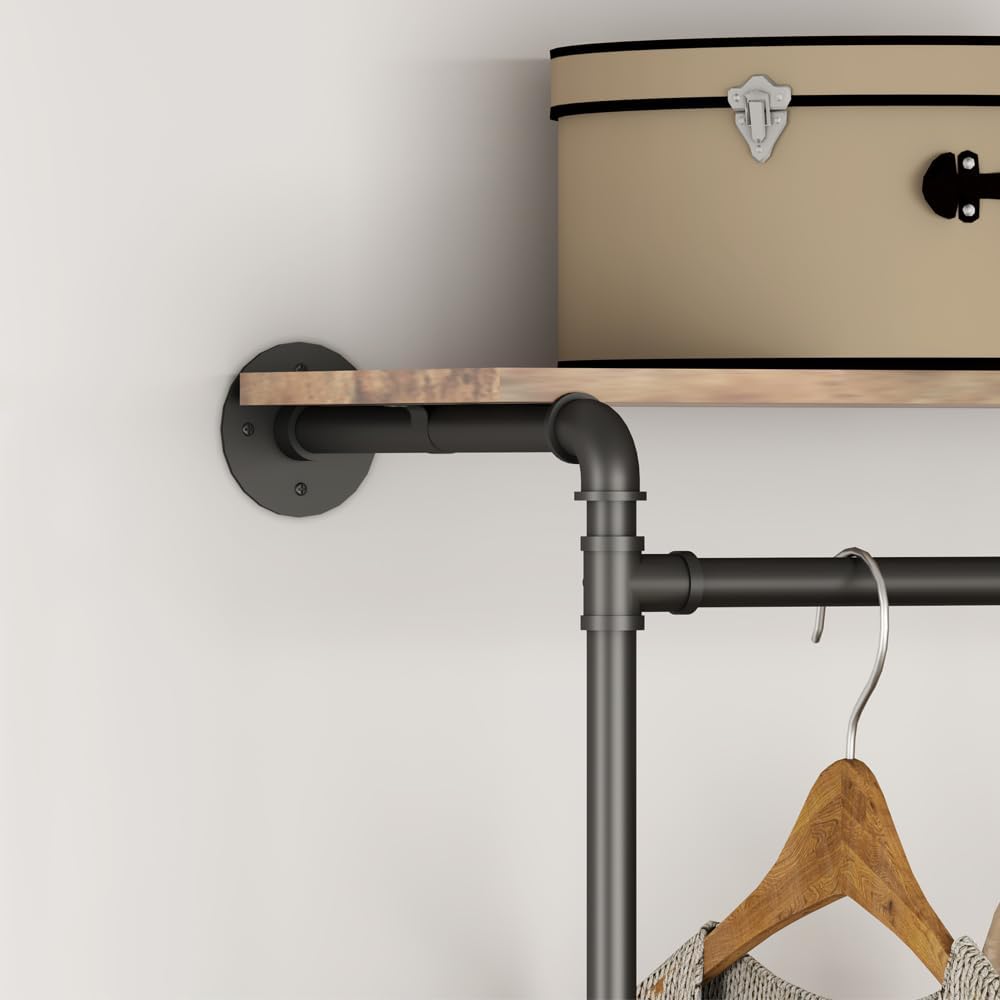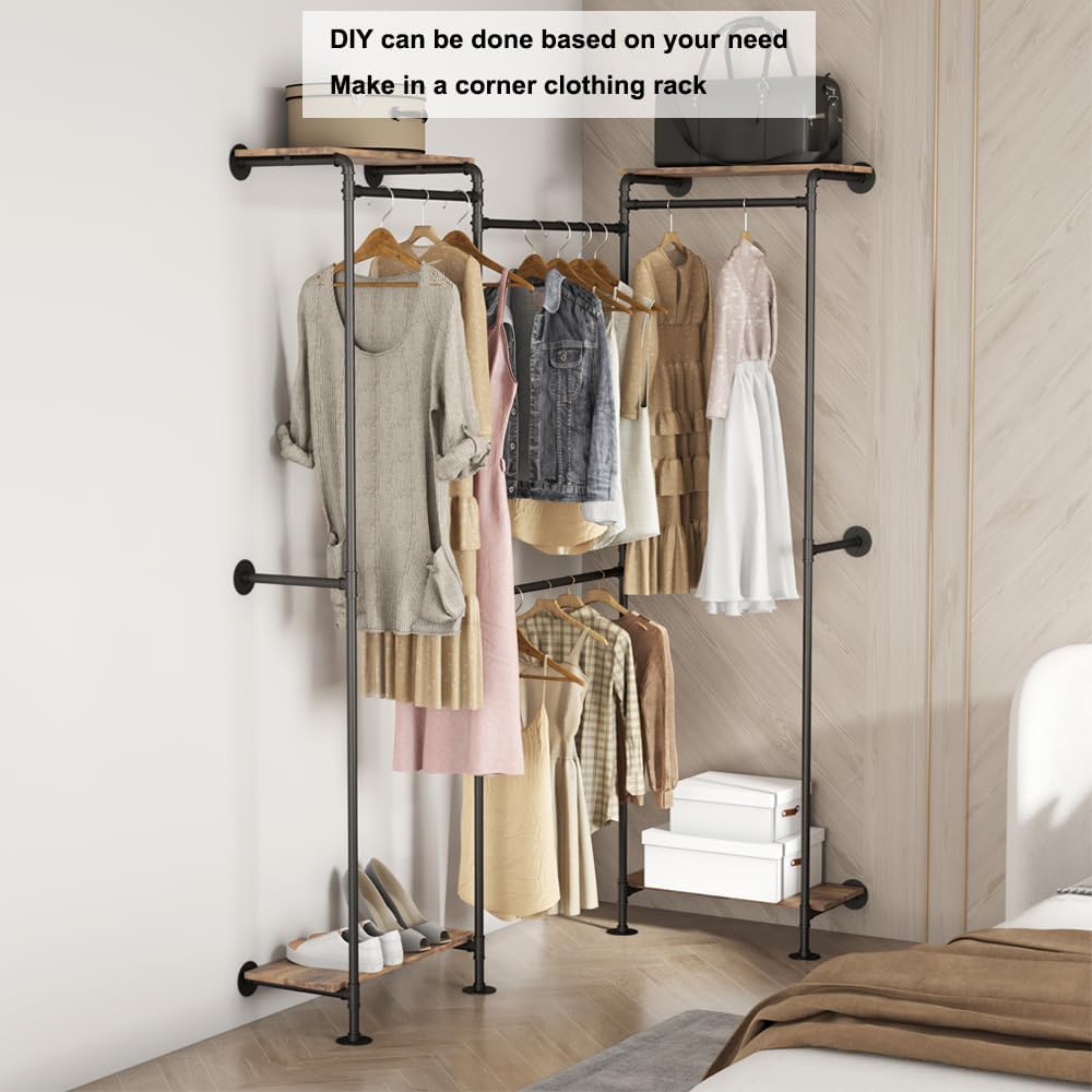 Sturdy heavy duty clothes rack,Black clothing rack with bottom shelves and 6 side hooks,Metal garment rack for hanging clothes,Wardrobe rack for Bedroom