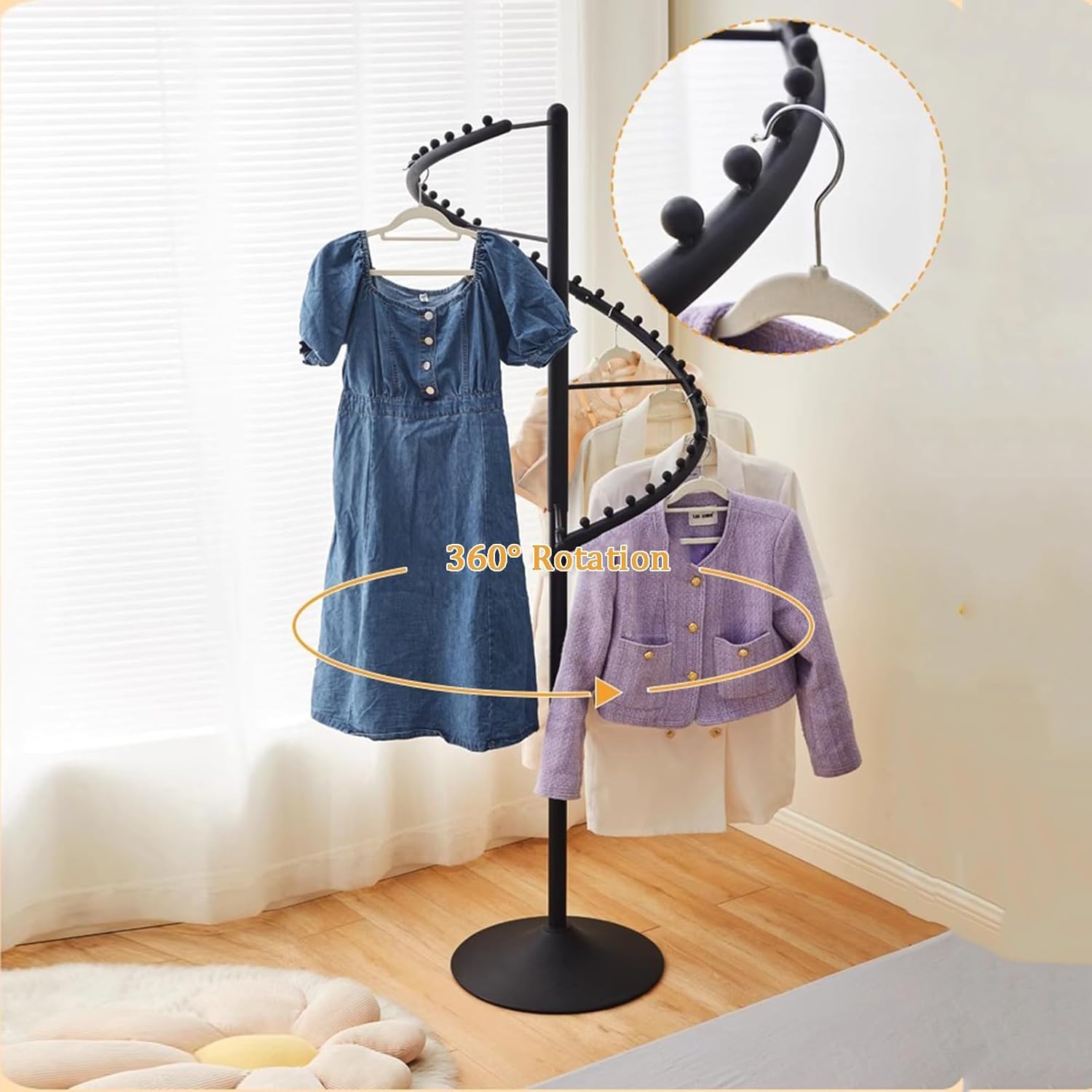 Spiral Rotating Clothing Rack, 38 Ball Heavy Duty Garment Rack, Standing Metal Sturdy Freestanding Hanger For Boutique Bedroom Space Saving (Color : Black, Size : 180cm)