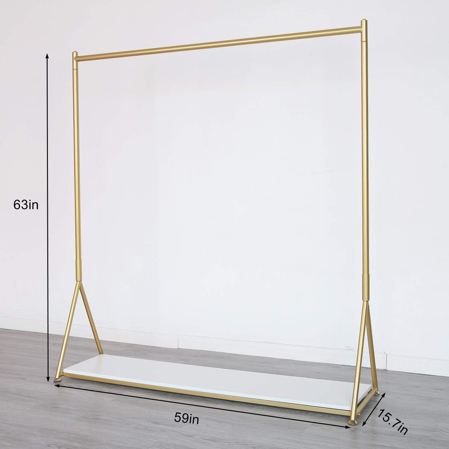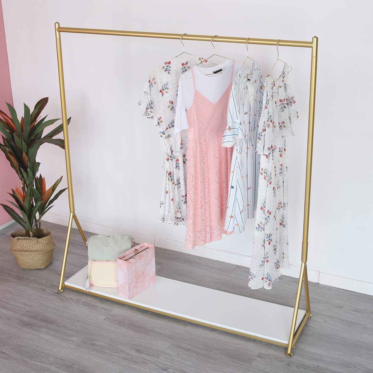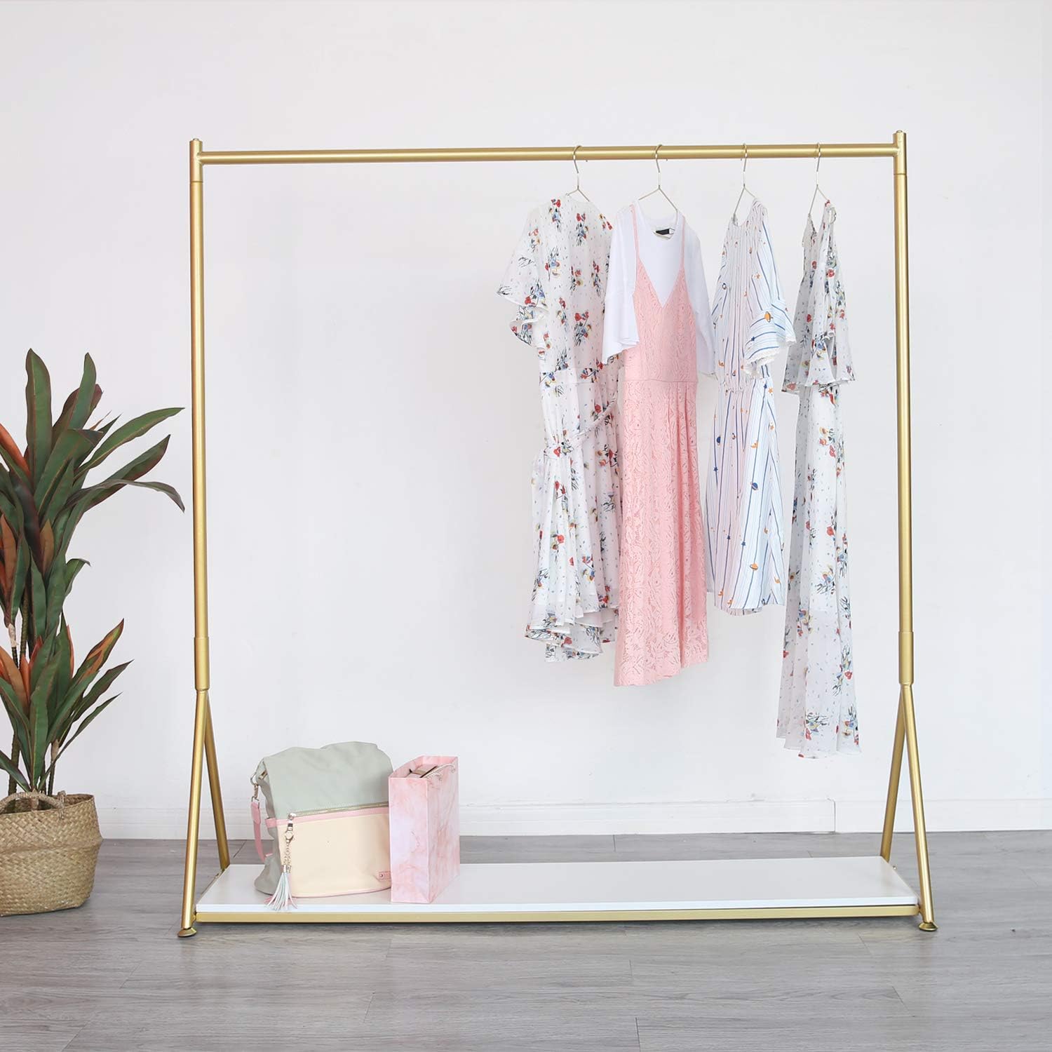 HOMEKAYT Gold Clothing Rack with Shelf Heavy Duty Gold Garment Rack Gold Glothes Rack Modern Display Rack for Home, Boutique,Retail - 59''L