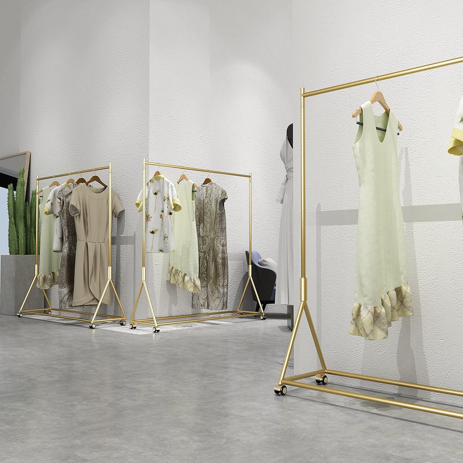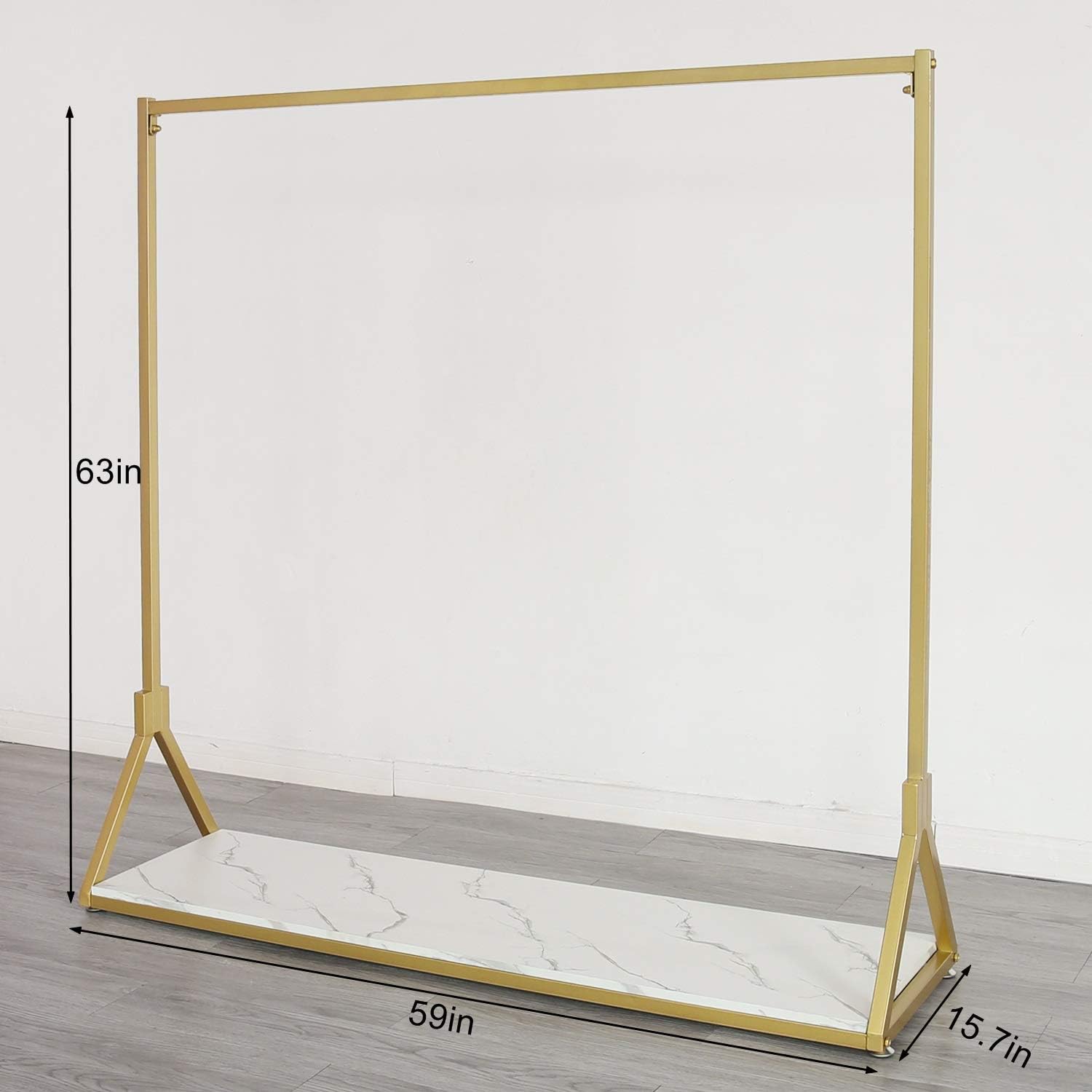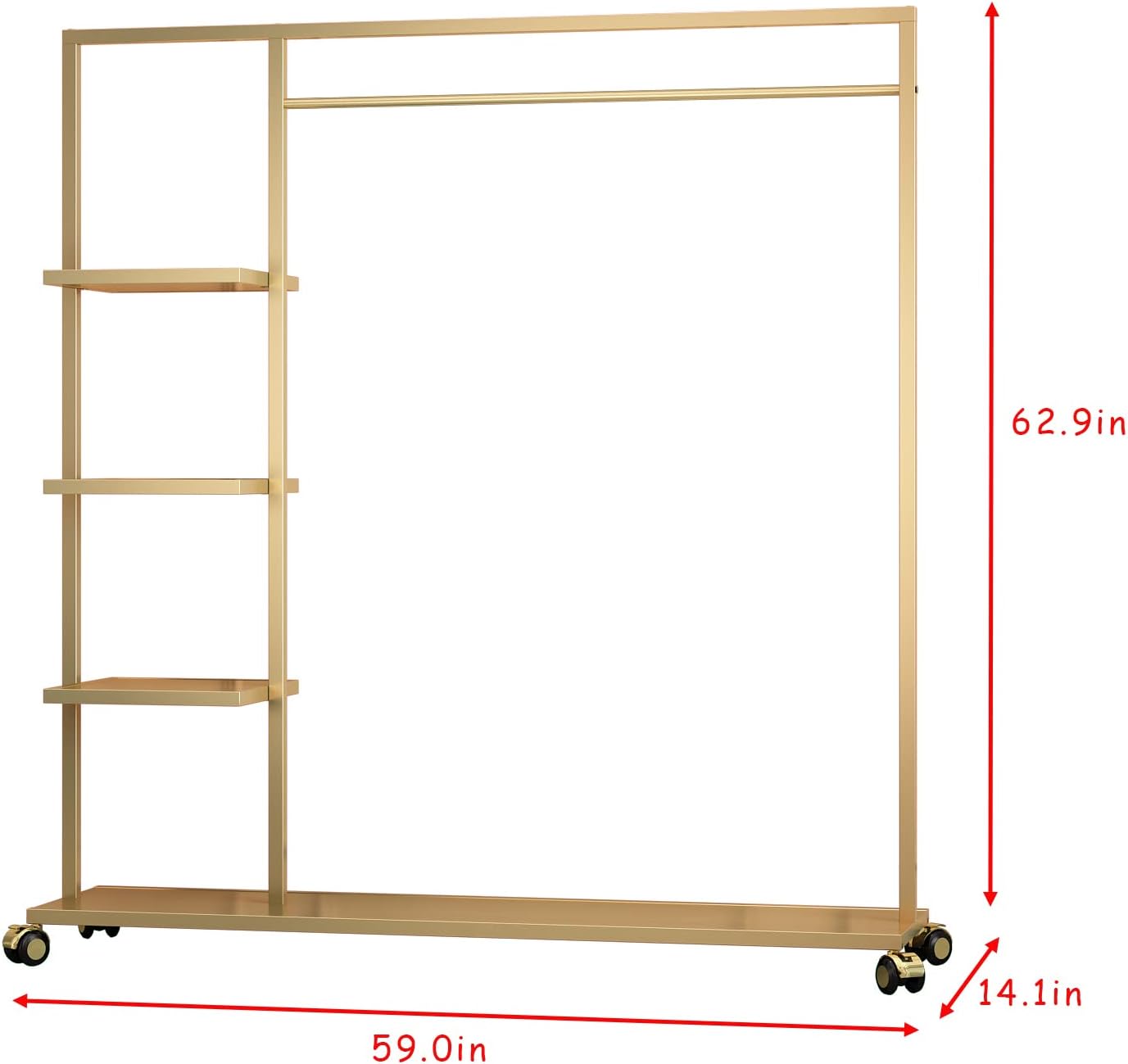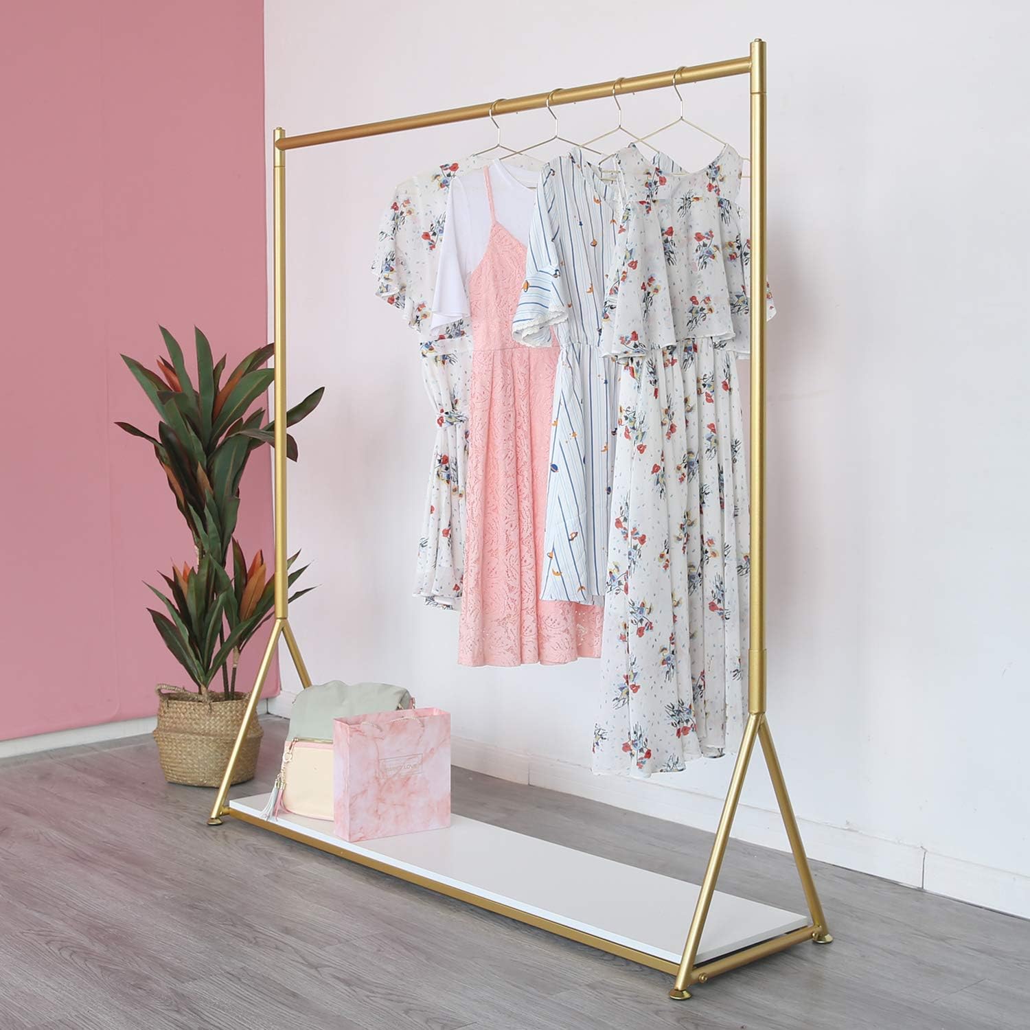 HOMEKAYT Gold Clothing Rack with Shelf Heavy Duty Gold Garment Rack Gold Glothes Rack Modern Display Rack for Home, Boutique,Retail - 59''L