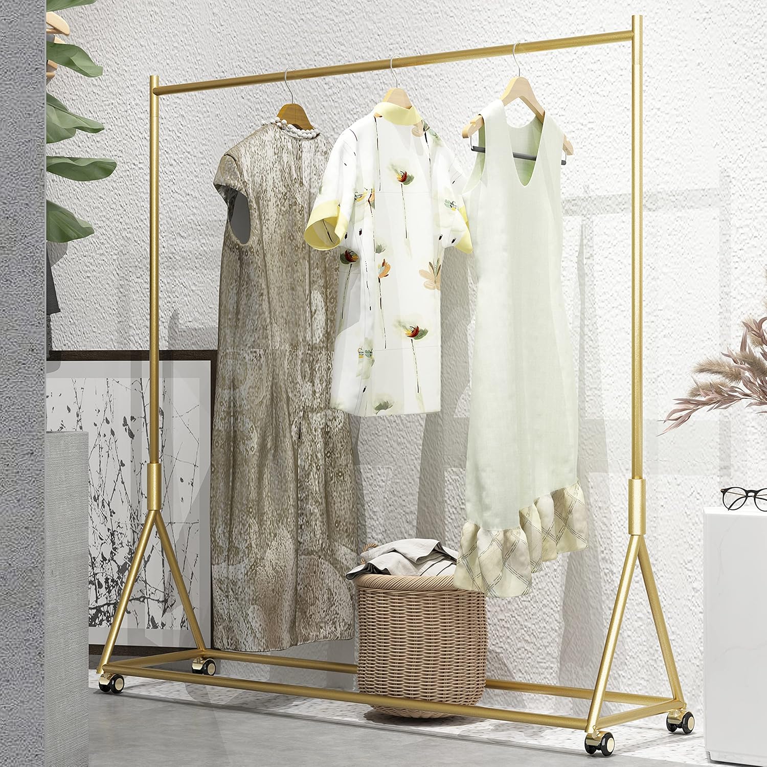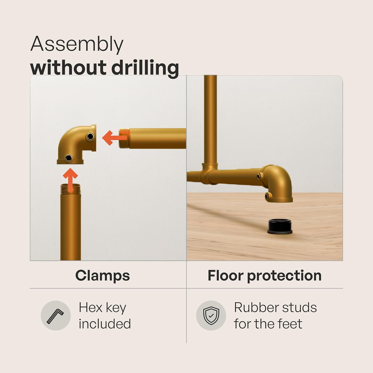pamo Gold Clothing Rack – 38.98" W x 76.38" H – Industrial Pipe Metal Garment Organizer for Bedroom or Retail – Heavy-Duty Clothes Rack – Easy Assembly