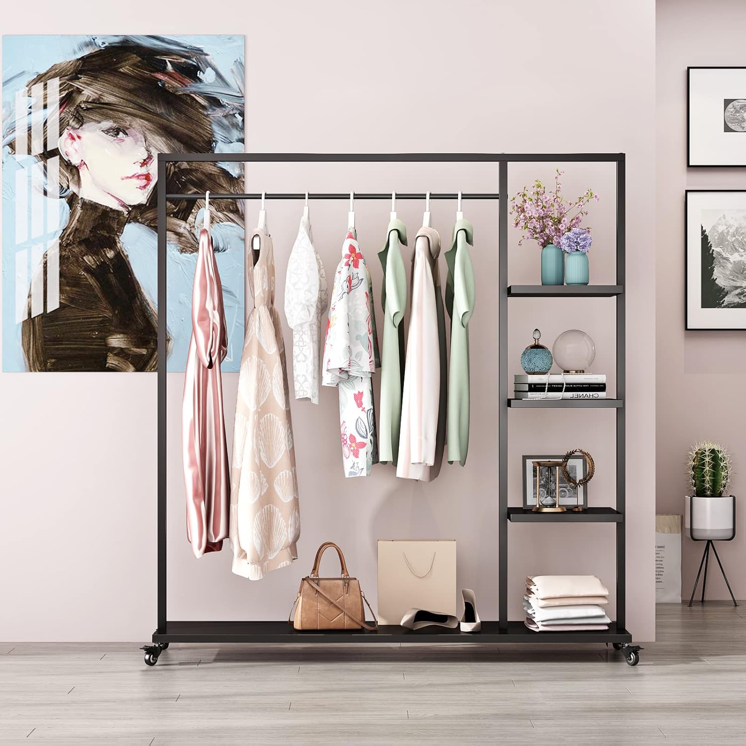 Freestanding Heavy Duty Industrial Pipe Clothing Rack, Portable Commercial Clothes Display Rack, Multi-Purpose Garment Bar for Retail Boutiques Home, Laundry Room,Closet Storage