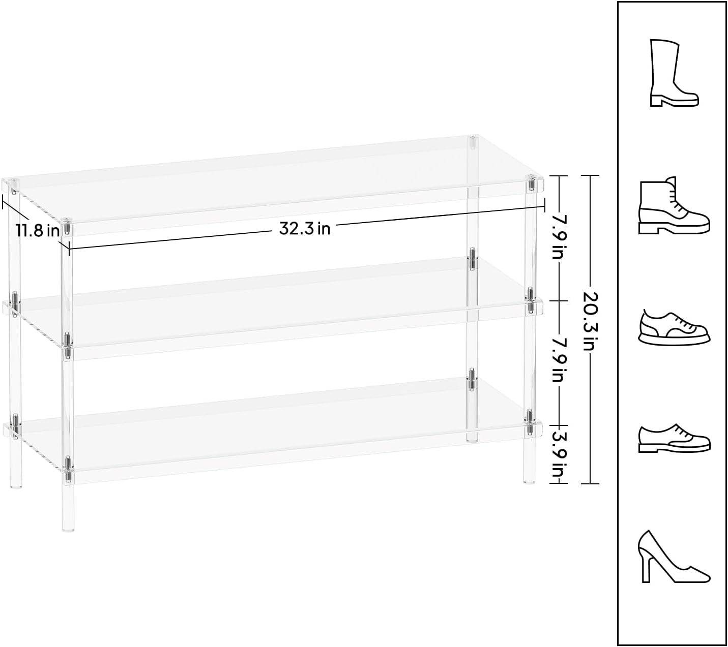 Aquiver 3-Tier Acrylic Shoe Rack - Modern Shoe Rack for Closet - Shoe Storage Organizer for Entryway, Bedroom, Living Room - 32.3'' L x 11.8'' W x 20.3'' H, Holds 12-16 Pairs of Shoes, Easy to Clean
