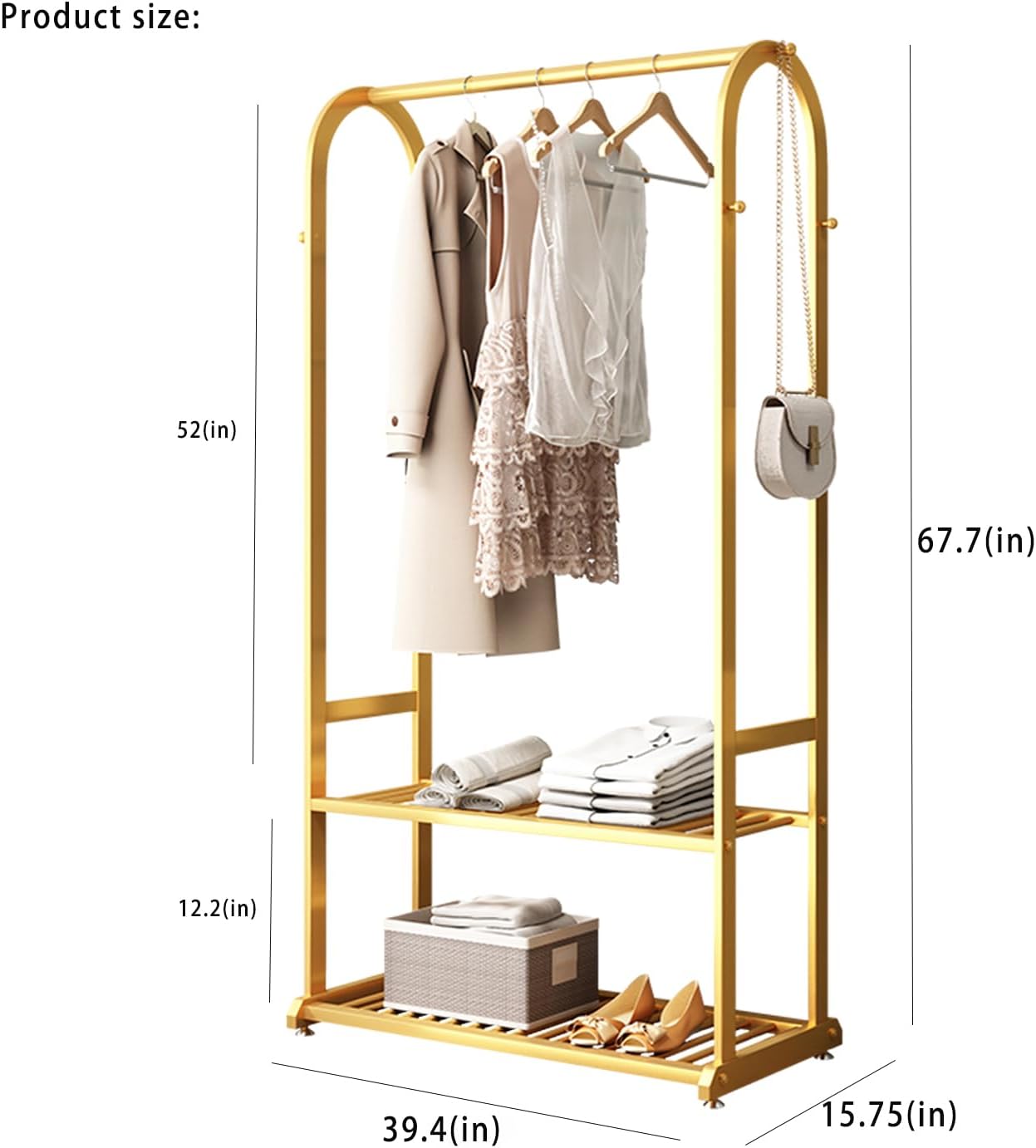 HOMEKAYT Gold Clothing Rack with Wooden Shelf for Boutique Retail Heavy Duty Hanging Rack- 59’’L