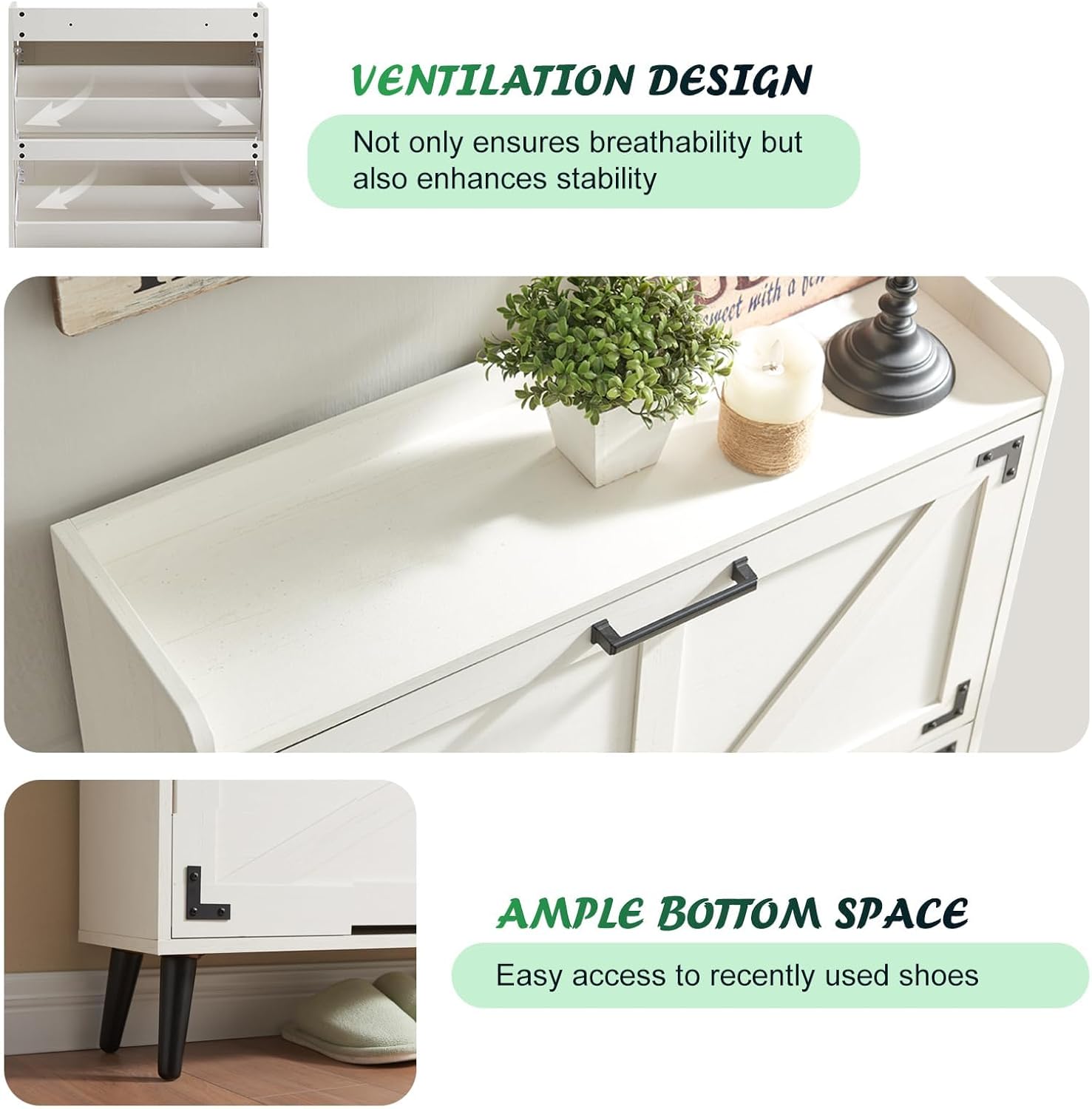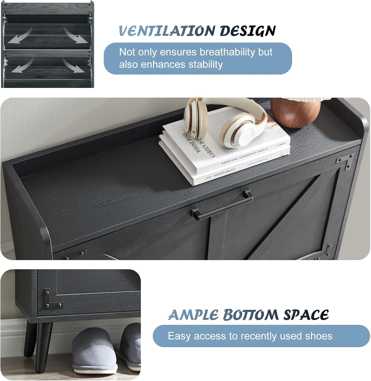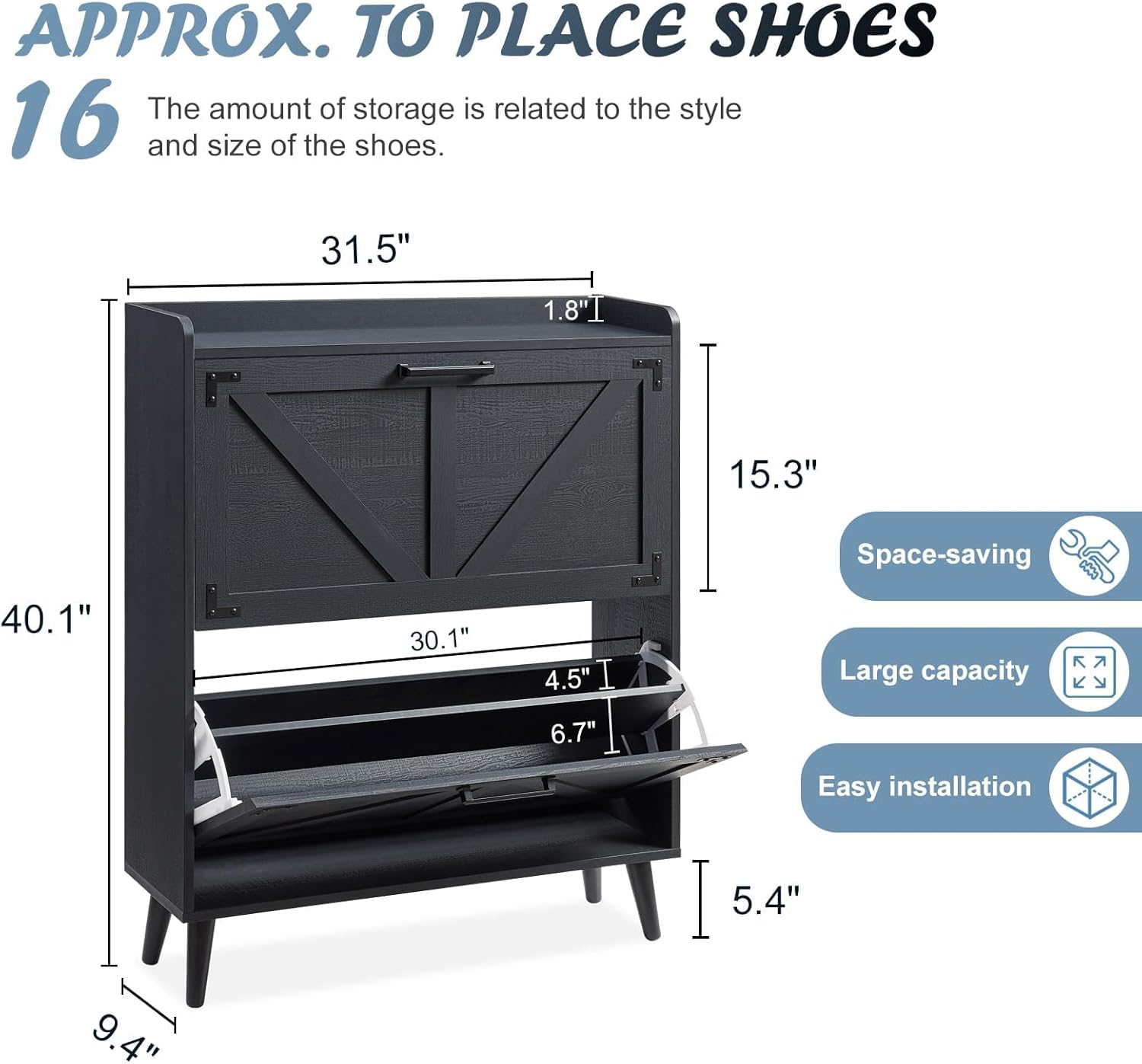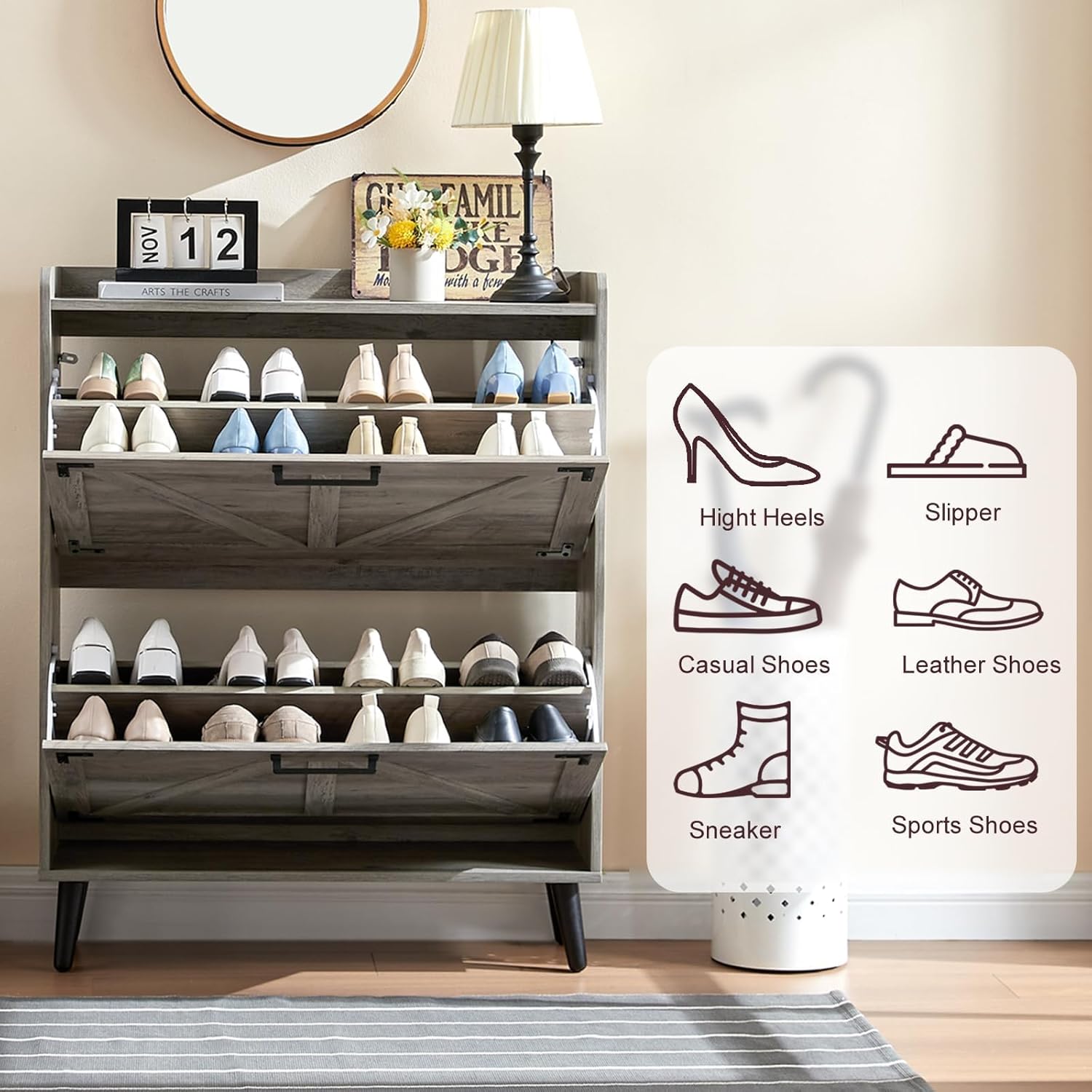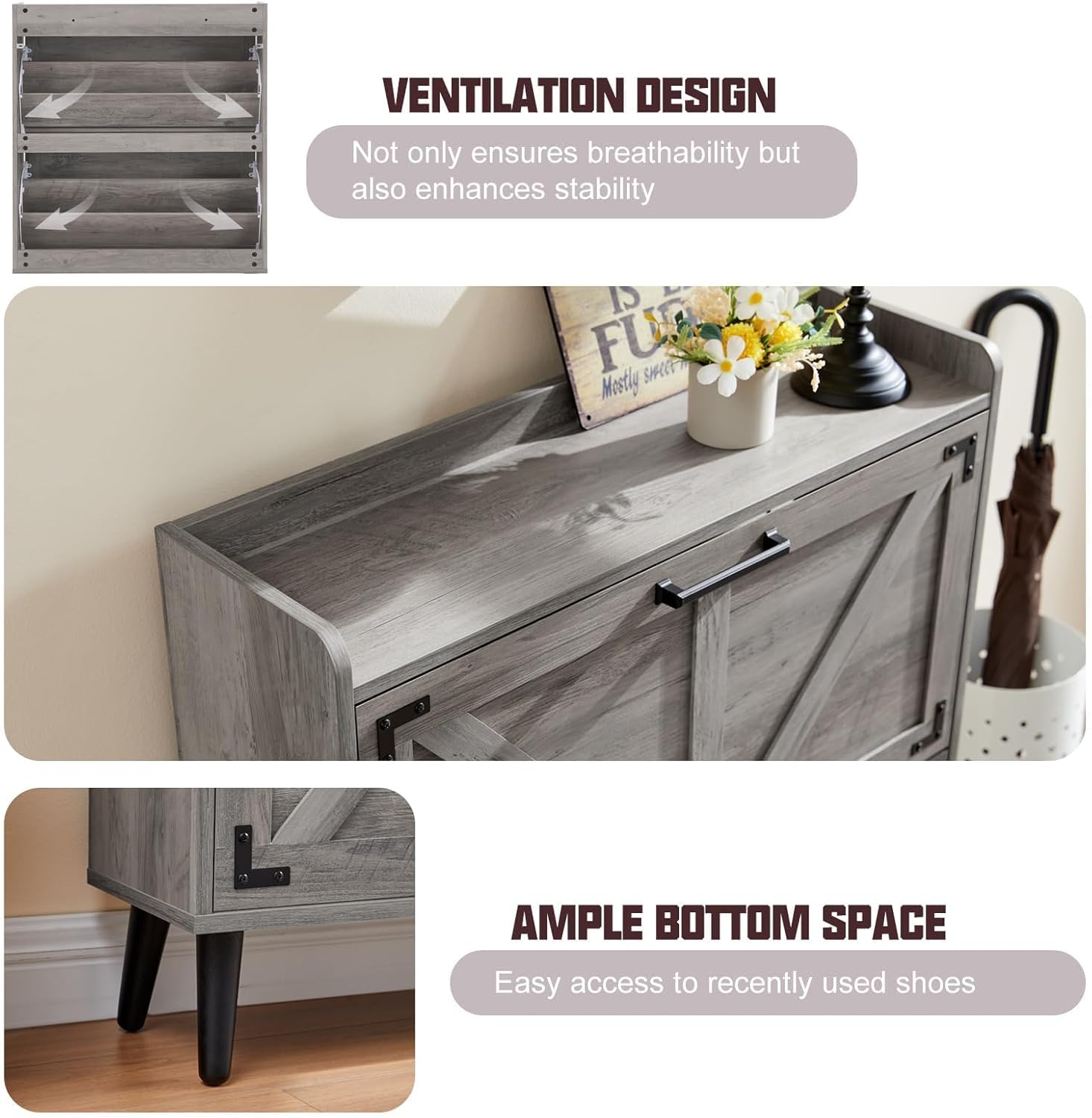 Shoe Storage Cabinet with 2 Flip Drawers, Farmhouse Hidden Shoe Organizer, Narrow Slim Shoe Rack Cabinet for Entryway Hallway,Washed Gray