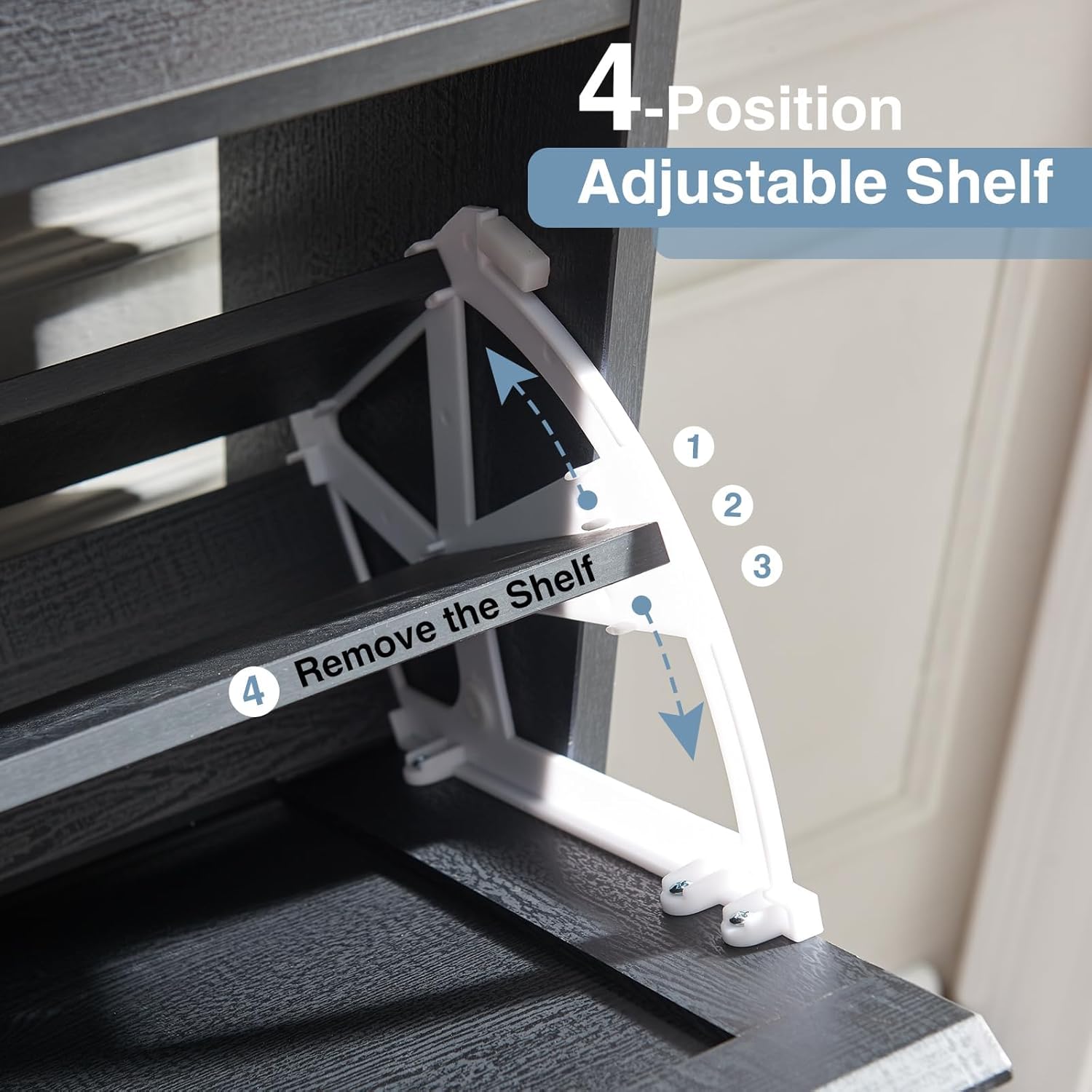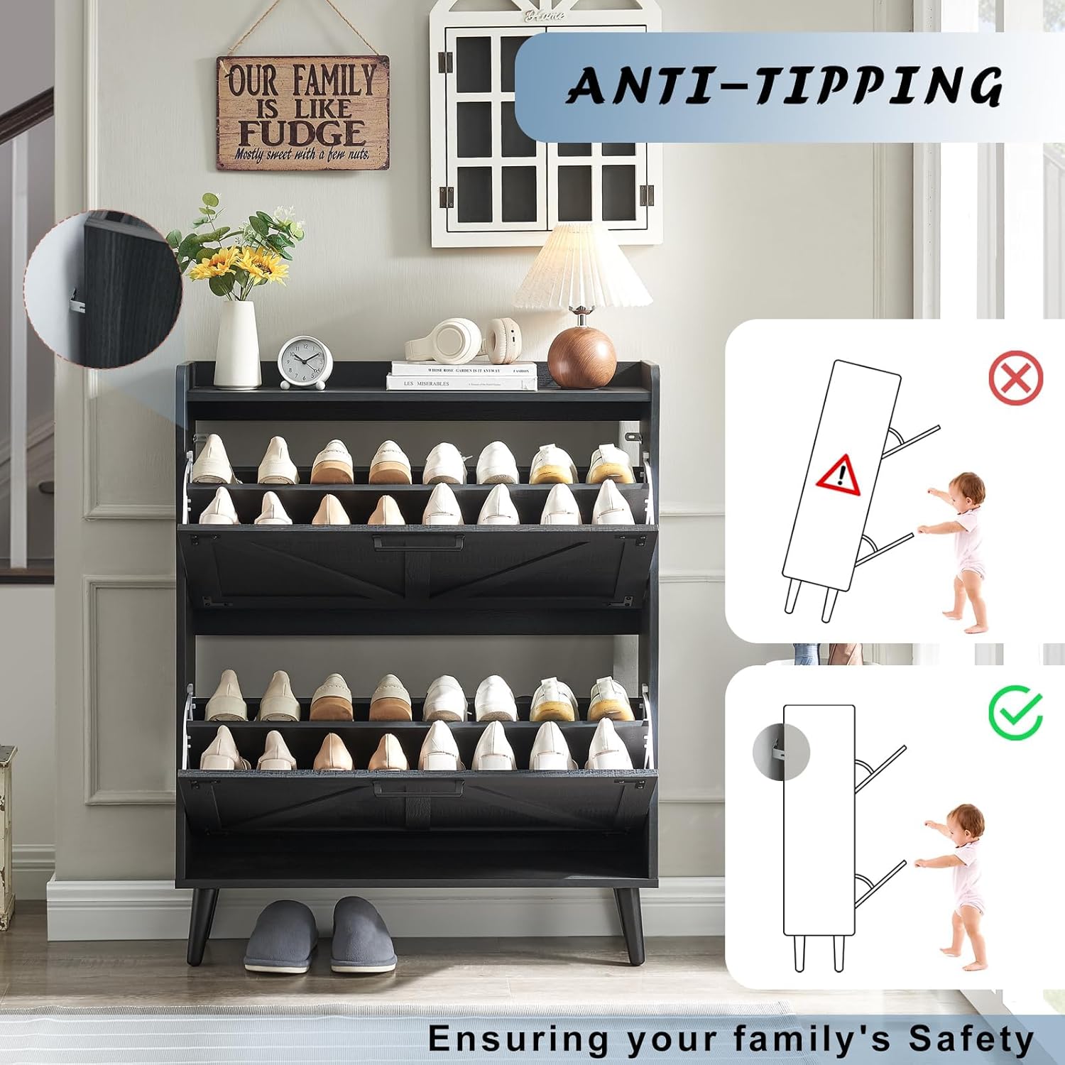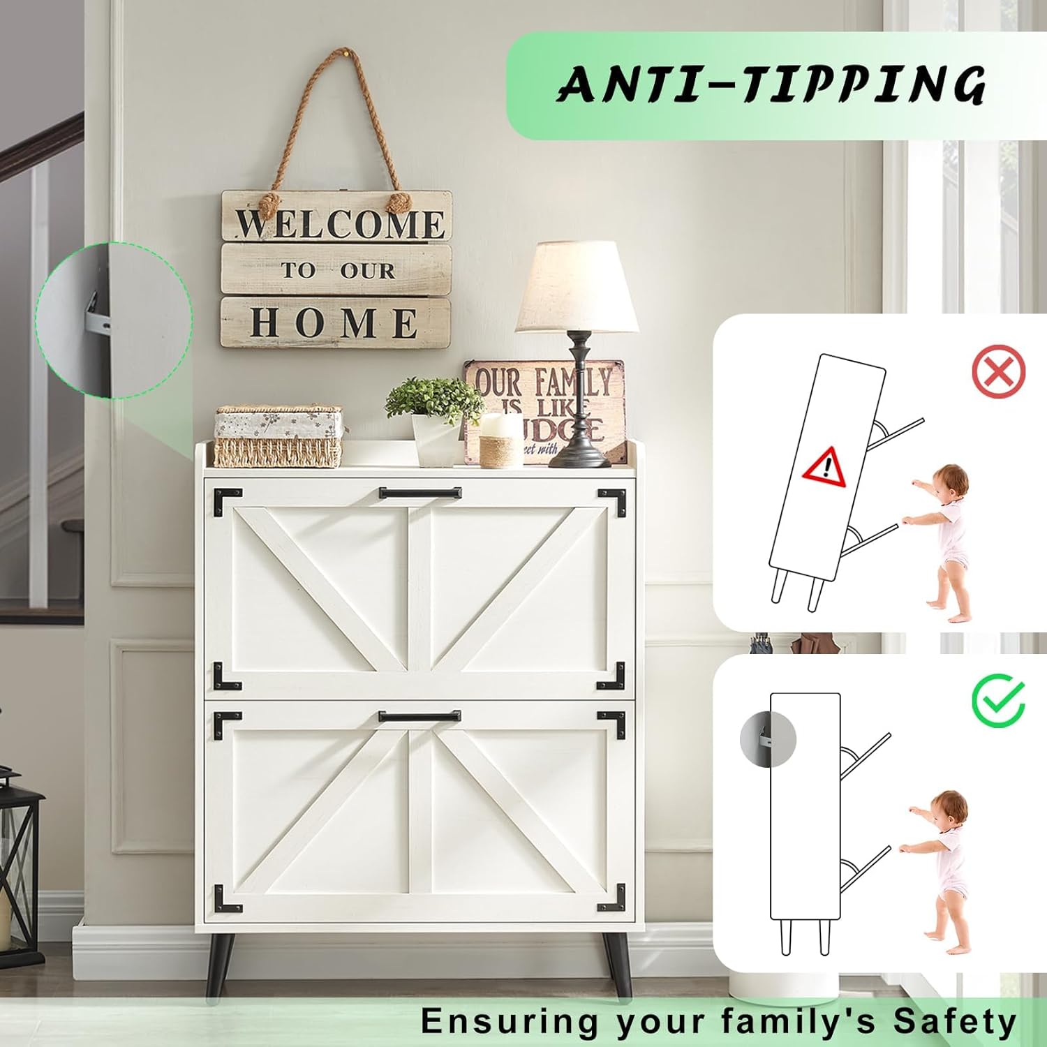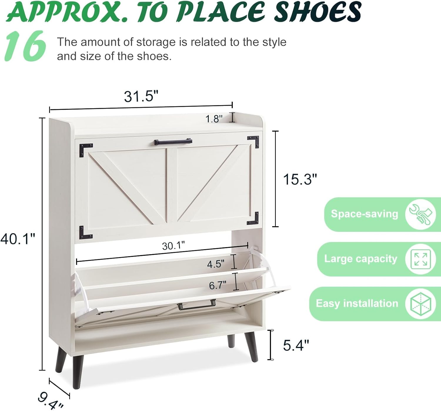 Shoe Storage Cabinet with 2 Flip Drawers, Farmhouse Hidden Shoe Organizer, Narrow Slim Shoe Rack Cabinet for Entryway Hallway,Washed Gray