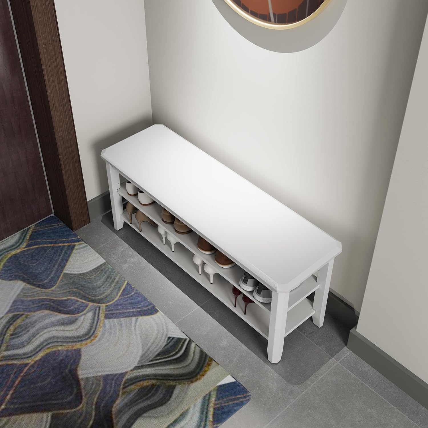 Wood Shoe Rack Bench for Entryway, 2 Tier Shoe Rack for Front Door Entrance, Shoe Bench with Shoe Storage for Entryway, Bedroom, 39.4"