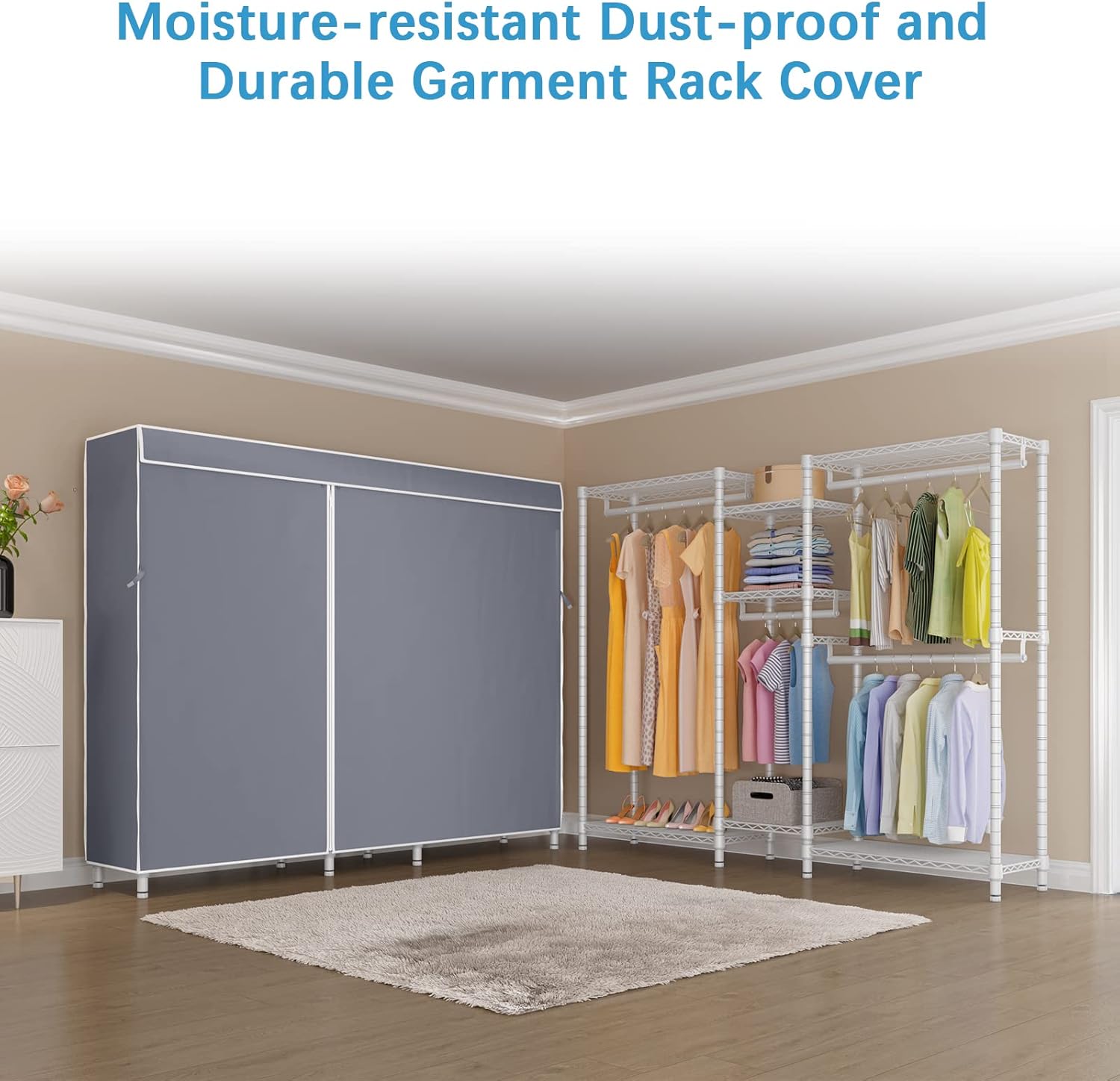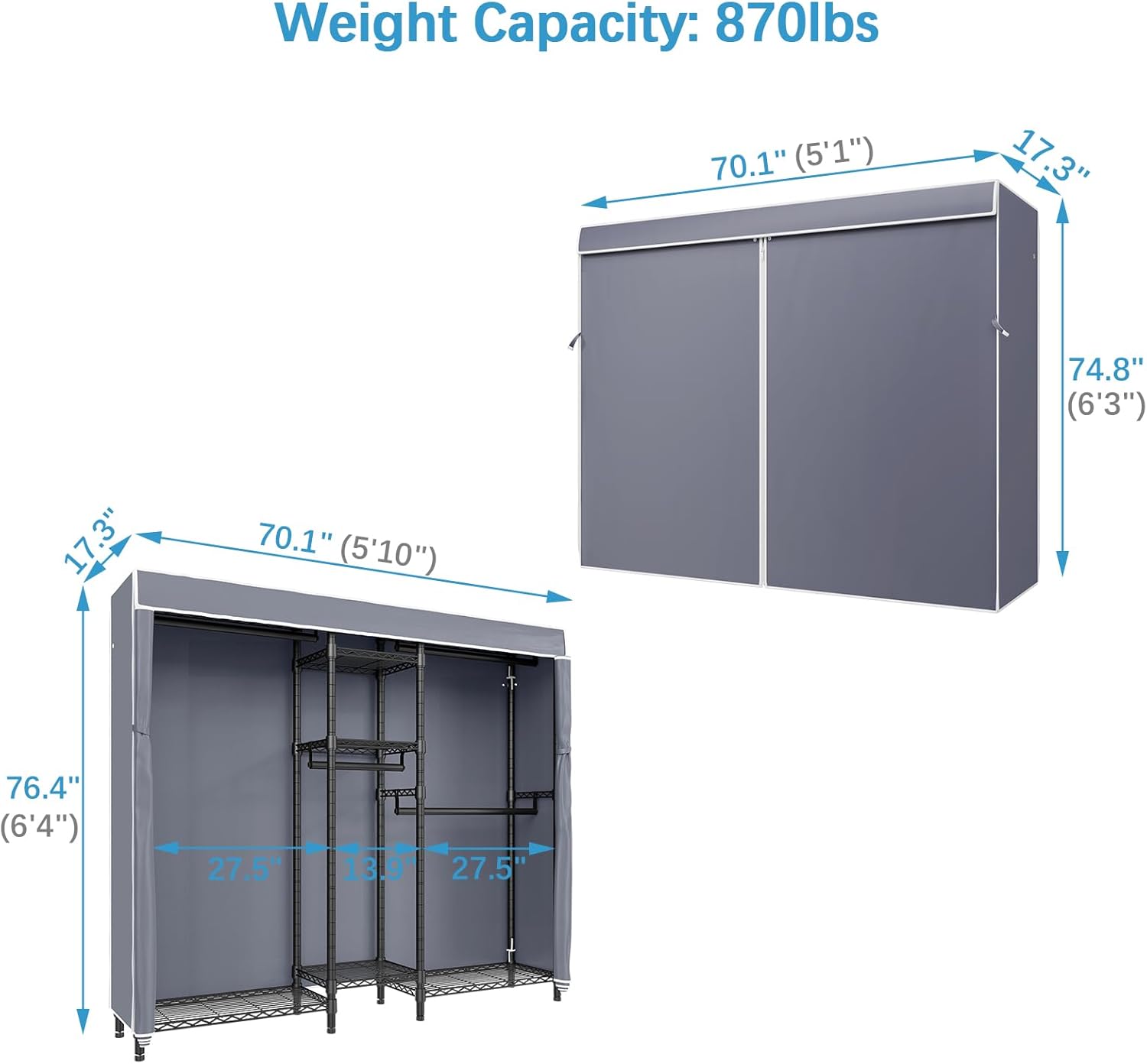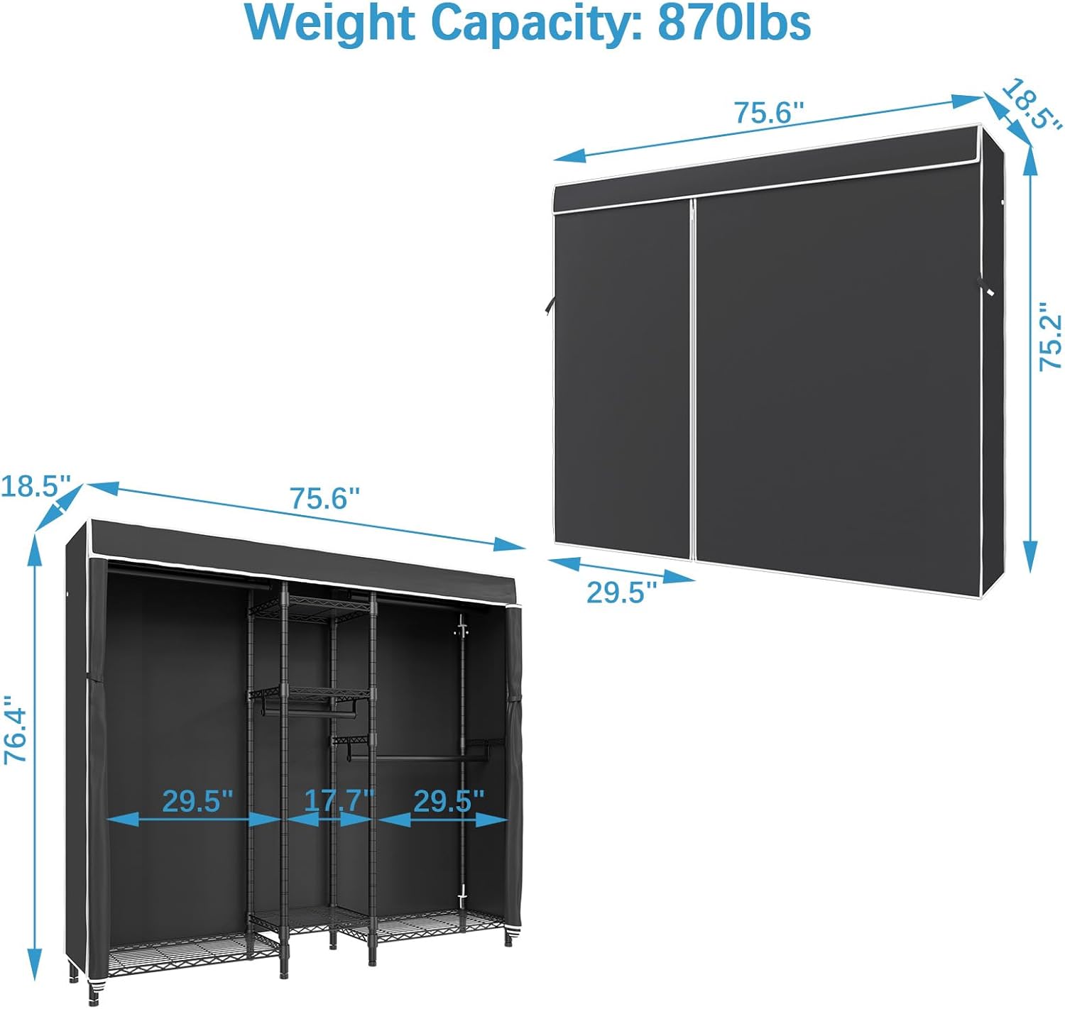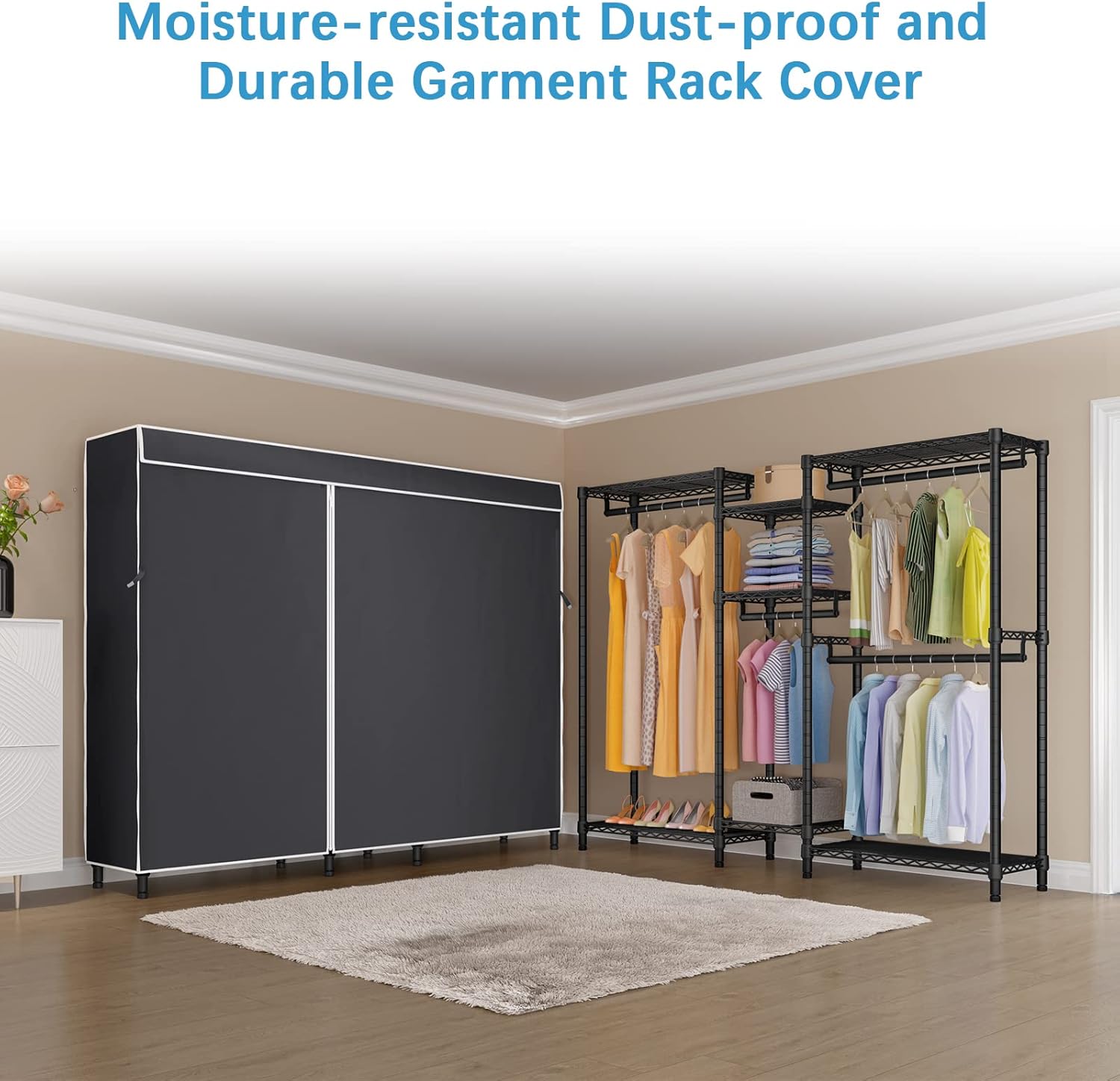 VIPEK Classic V6C Heavy Duty 5 Tiers Wire Garment Rack Large Size Wardrobe Closet Black Metal Clothing Rack with Black Oxford Fabric Cover, 75.6" L x 18.5" W x 76.4" H, Max Load 870 LBS