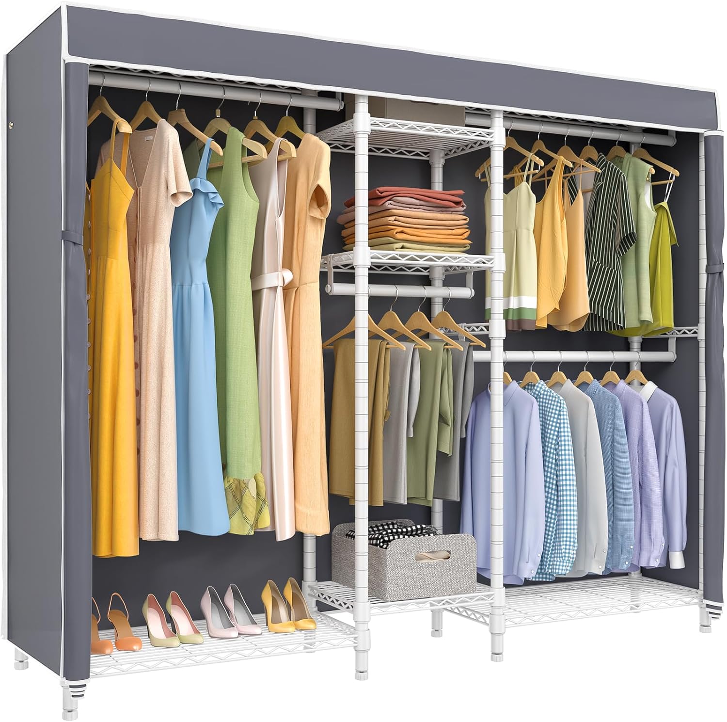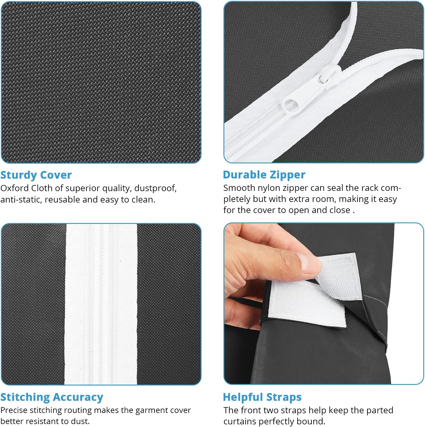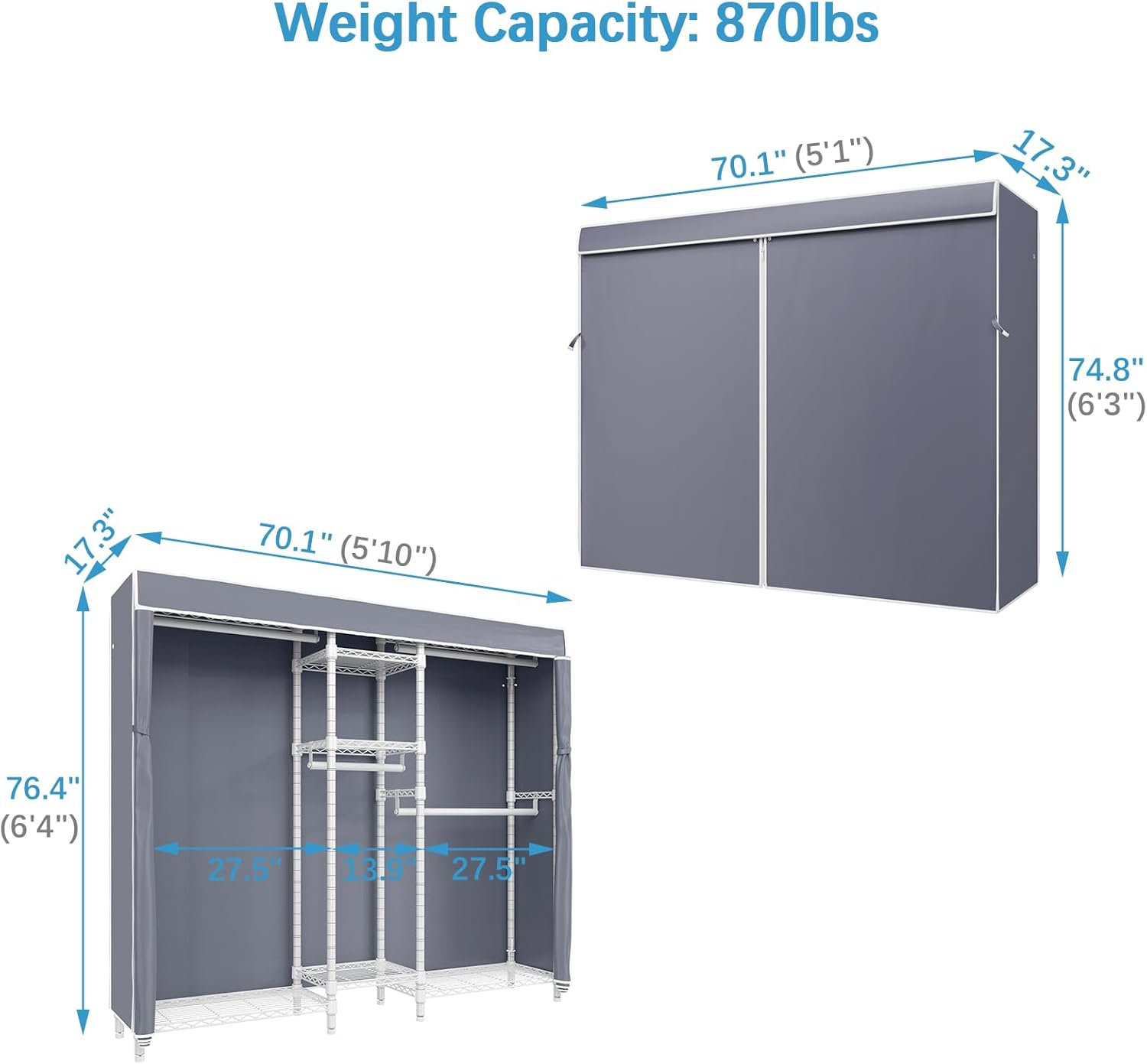 VIPEK Classic V6C Heavy Duty 5 Tiers Wire Garment Rack Large Size Wardrobe Closet Black Metal Clothing Rack with Black Oxford Fabric Cover, 75.6" L x 18.5" W x 76.4" H, Max Load 870 LBS