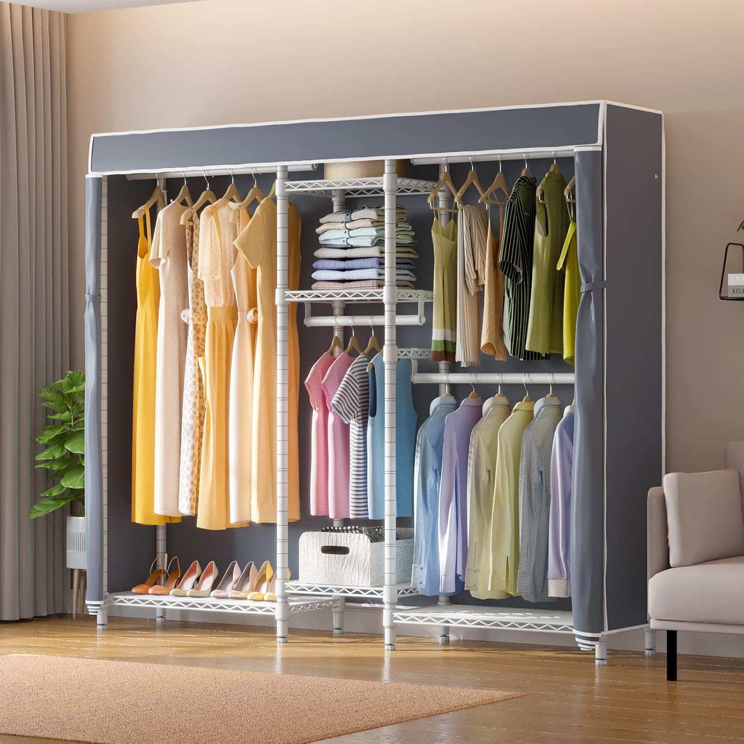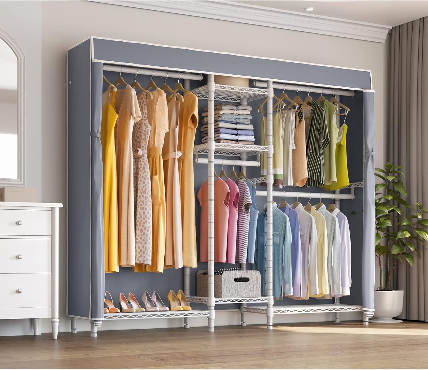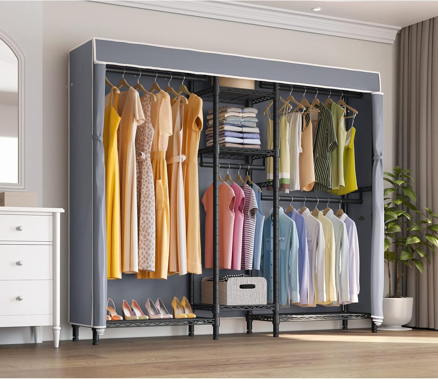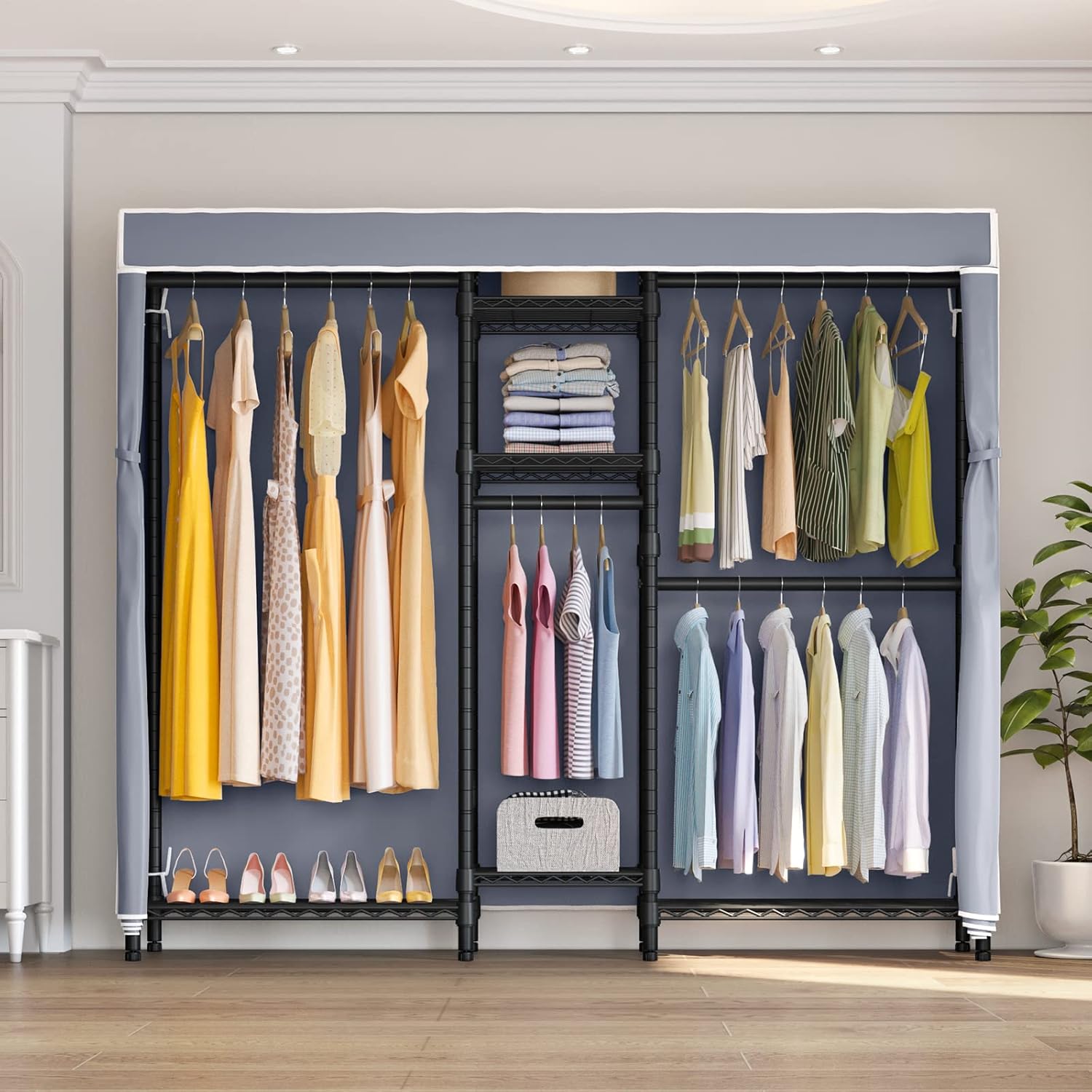 VIPEK Classic V6C Heavy Duty 5 Tiers Wire Garment Rack Large Size Wardrobe Closet Black Metal Clothing Rack with Black Oxford Fabric Cover, 75.6" L x 18.5" W x 76.4" H, Max Load 870 LBS