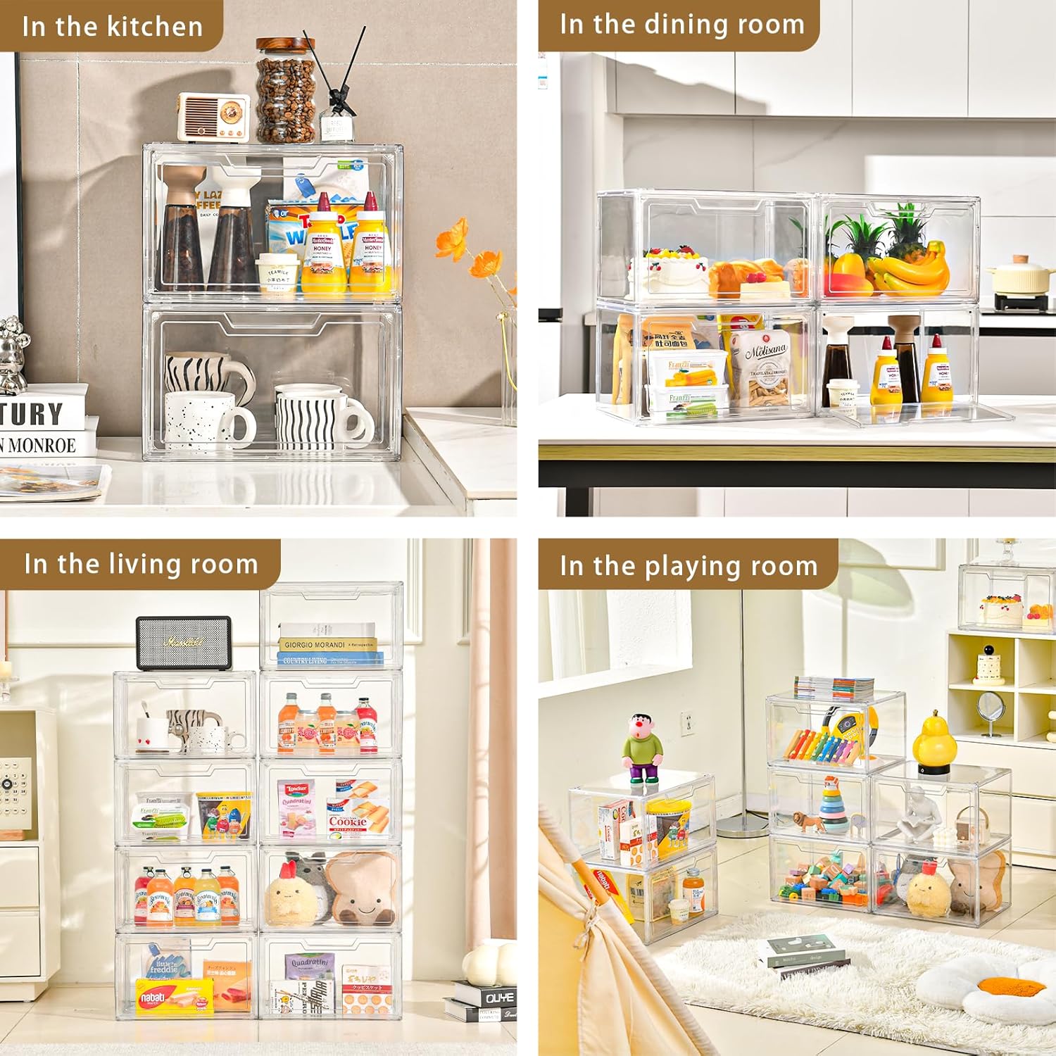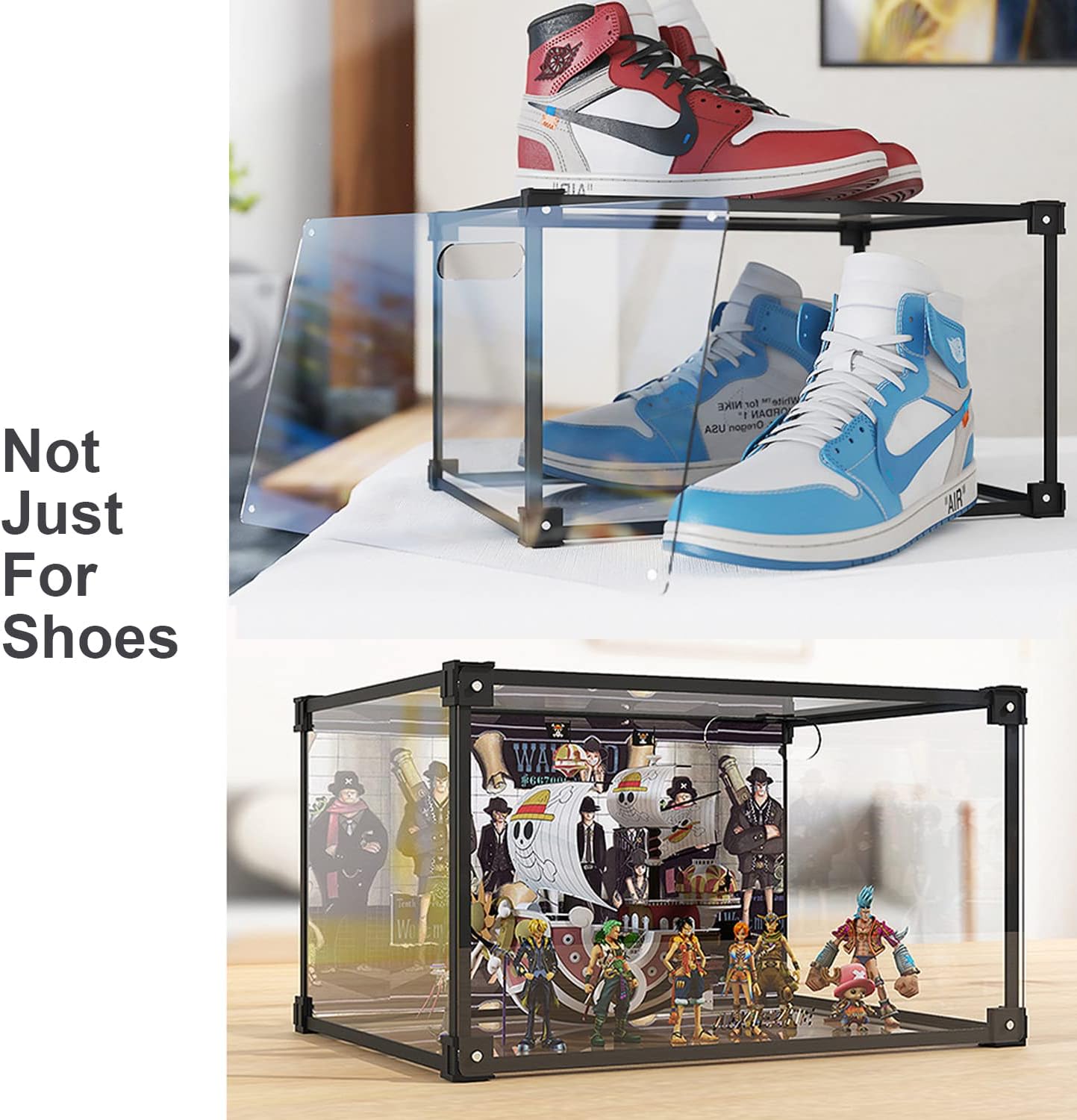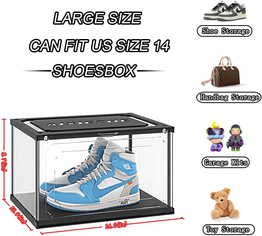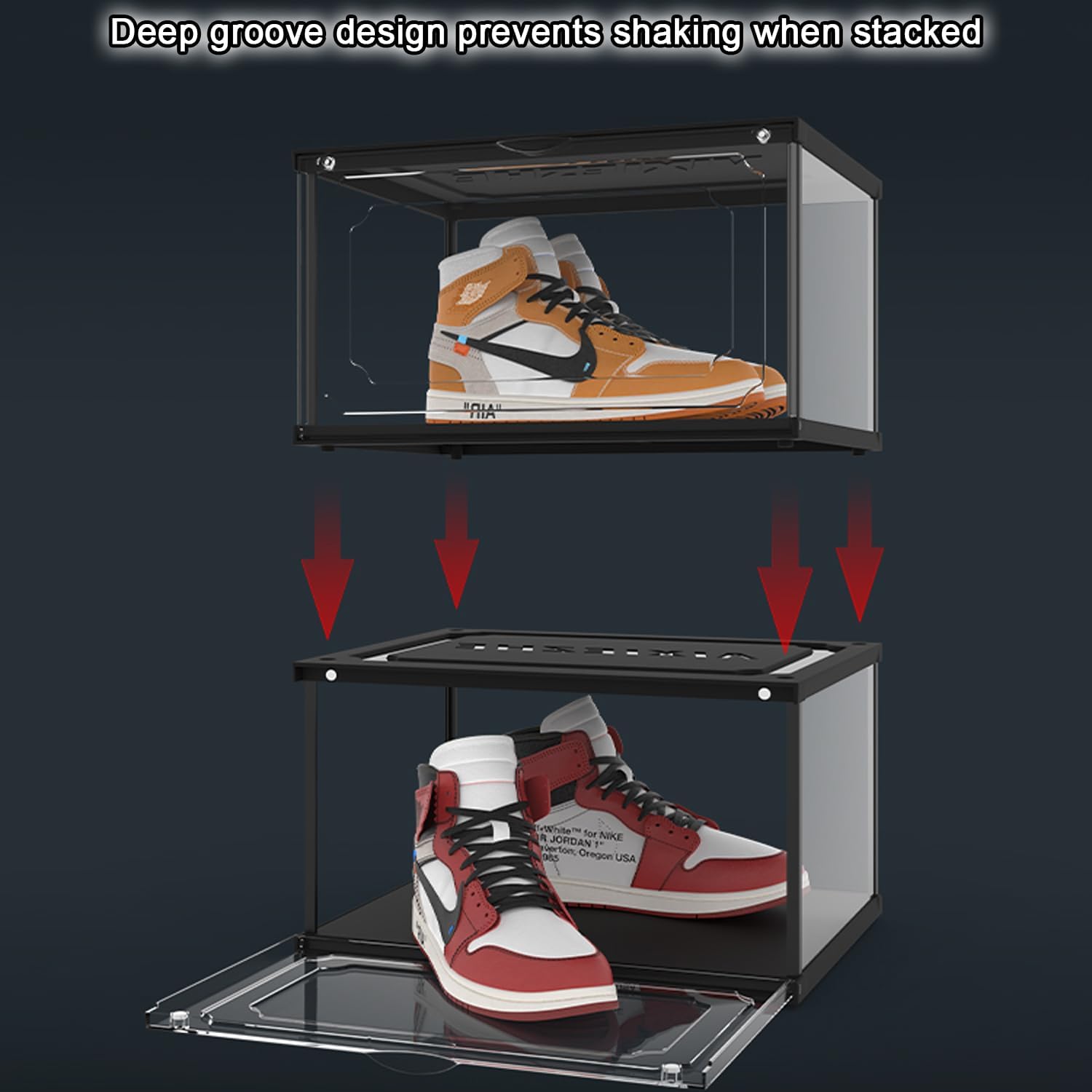 6-Tier Foldable Shoe Rack for Closet Entryway 12-24Pairs,Stackable Clear Shoe Storage Boxes Organizer with Door Plastic Shoe Cabinet Bins with Lids Shoes Shelf Easy Assembly Large Black