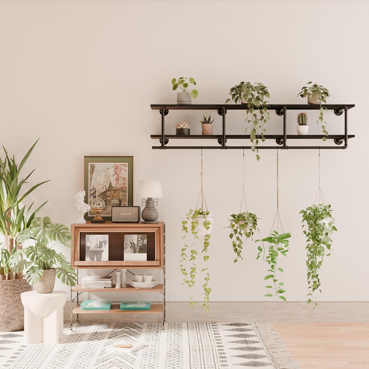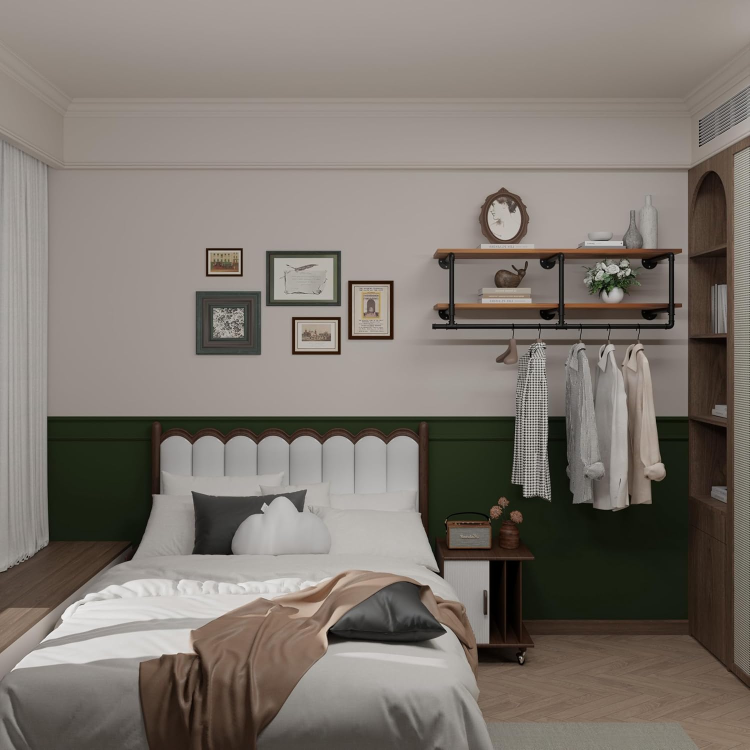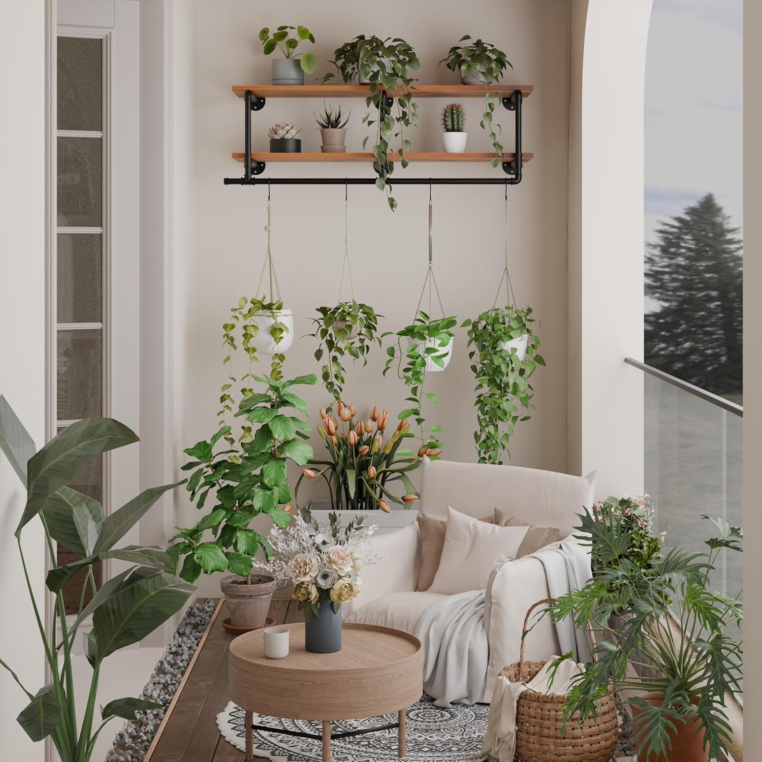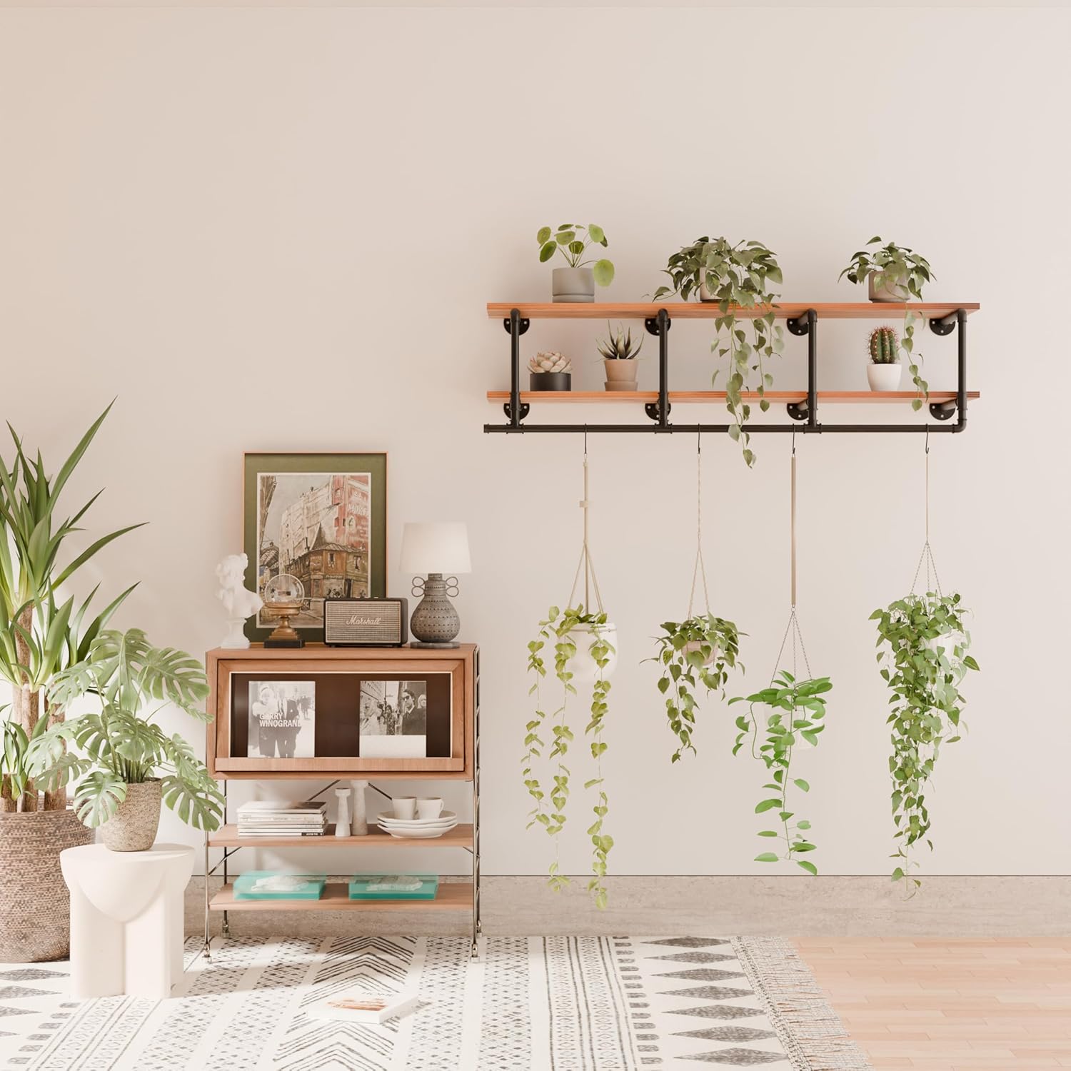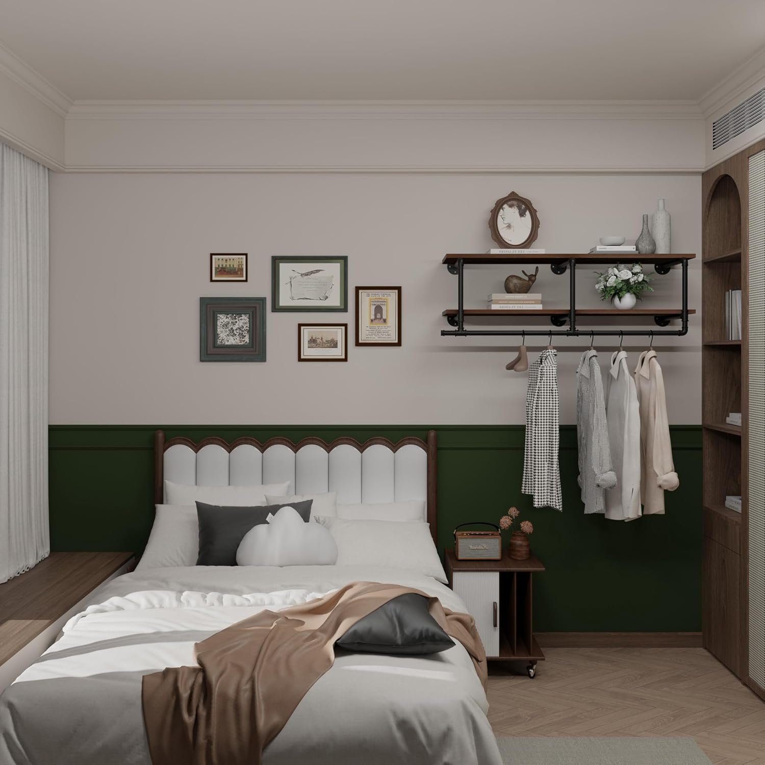 Wall Mounted Clothes Rack 12 Inch Deep, 60 Inch Heavy Duty Garment Rack with Real Brown Wood Shelf, Multi-Purpose Hanging Rod & Space-Saving Closet Storage Organizer