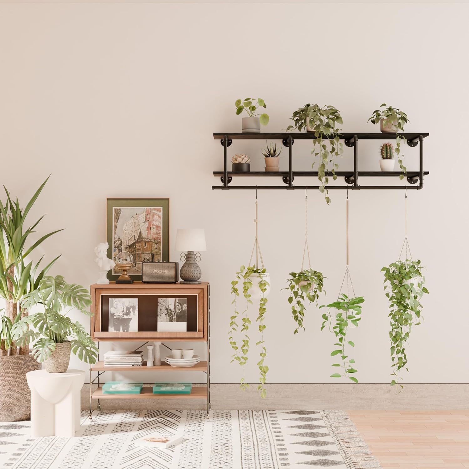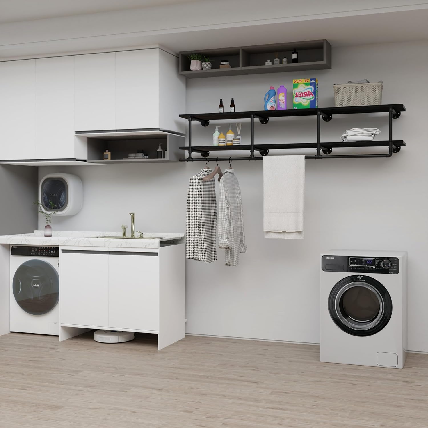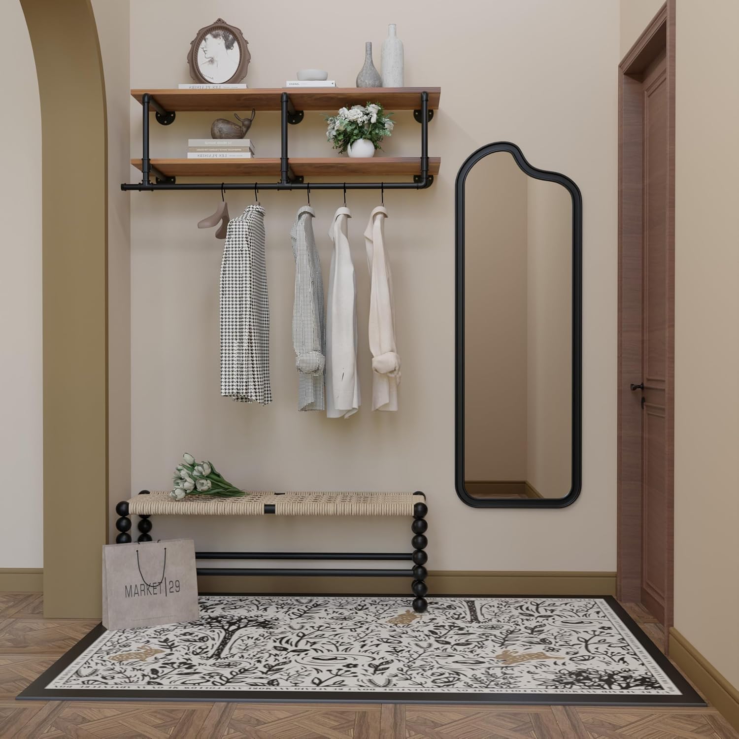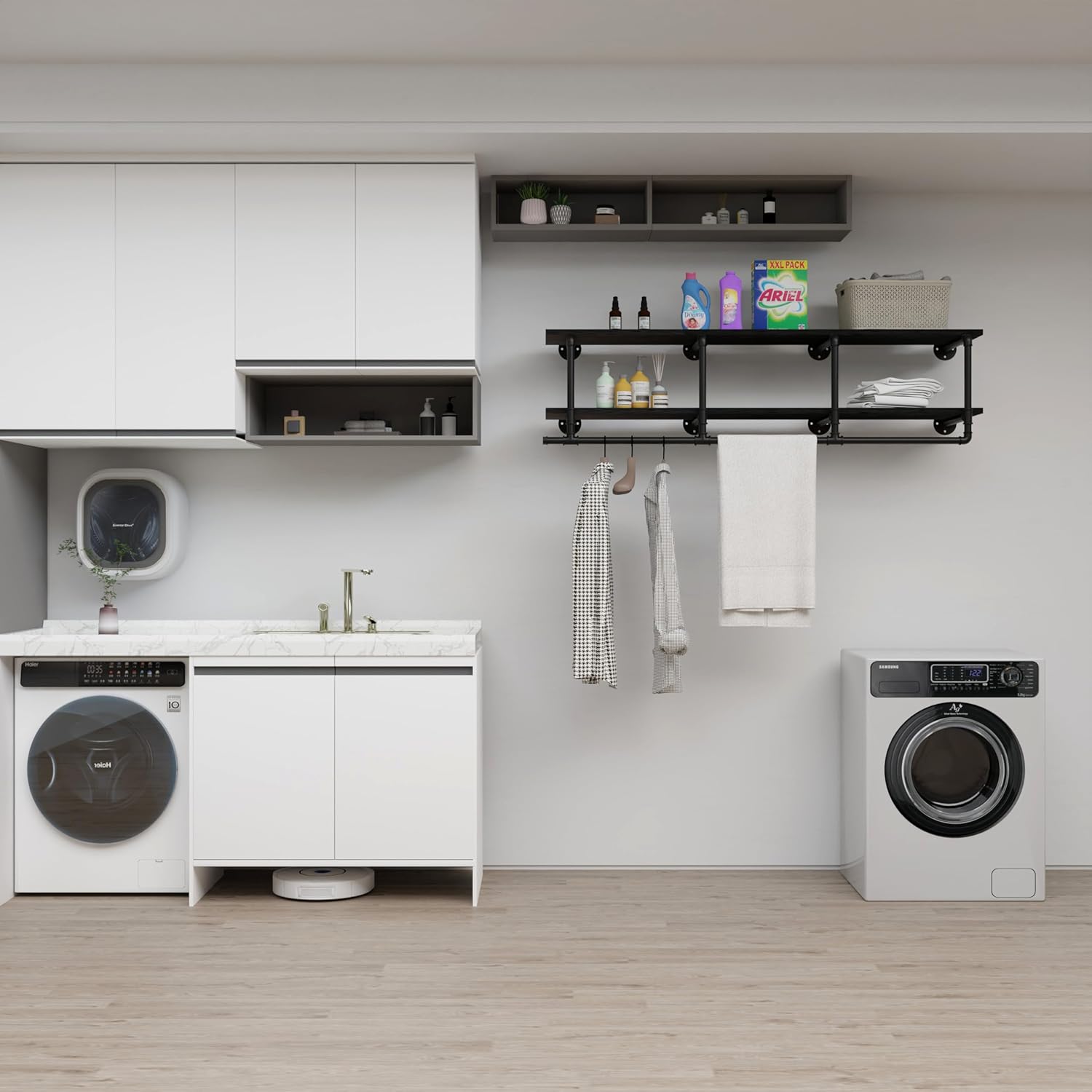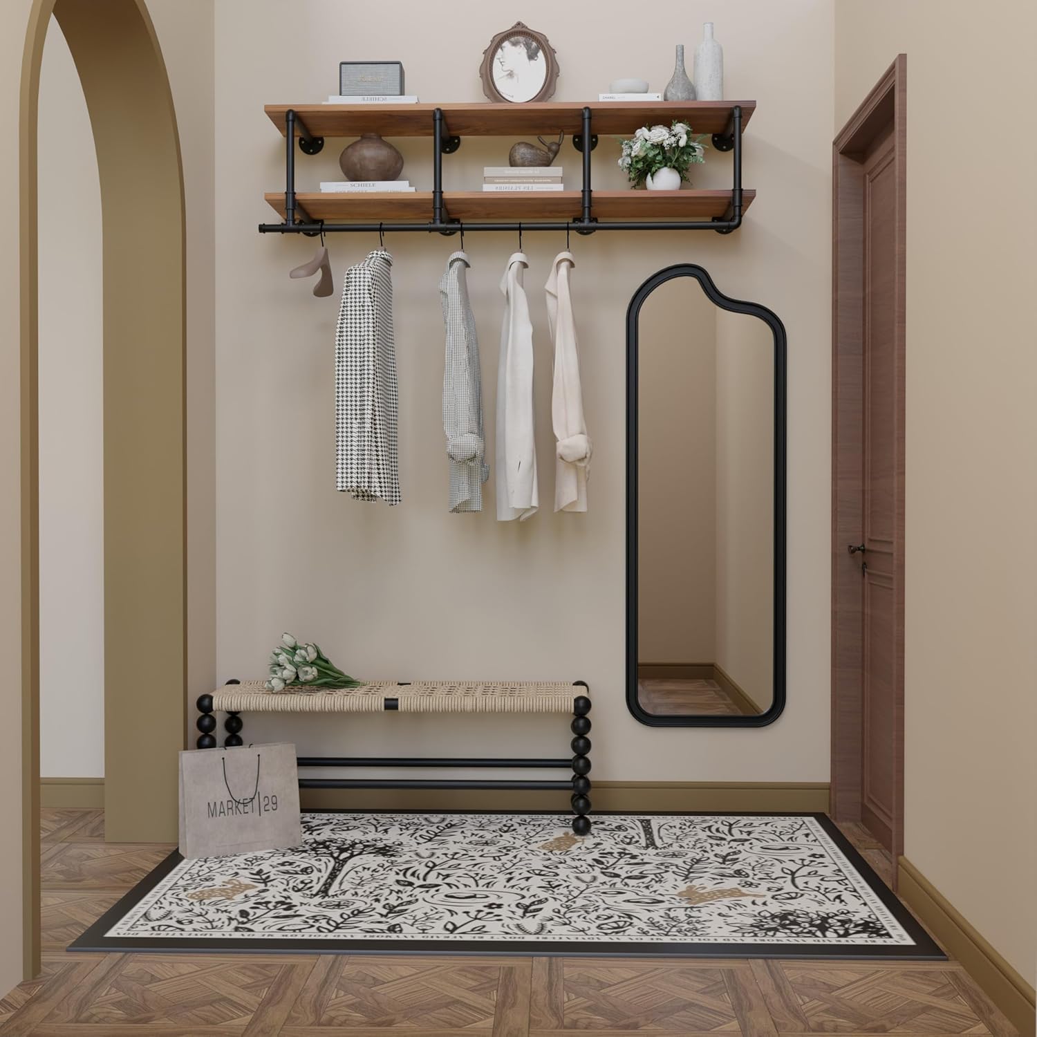 Wall Mounted Clothes Rack 12 Inch Deep, 60 Inch Heavy Duty Garment Rack with Real Brown Wood Shelf, Multi-Purpose Hanging Rod & Space-Saving Closet Storage Organizer