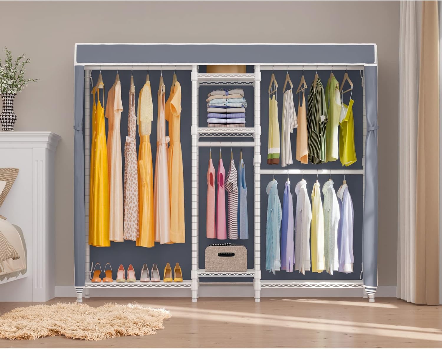 Ulif E7 Heavy Duty Garment Rack, Clothes Organizer and Storage Rack with Expandable Hangers, Metal Clothing Rack with 6 Wire Shelves, (52.3"-72") W x 14.5" D x 71.2" H, Load 838 LBS, White
