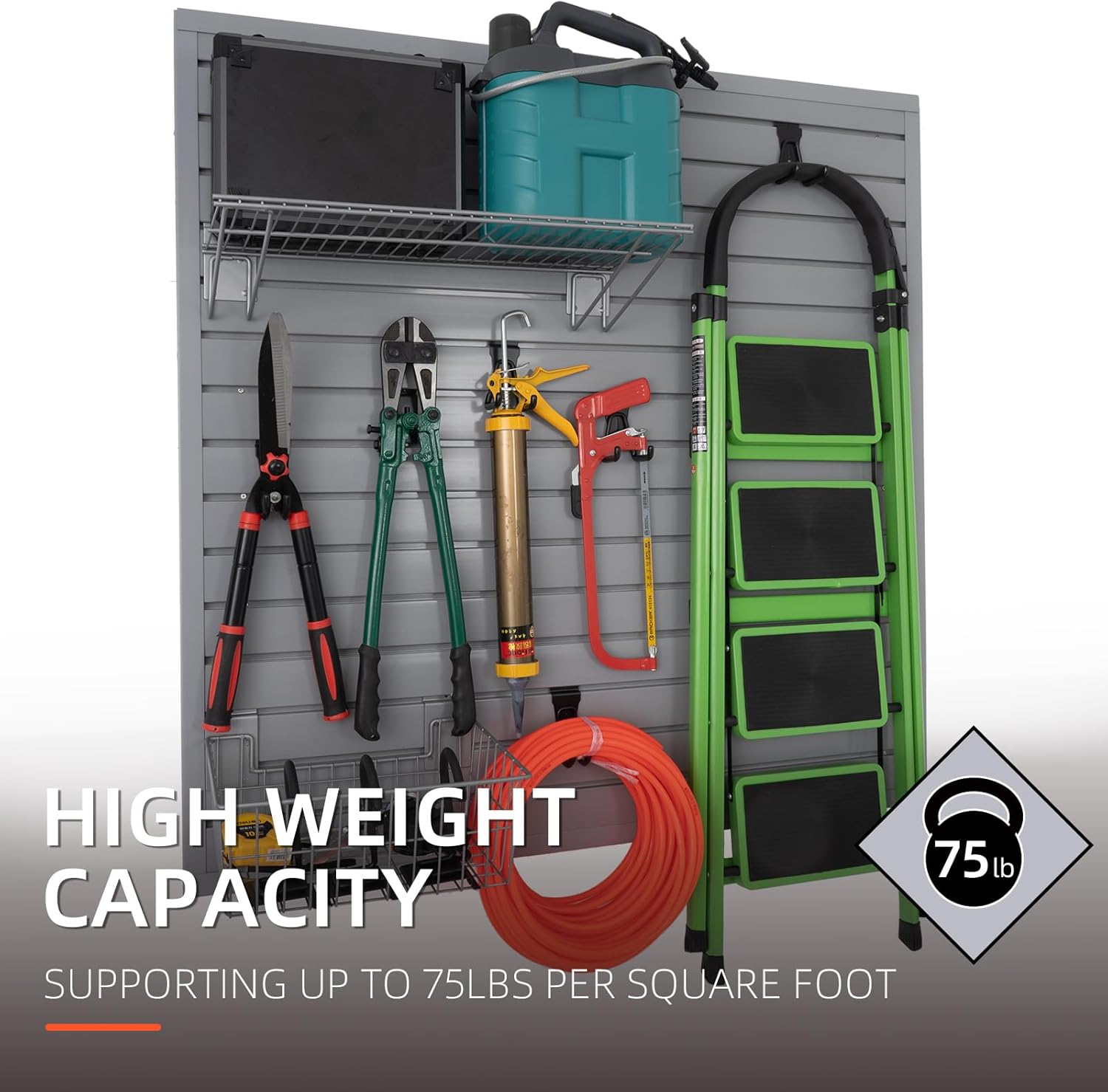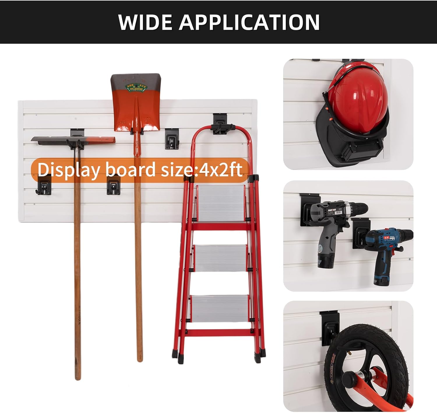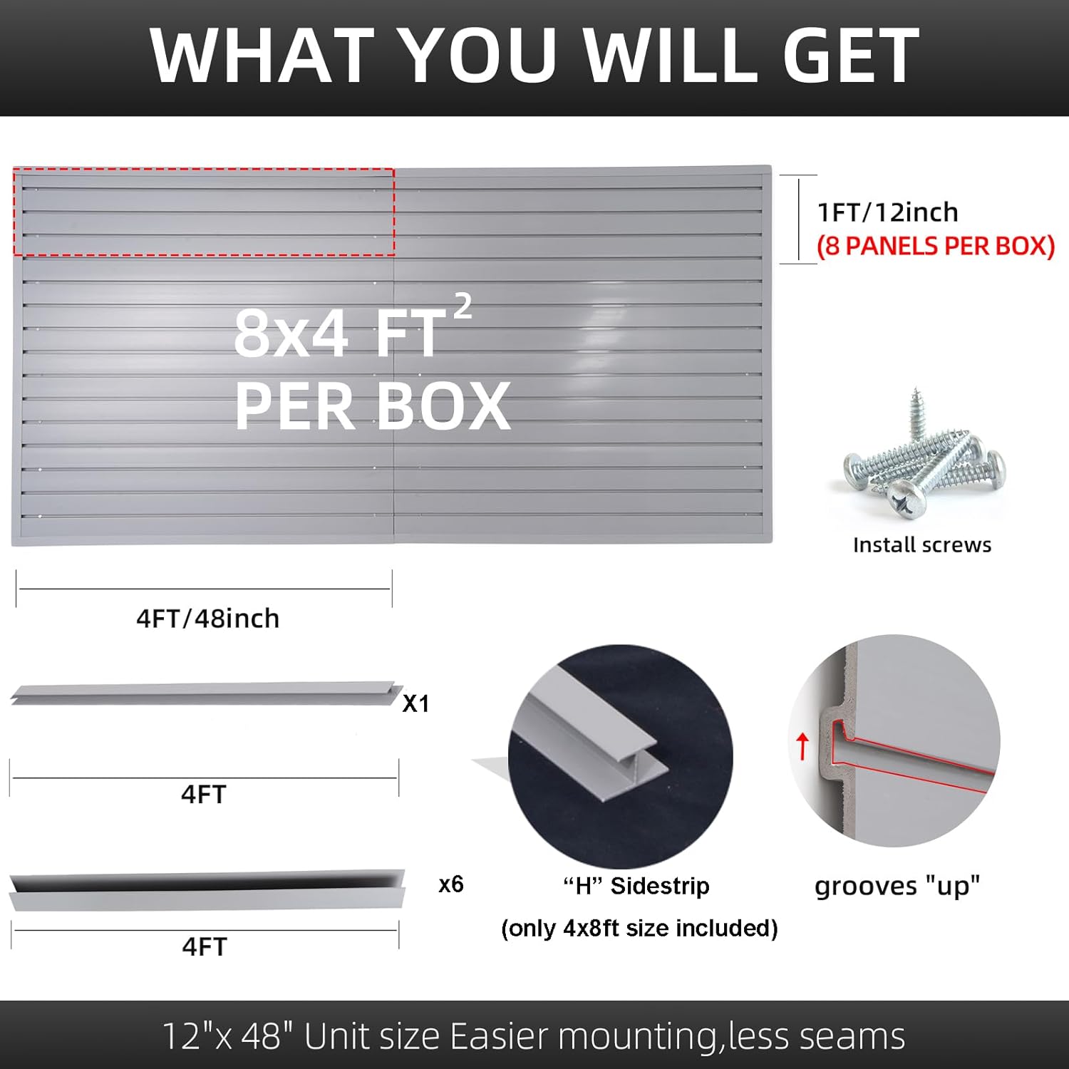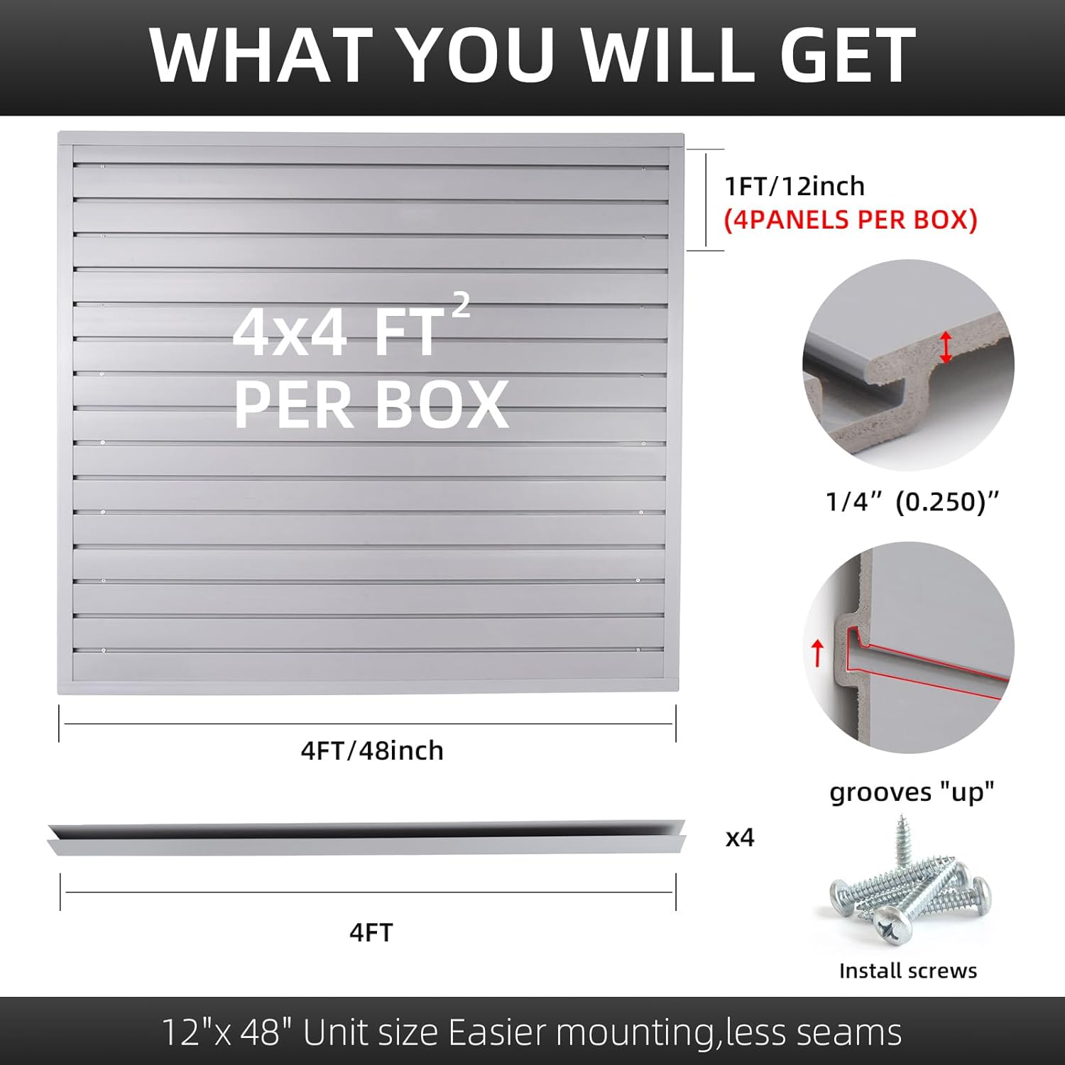 Slatwall Panel Garage Organizer Heavy Duty Wall Mounted, PVC Slat Panels Home Storage System, Tool Organization Peg Board 4ft by 4ft (Gray)