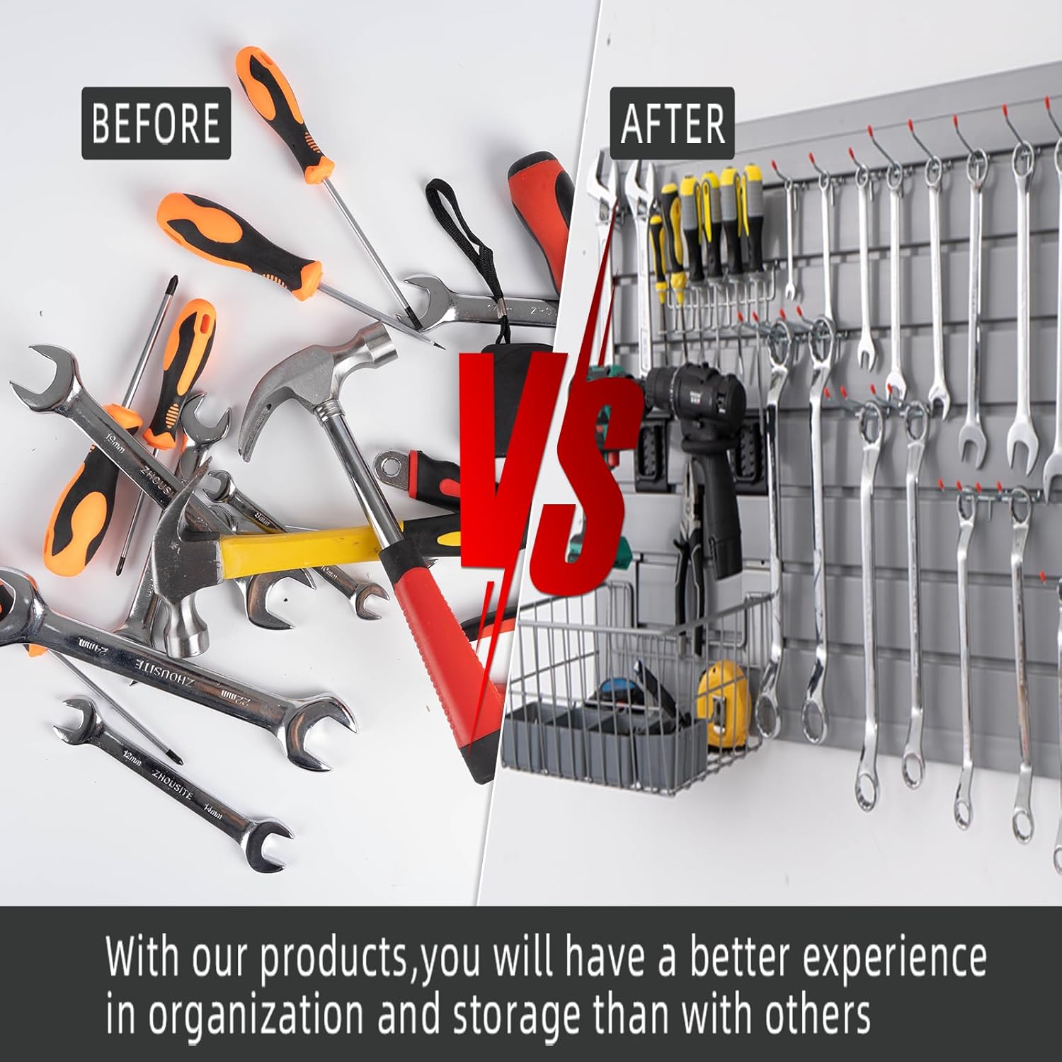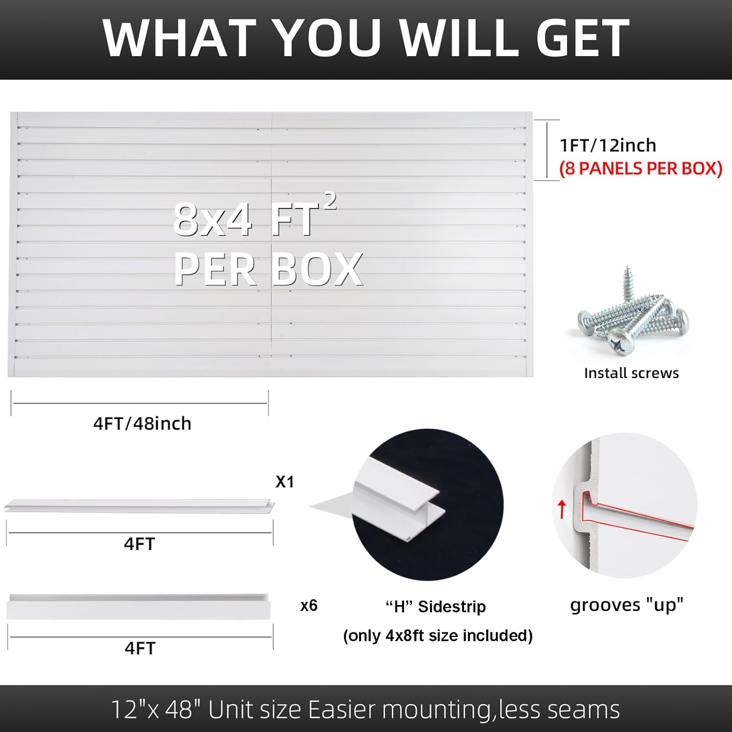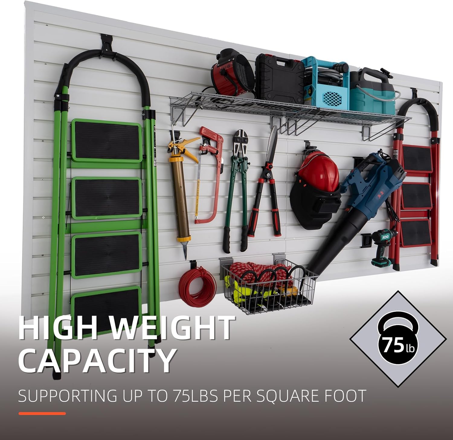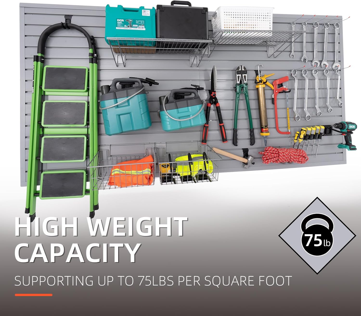 Slatwall Panel Garage Organizer Heavy Duty Wall Mounted, PVC Slat Panels Home Storage System, Tool Organization Peg Board 4ft by 4ft (Gray)