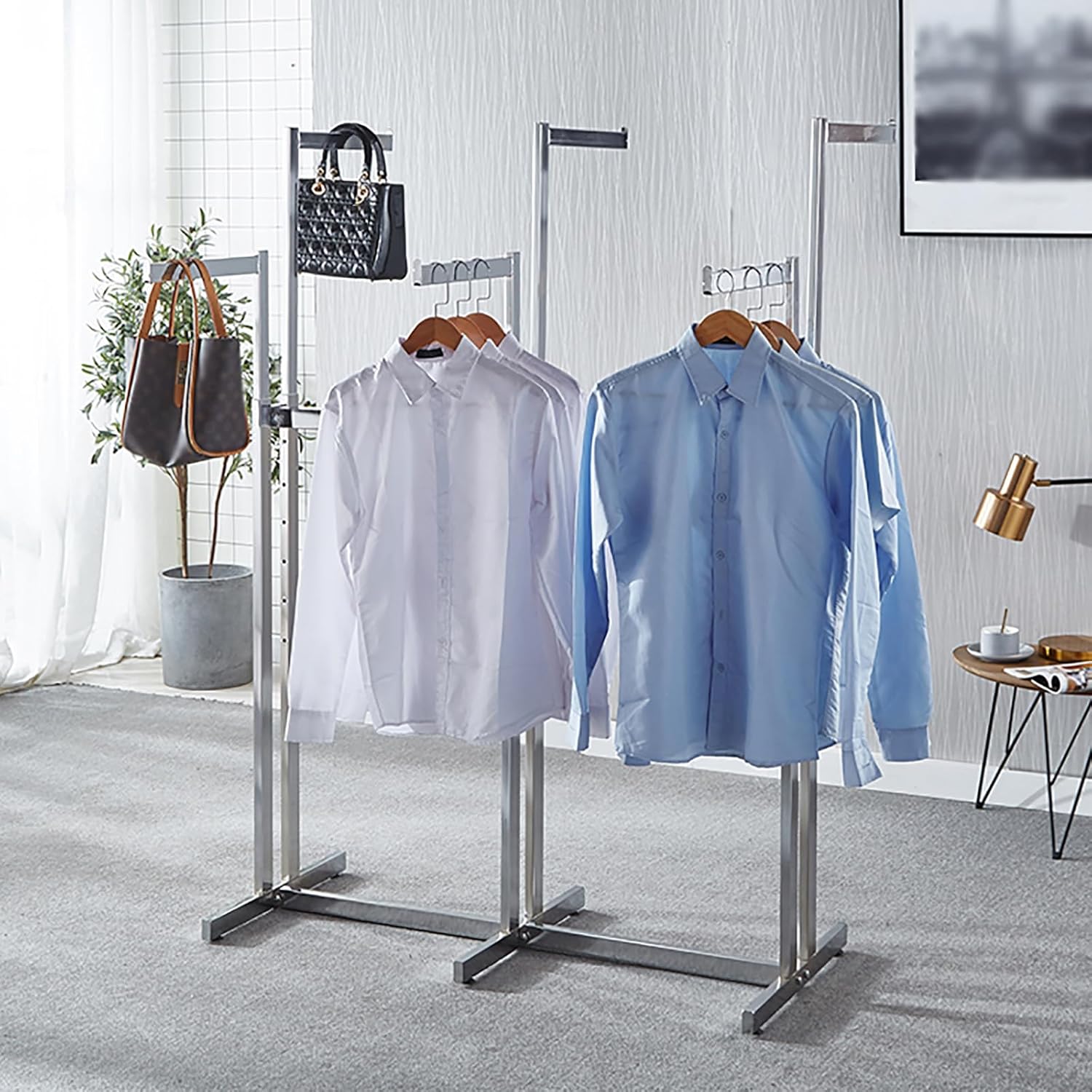 Floor Standing Metal Garment Rack - Heavy Retail Display Racks With Wheels, 6 Arms Clothing Rack, Square Tubing Portable Shirt Racks, Merchandise Display For Hanging Clothes (Silver)