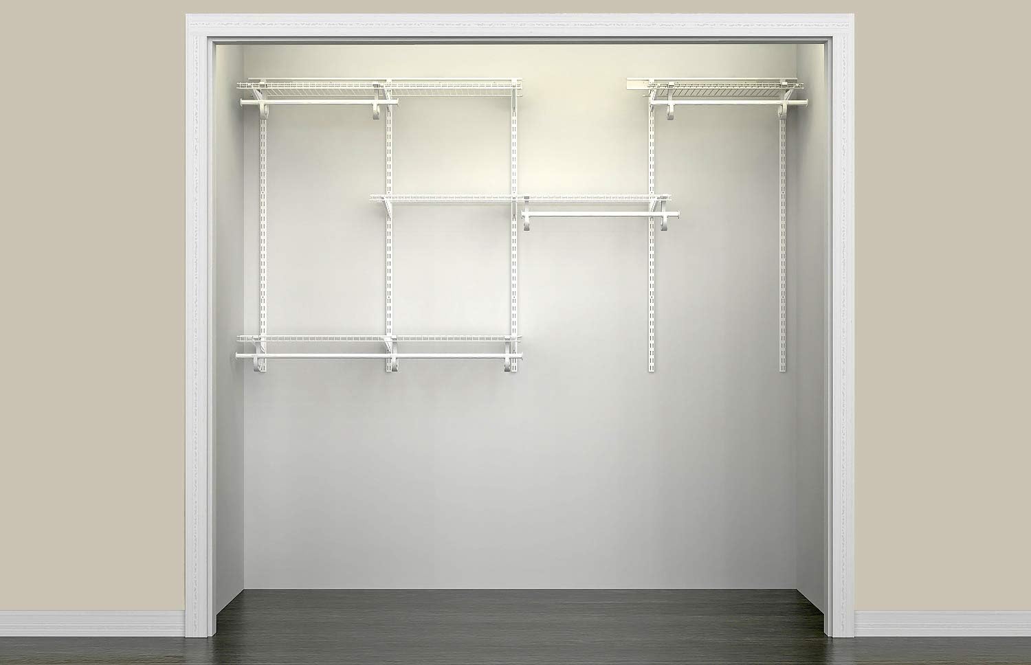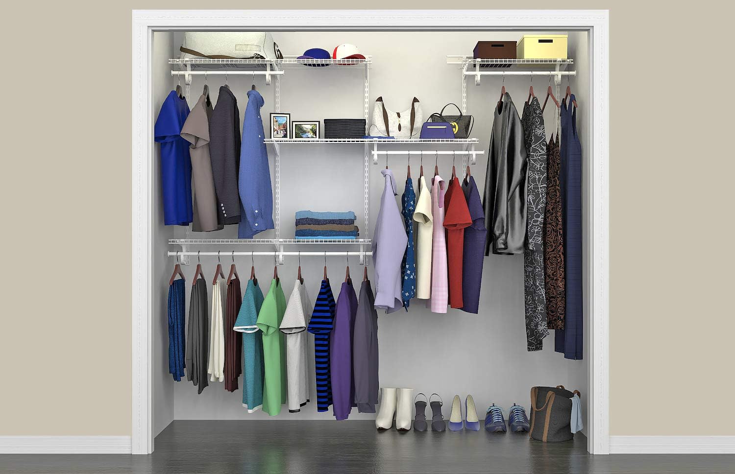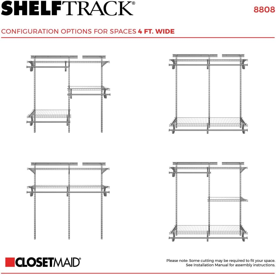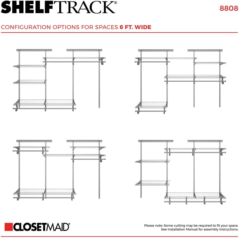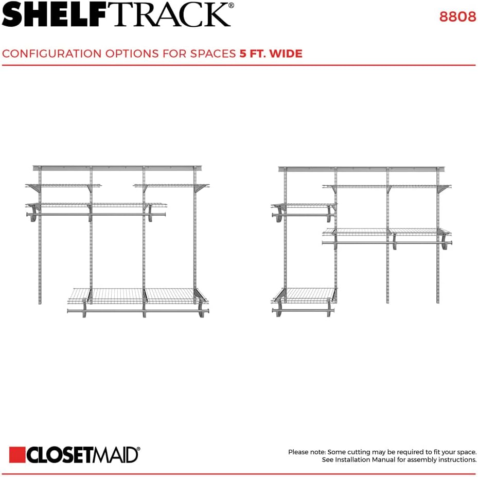 ClosetMaid ShelfTrack Wire Closet Organizer System, Adjustable from 5 to 8 Ft., With Shelves, Clothes Rods, Hardware, Durable Steel, White