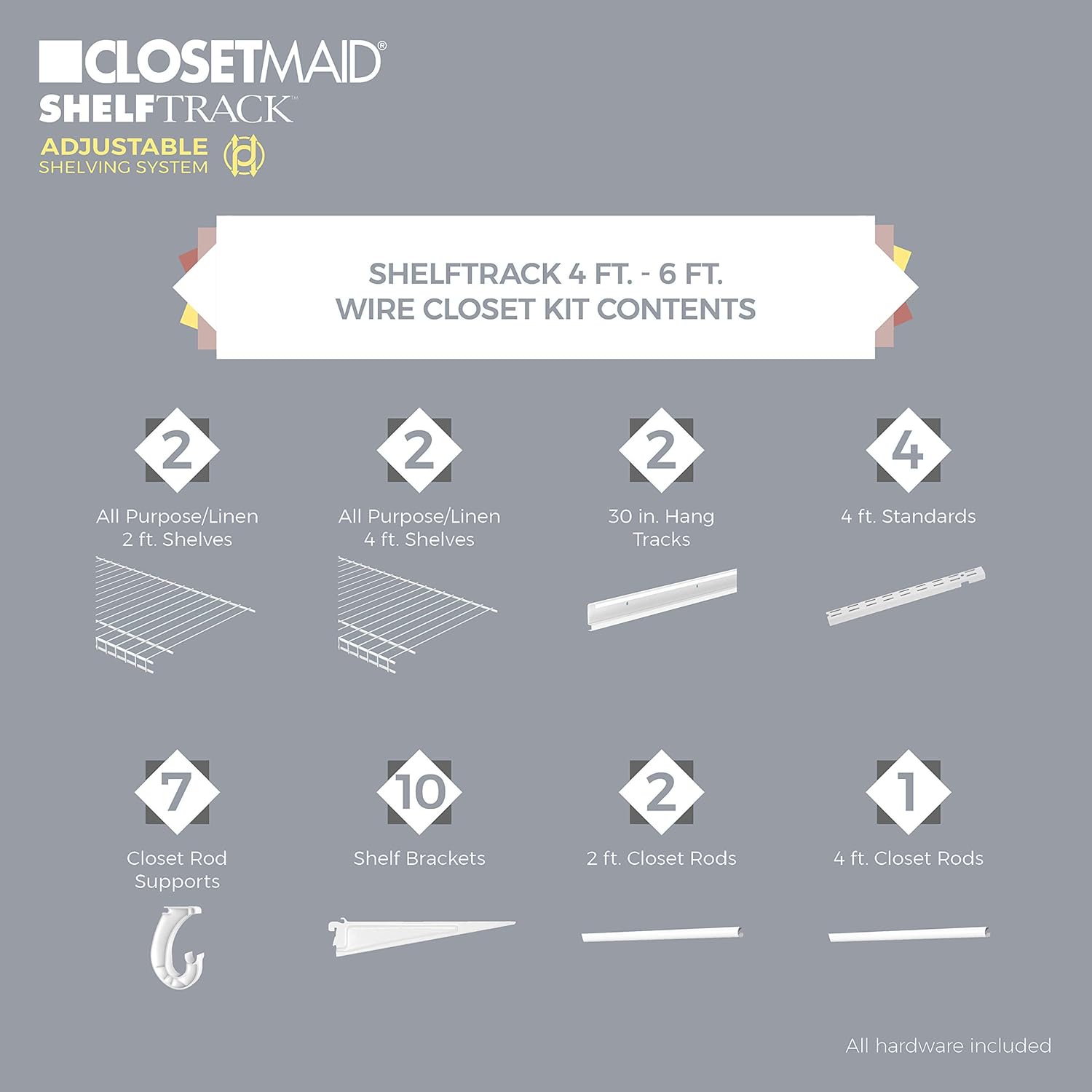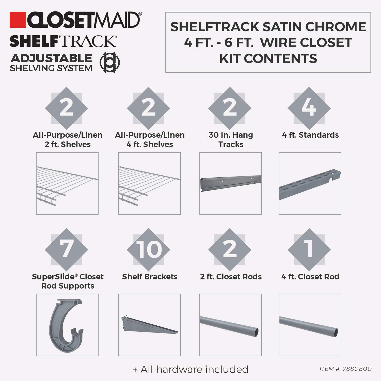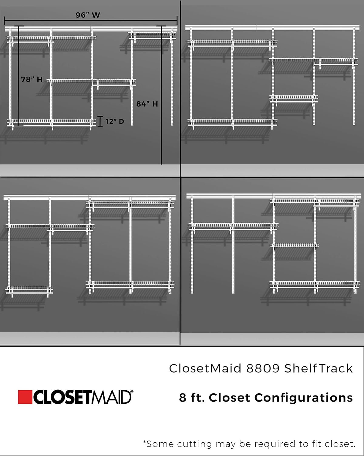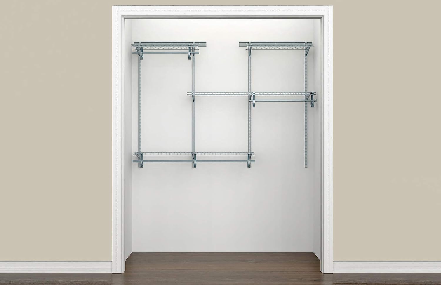 ClosetMaid ShelfTrack Wire Closet Organizer System, Adjustable from 5 to 8 Ft., With Shelves, Clothes Rods, Hardware, Durable Steel, White