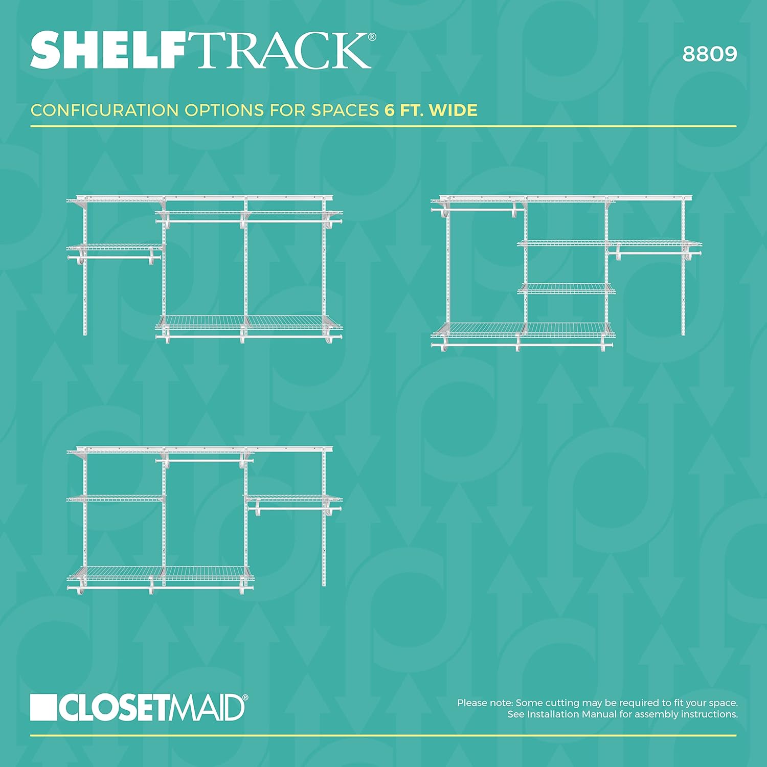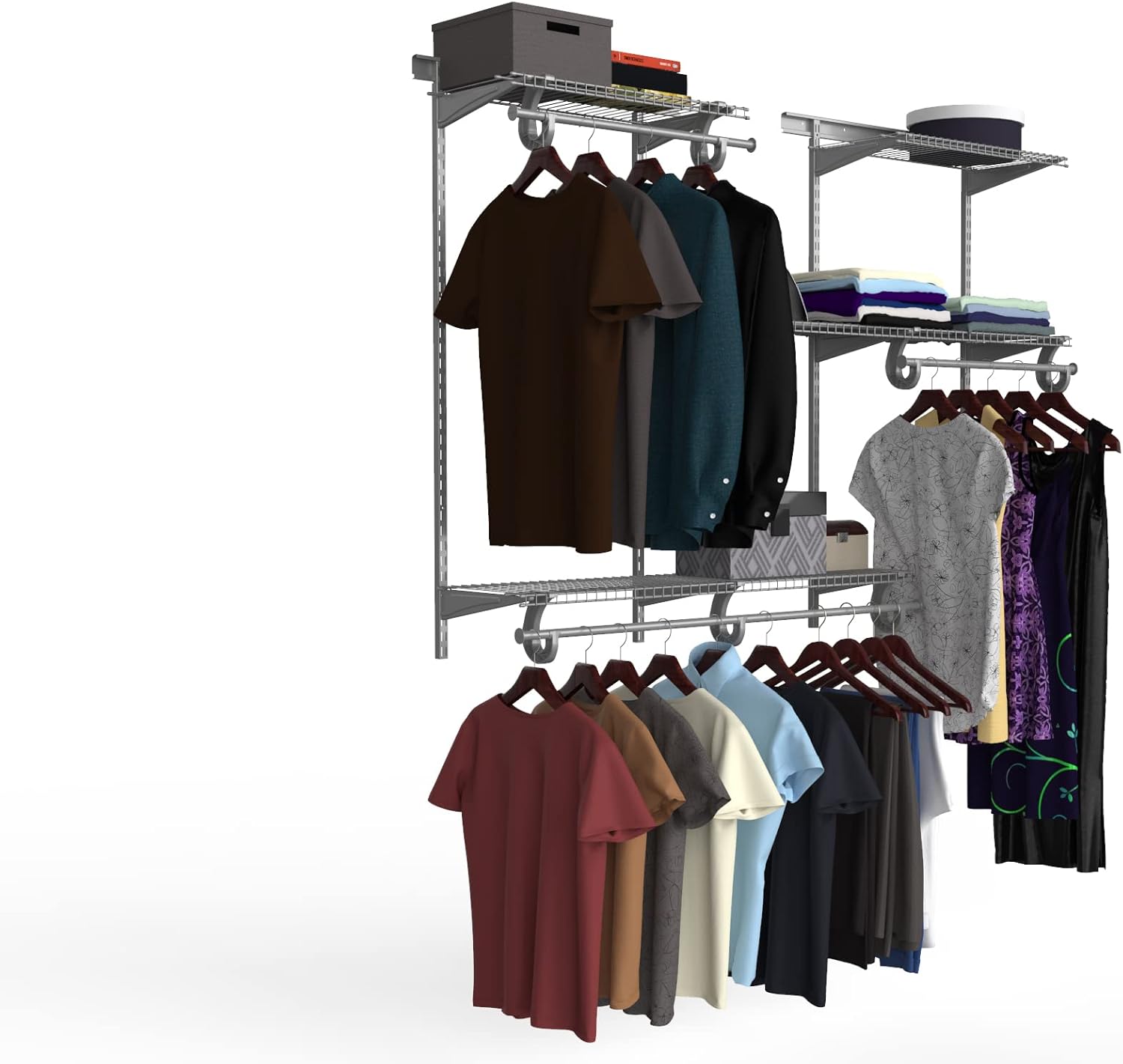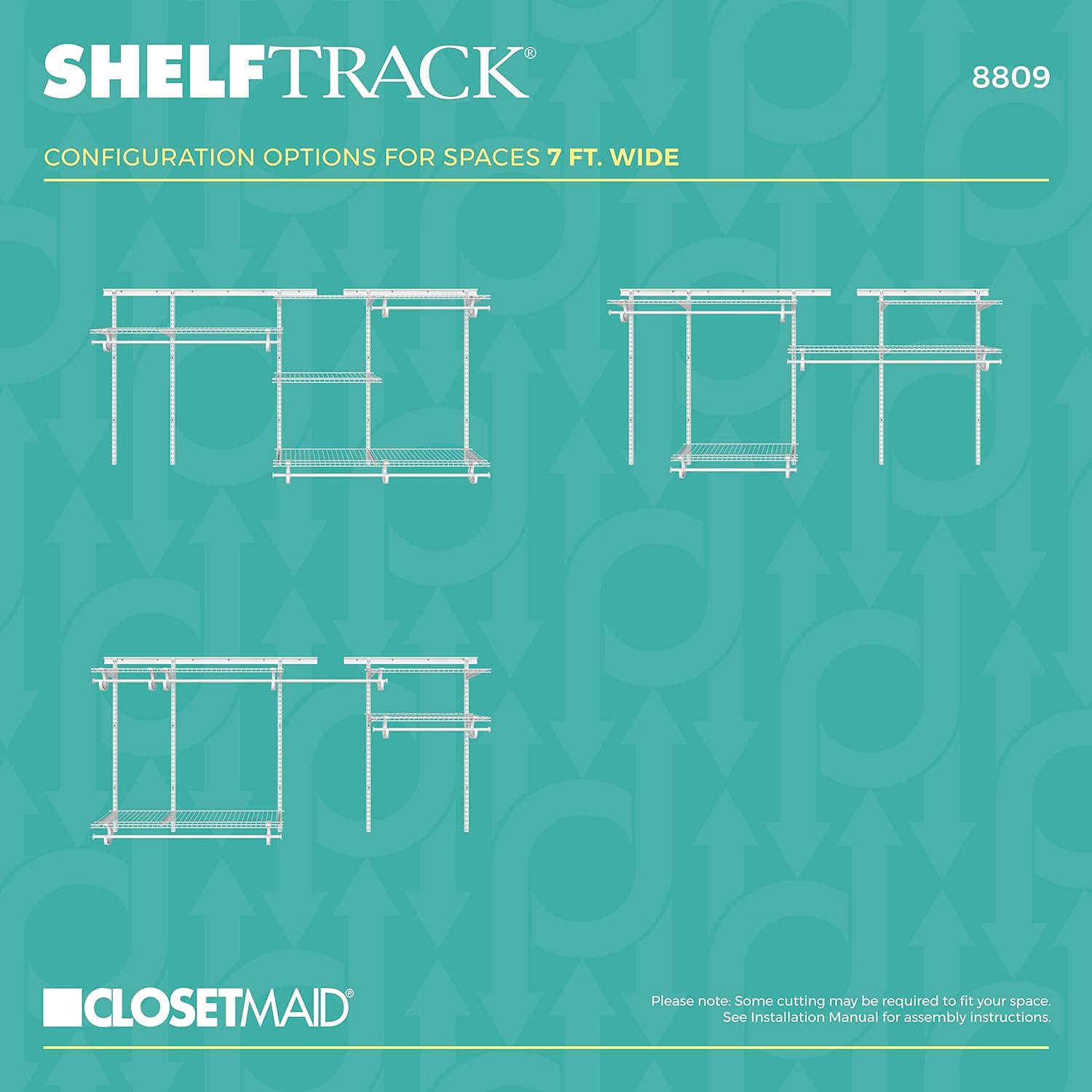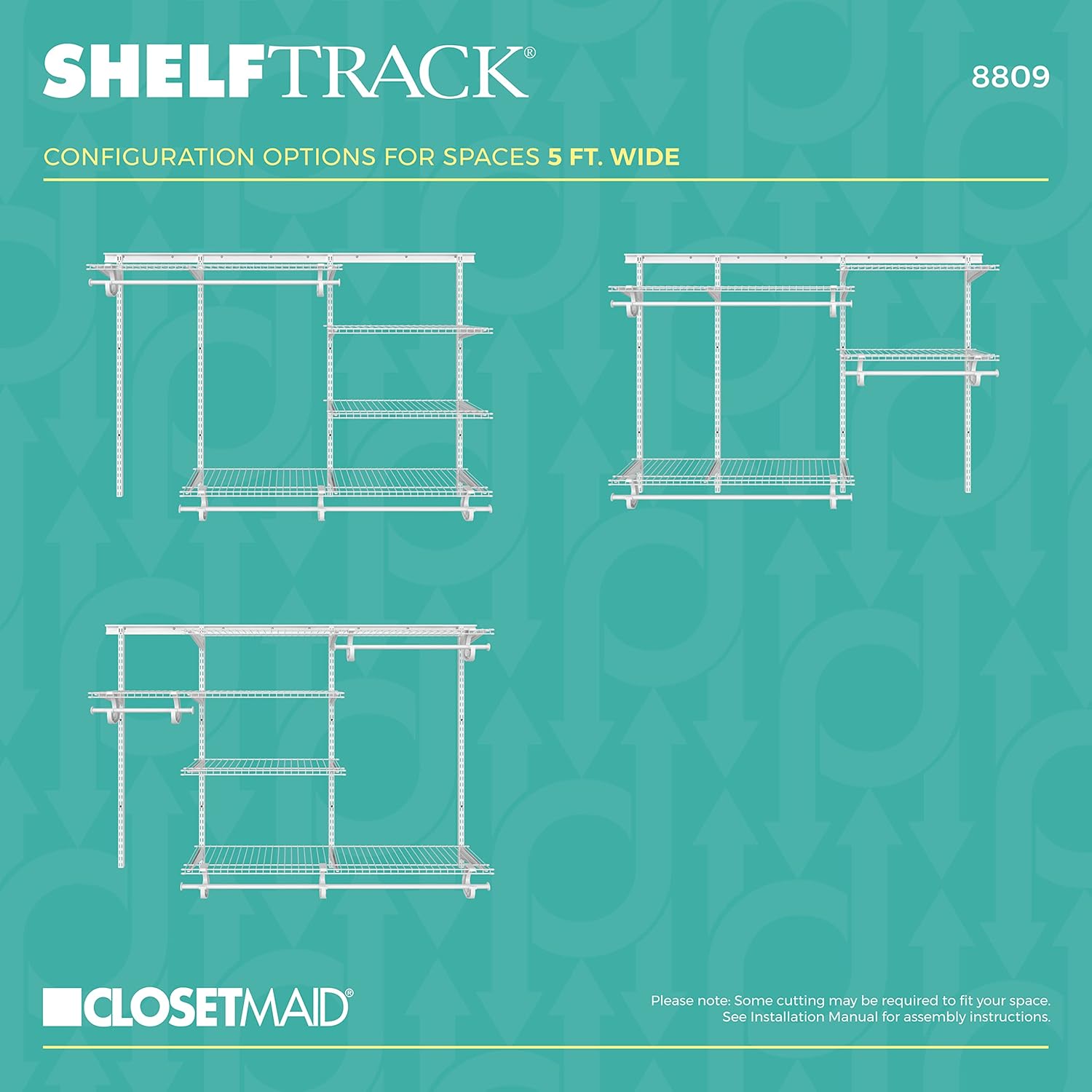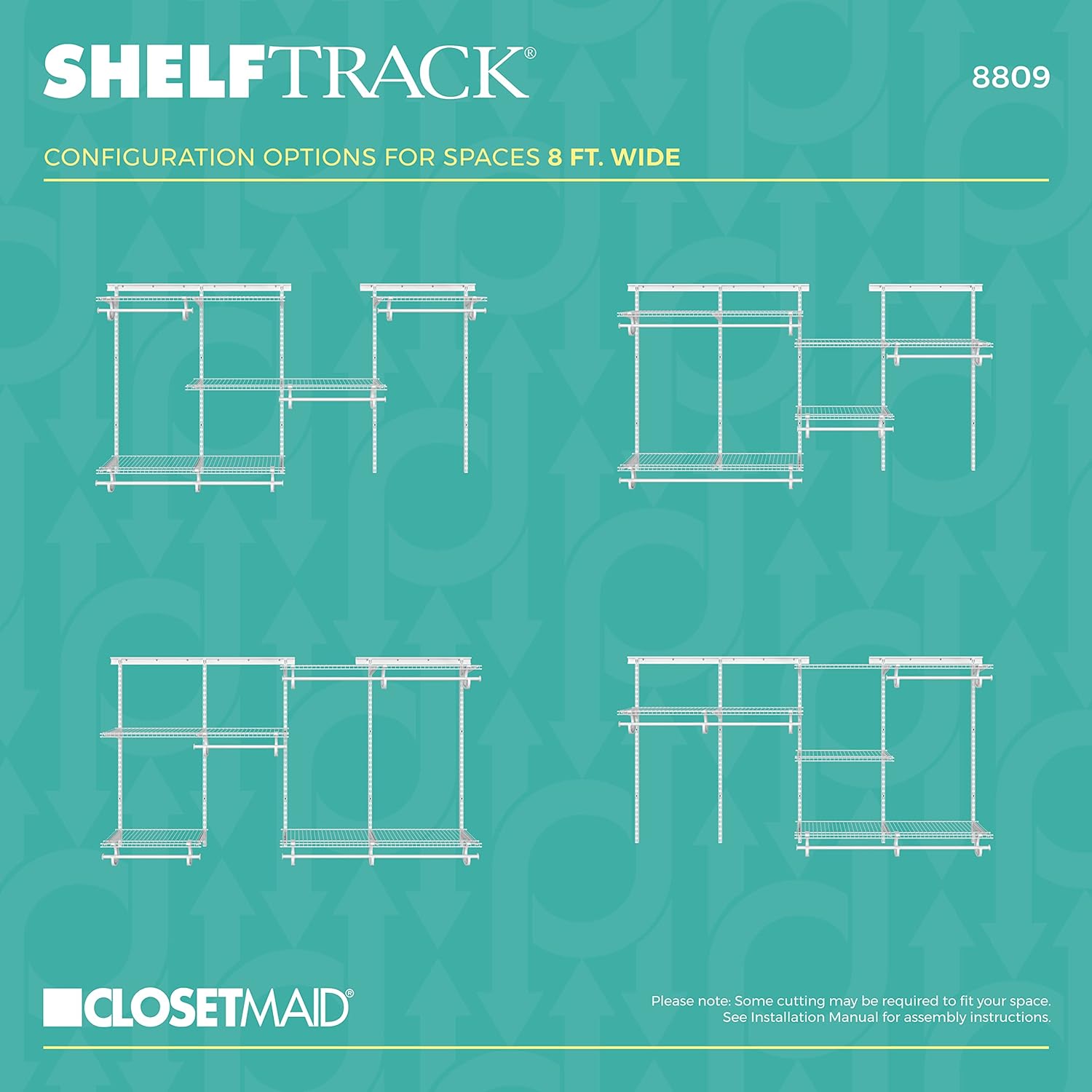 ClosetMaid ShelfTrack Wire Closet Organizer System, Adjustable from 5 to 8 Ft., With Shelves, Clothes Rods, Hardware, Durable Steel, White