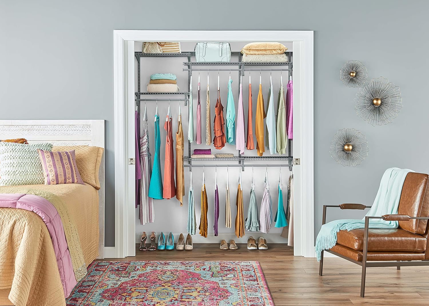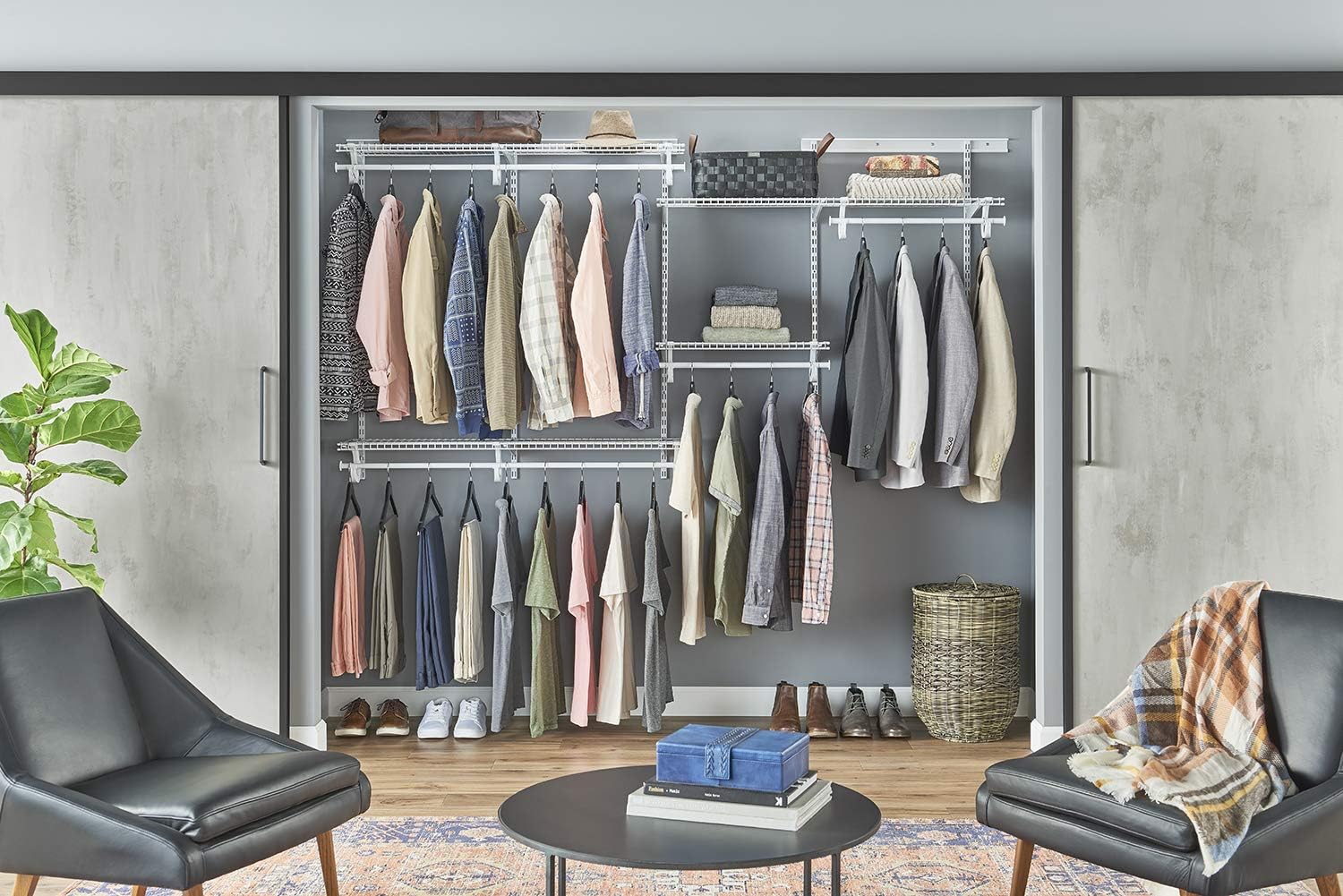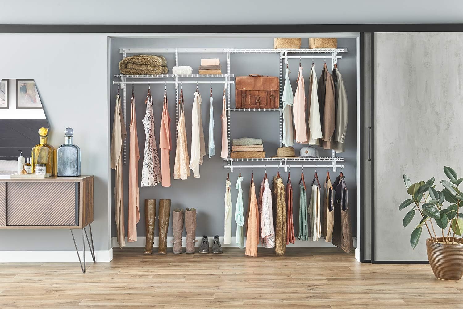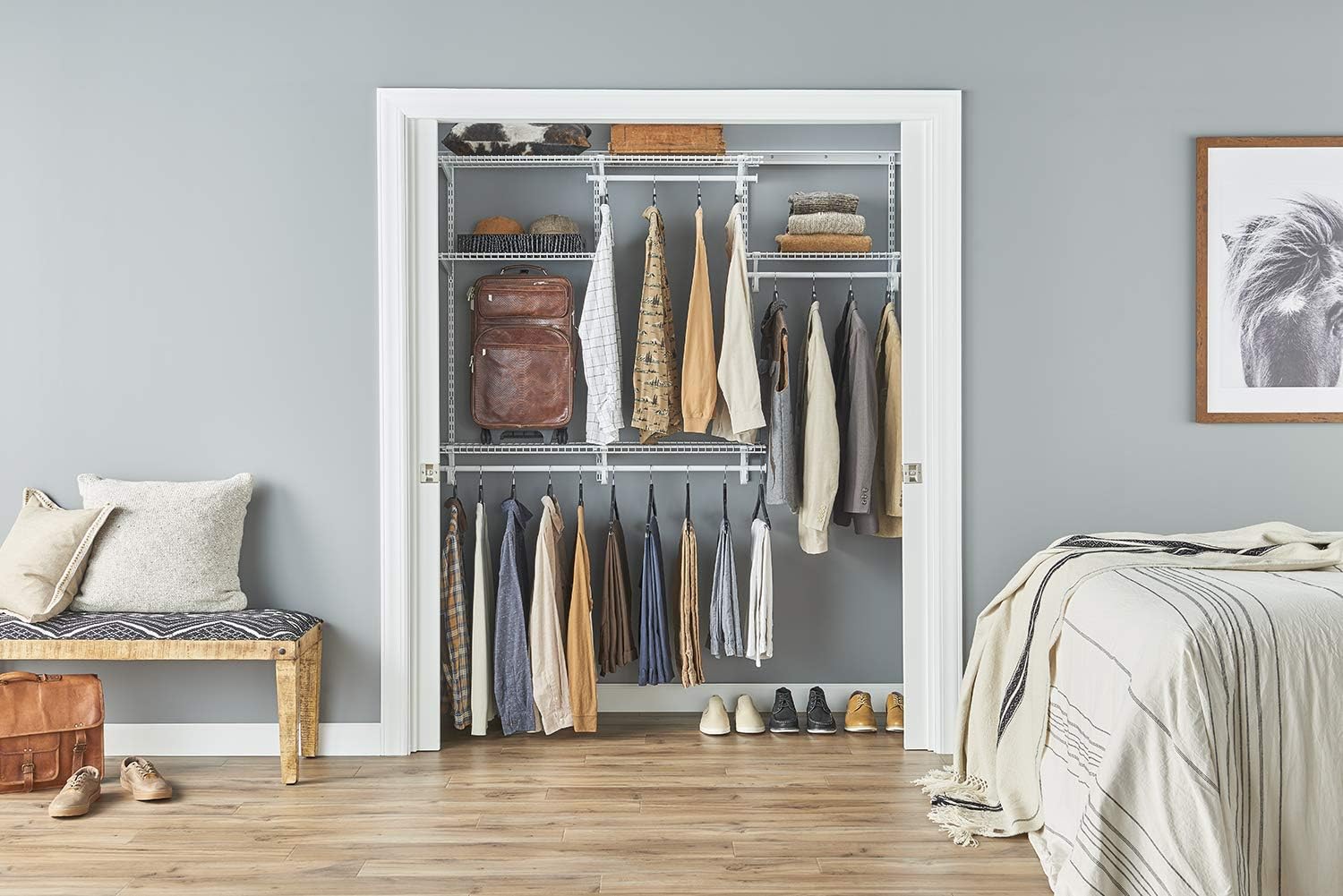 ClosetMaid ShelfTrack Wire Closet Organizer System, Adjustable from 5 to 8 Ft., With Shelves, Clothes Rods, Hardware, Durable Steel, White