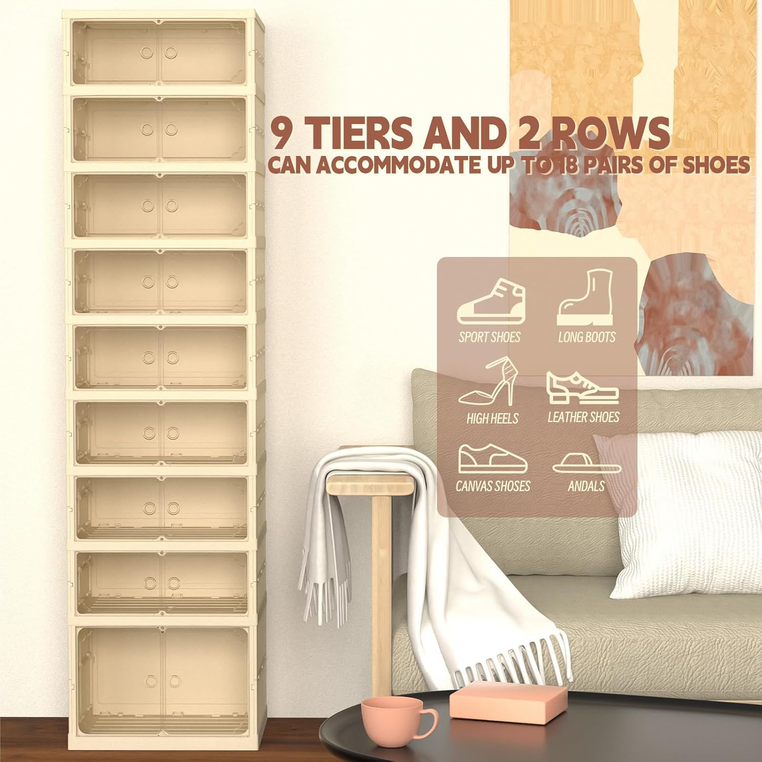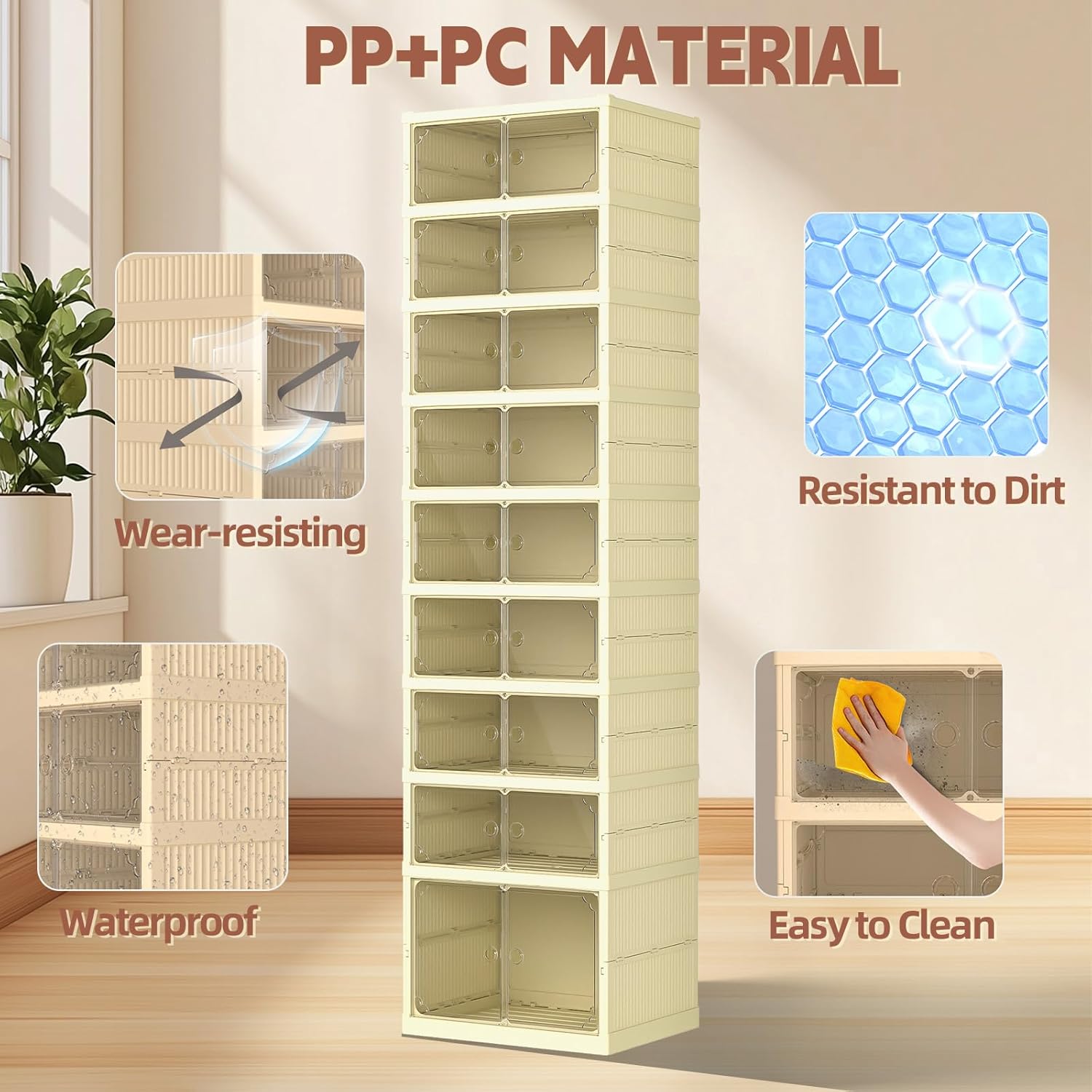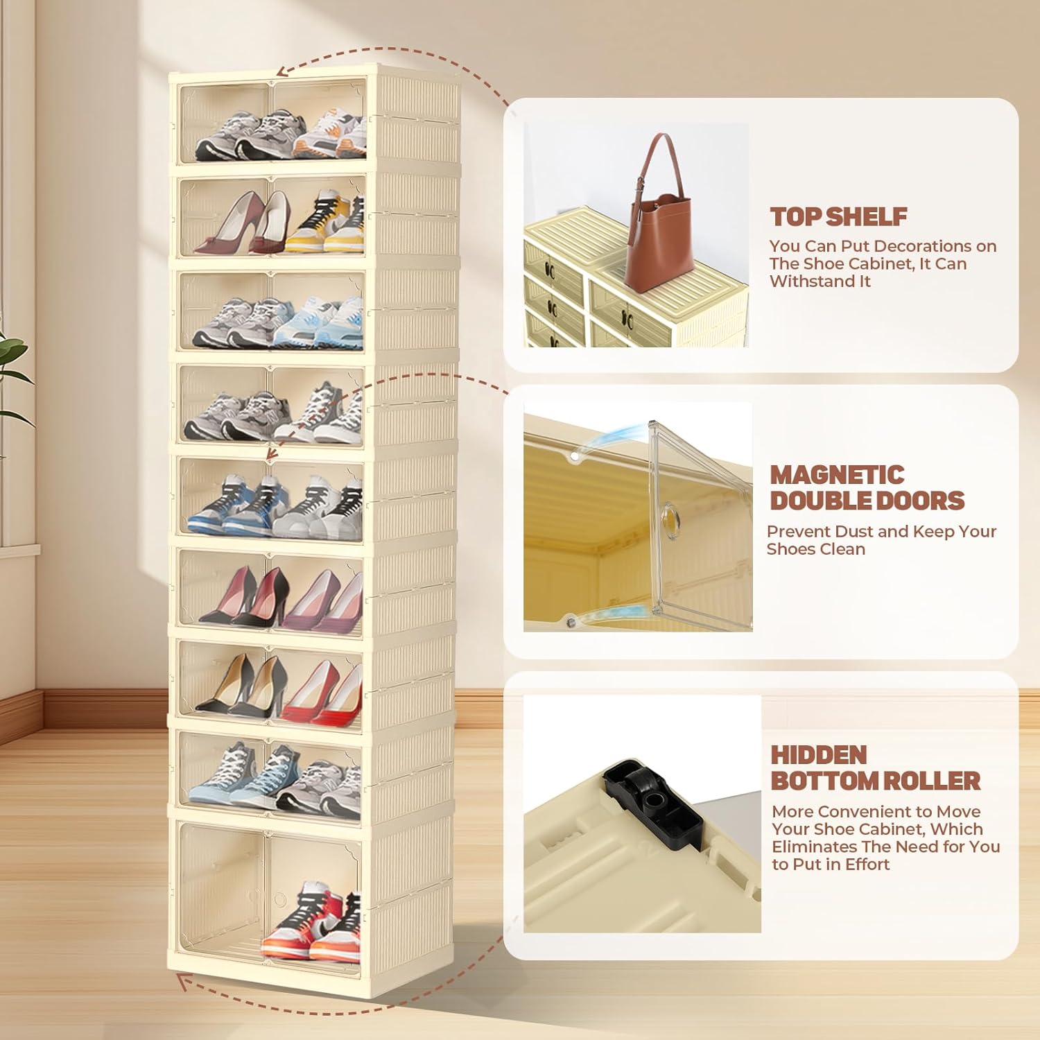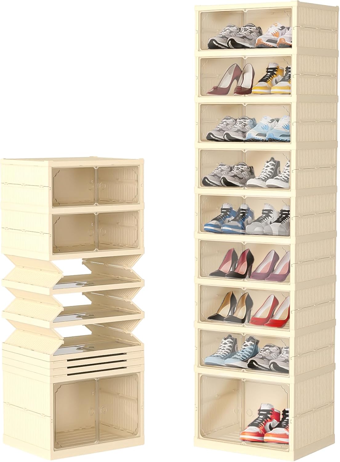 Dollate 9 Tiers 36 Pairs Foldable Shoe Rack, Large Shoe Storage with Magnetic Clear Door, Easy Assembly and Freely Movable Shoes Organizer, Large Capacity Shoe Shelf for Cloakroom, Entryway