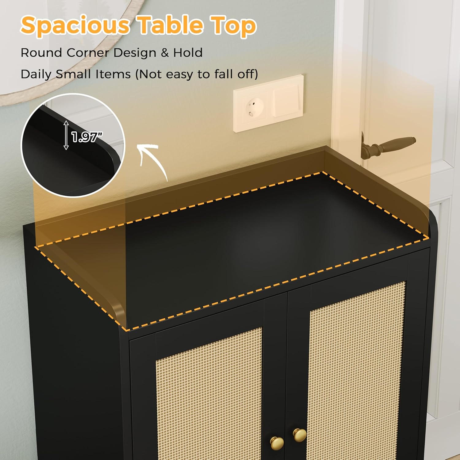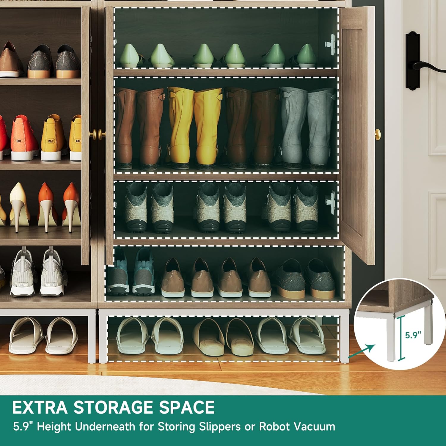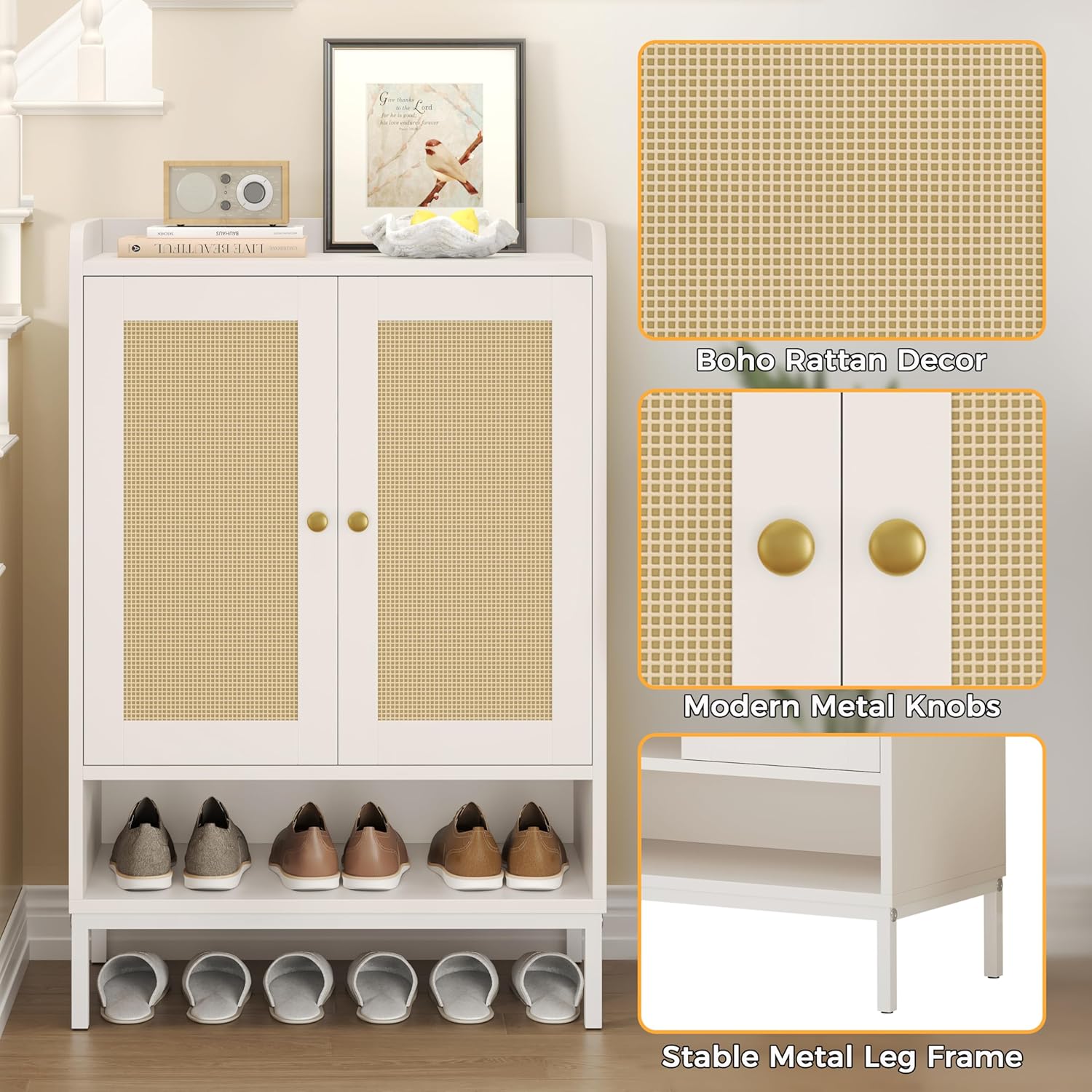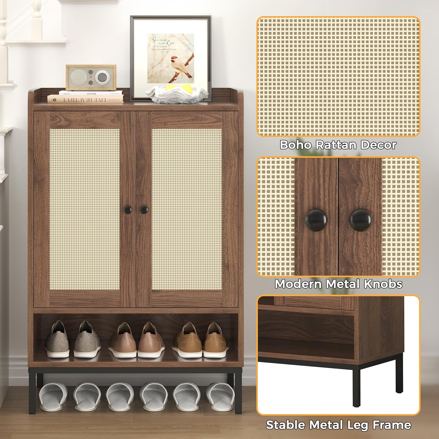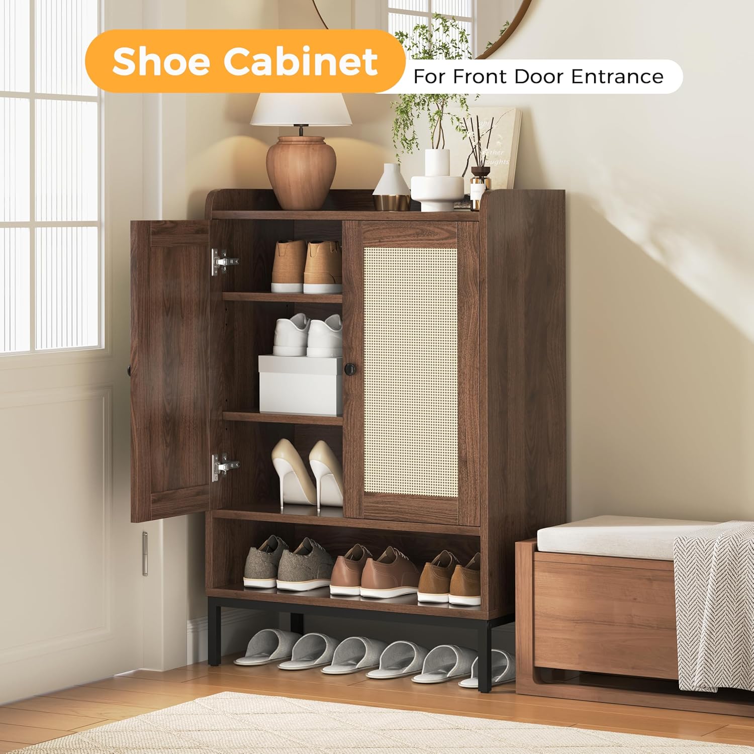 JASIWAY Rattan Shoe Cabinet Storage for Entryway, Shoe Cabinet with Adjustable Shelves for Entryway, 5-Tier, 20 Pair Shoe Rack Storage for Hallway, Closet, Living Room, Black