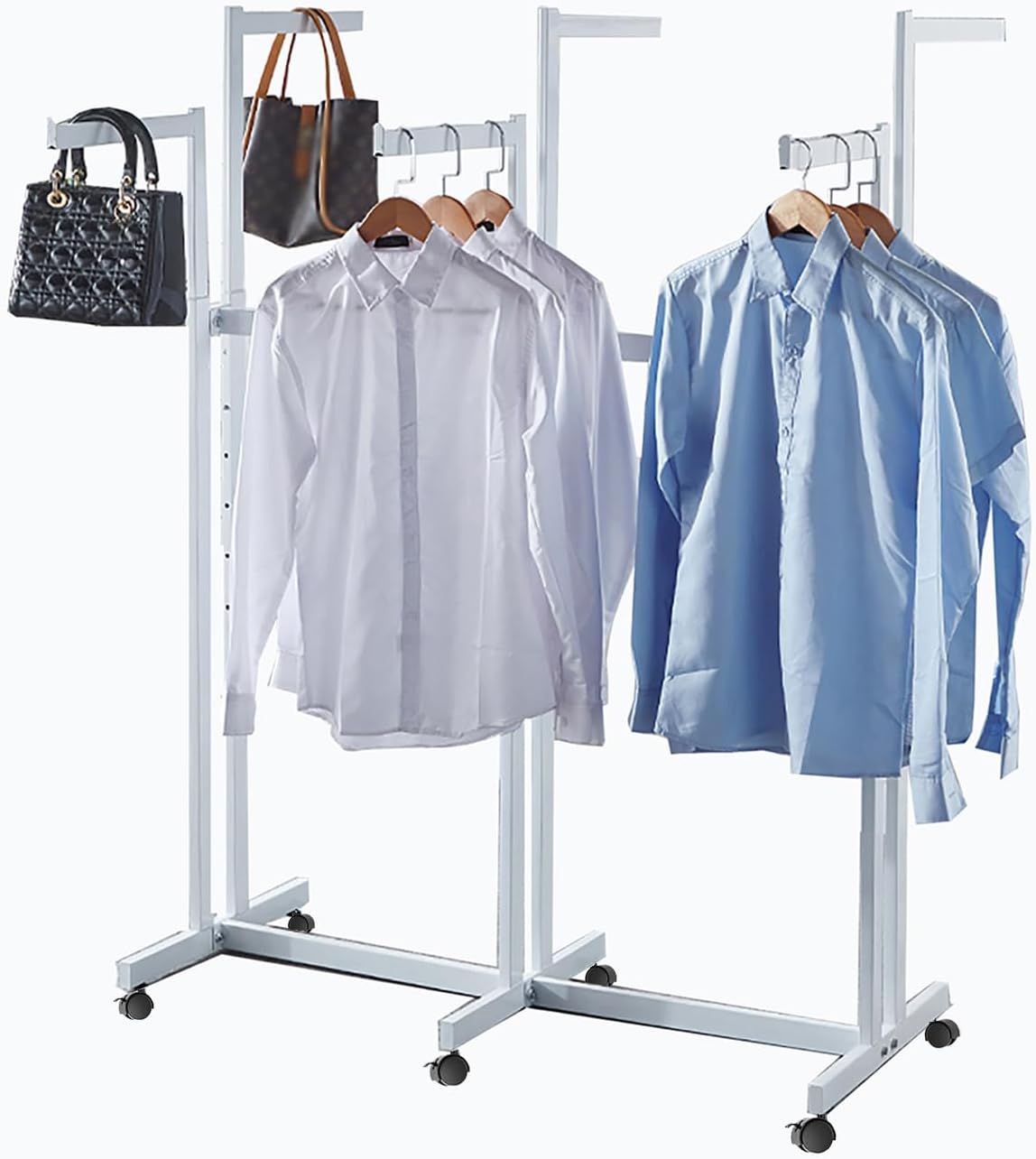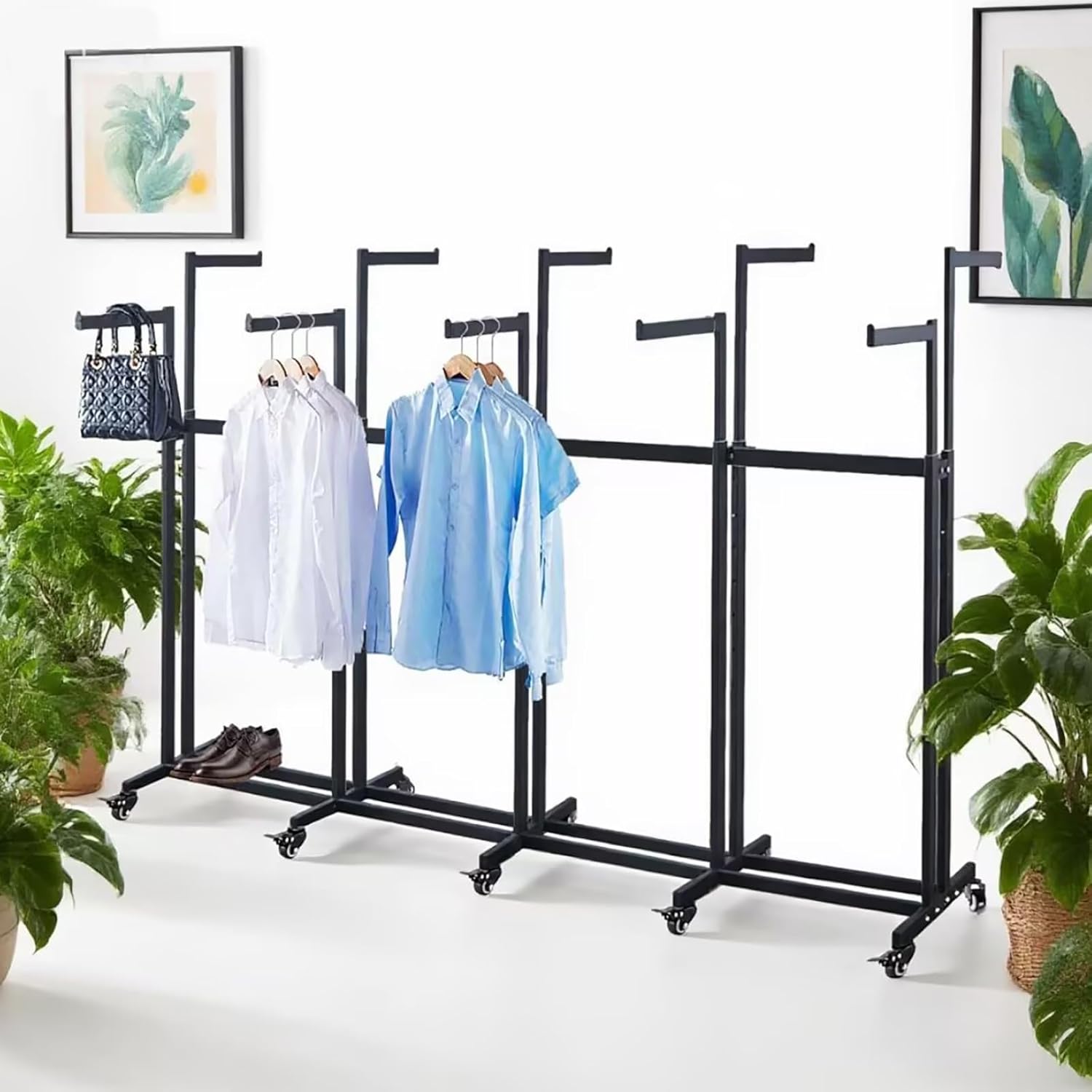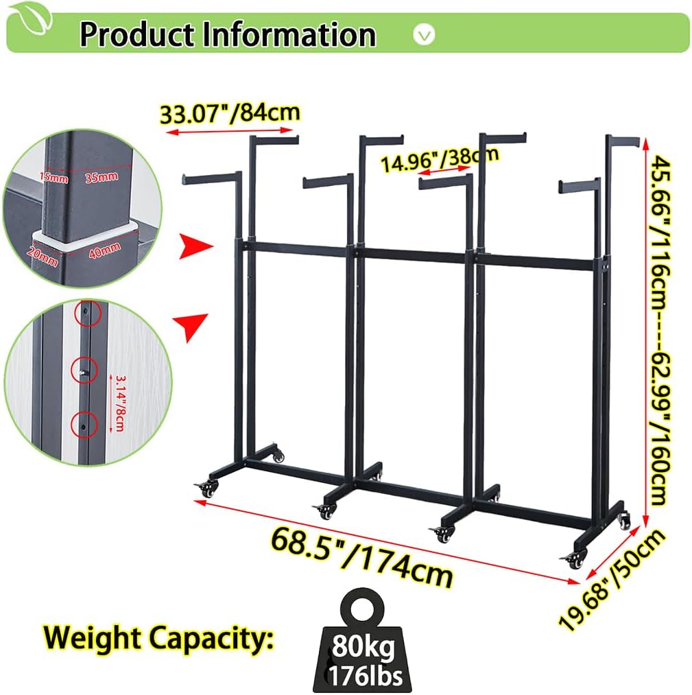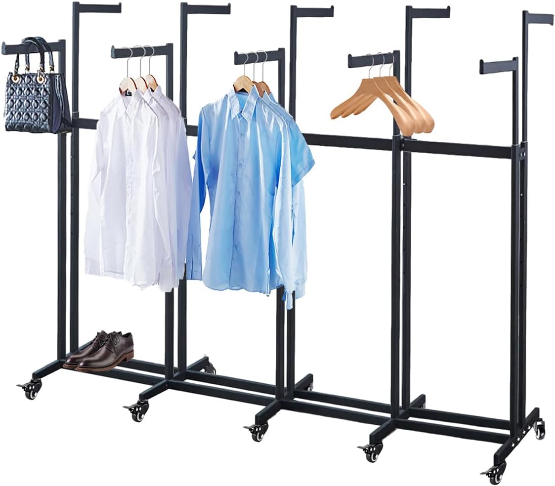 Floor Standing Metal Garment Rack - Heavy Retail Display Racks With Wheels, 8 Arms Clothing Rack, Square Tubing Portable Shirt Racks, Merchandise Display For Hanging Clothes (L-Black)
