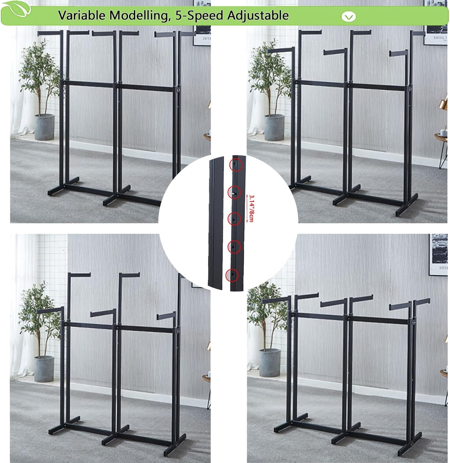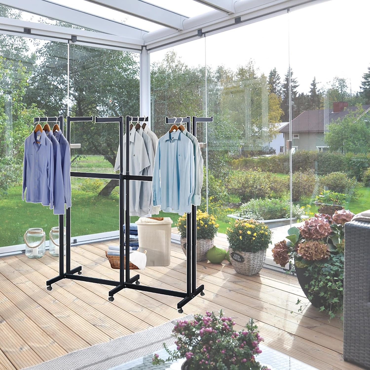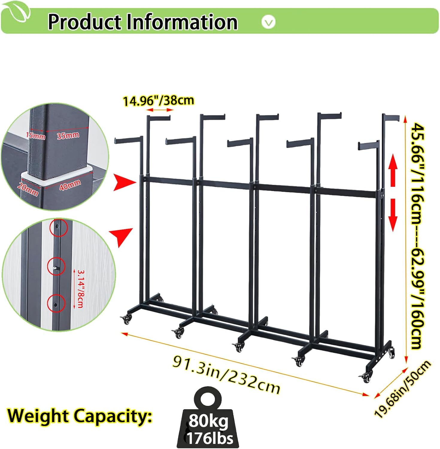 Floor Standing Metal Garment Rack - Heavy Retail Display Racks With Wheels, 8 Arms Clothing Rack, Square Tubing Portable Shirt Racks, Merchandise Display For Hanging Clothes (L-Black)