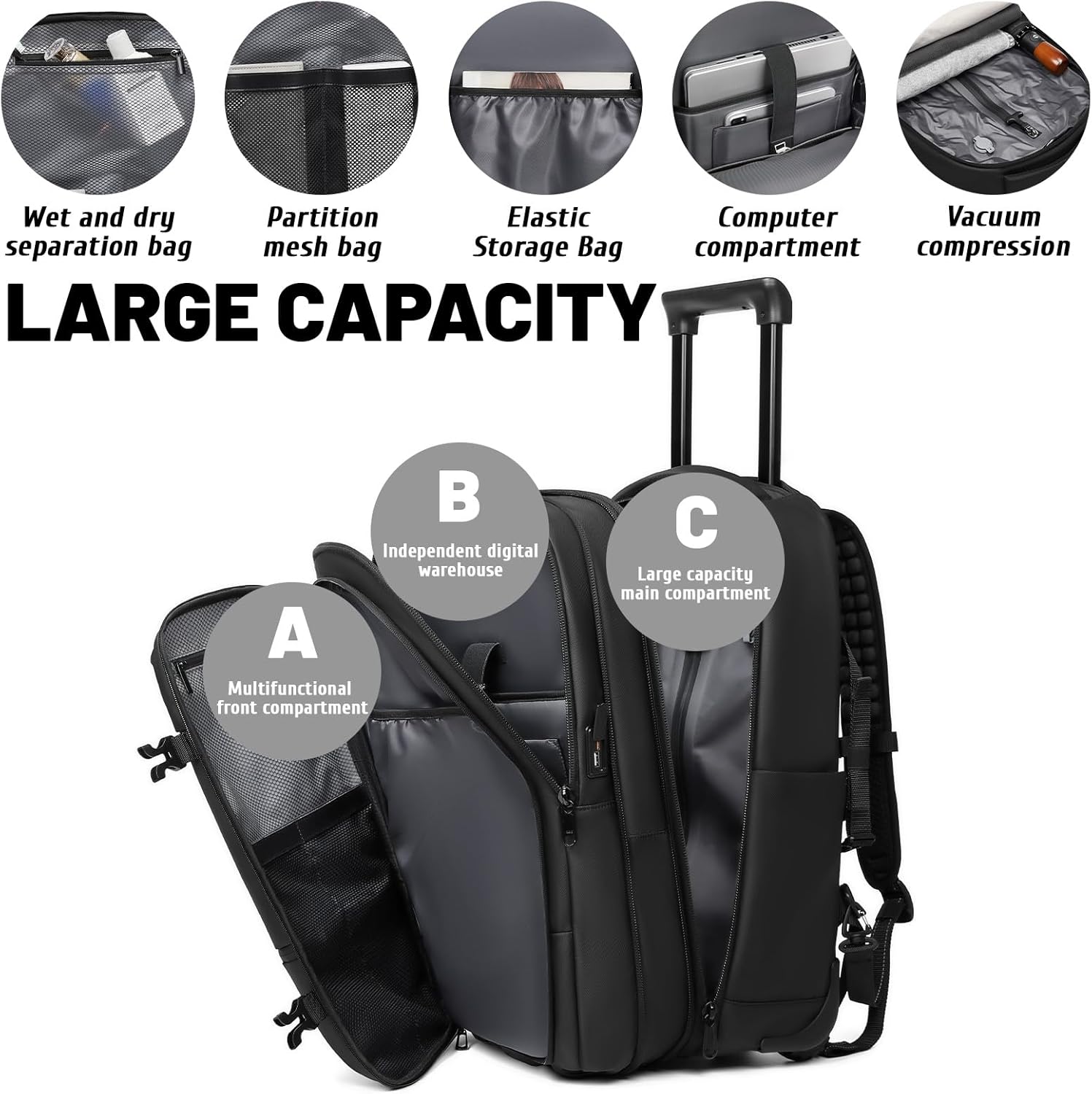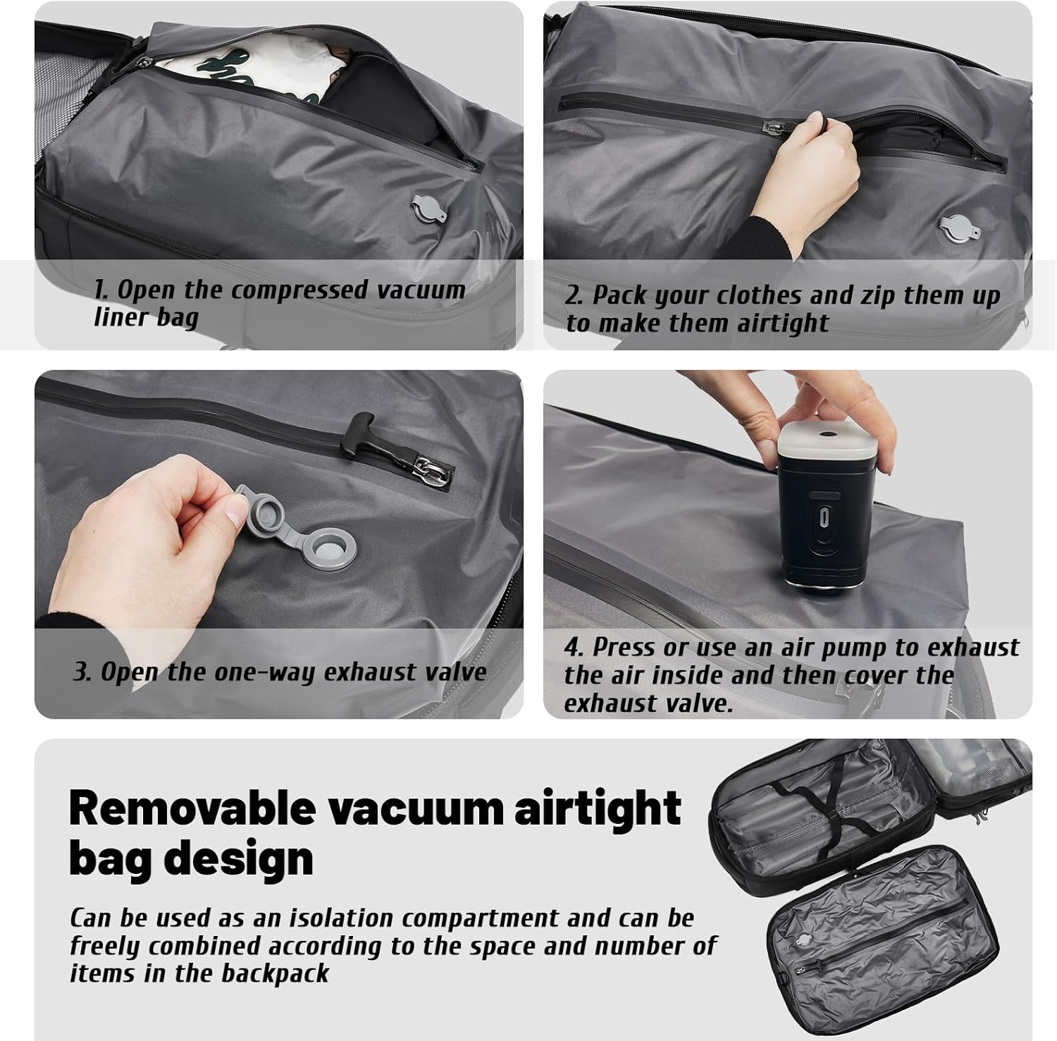 21" Carry On Luggage with Vacuum Seal Bag,Vacpack Backpack with Wheels,Air Suitcase with USB Port,Pump,Lock