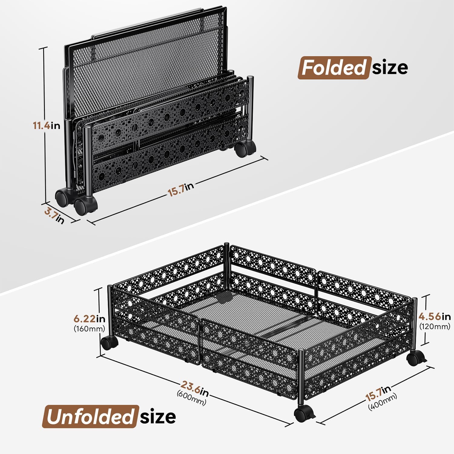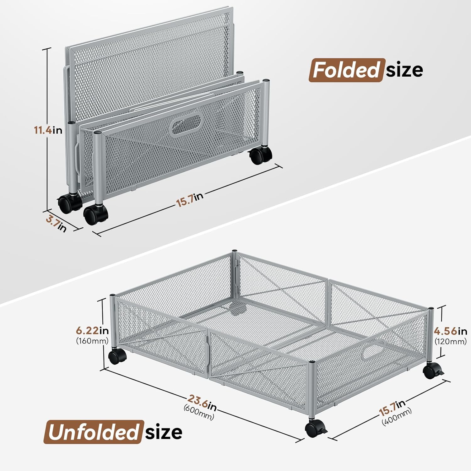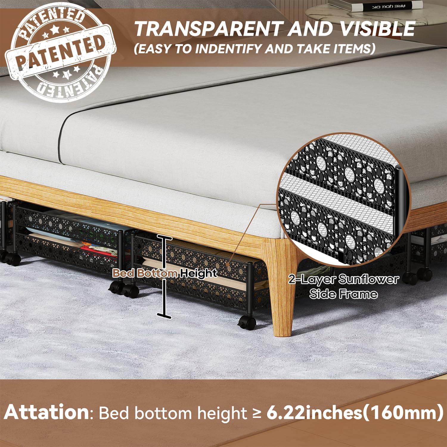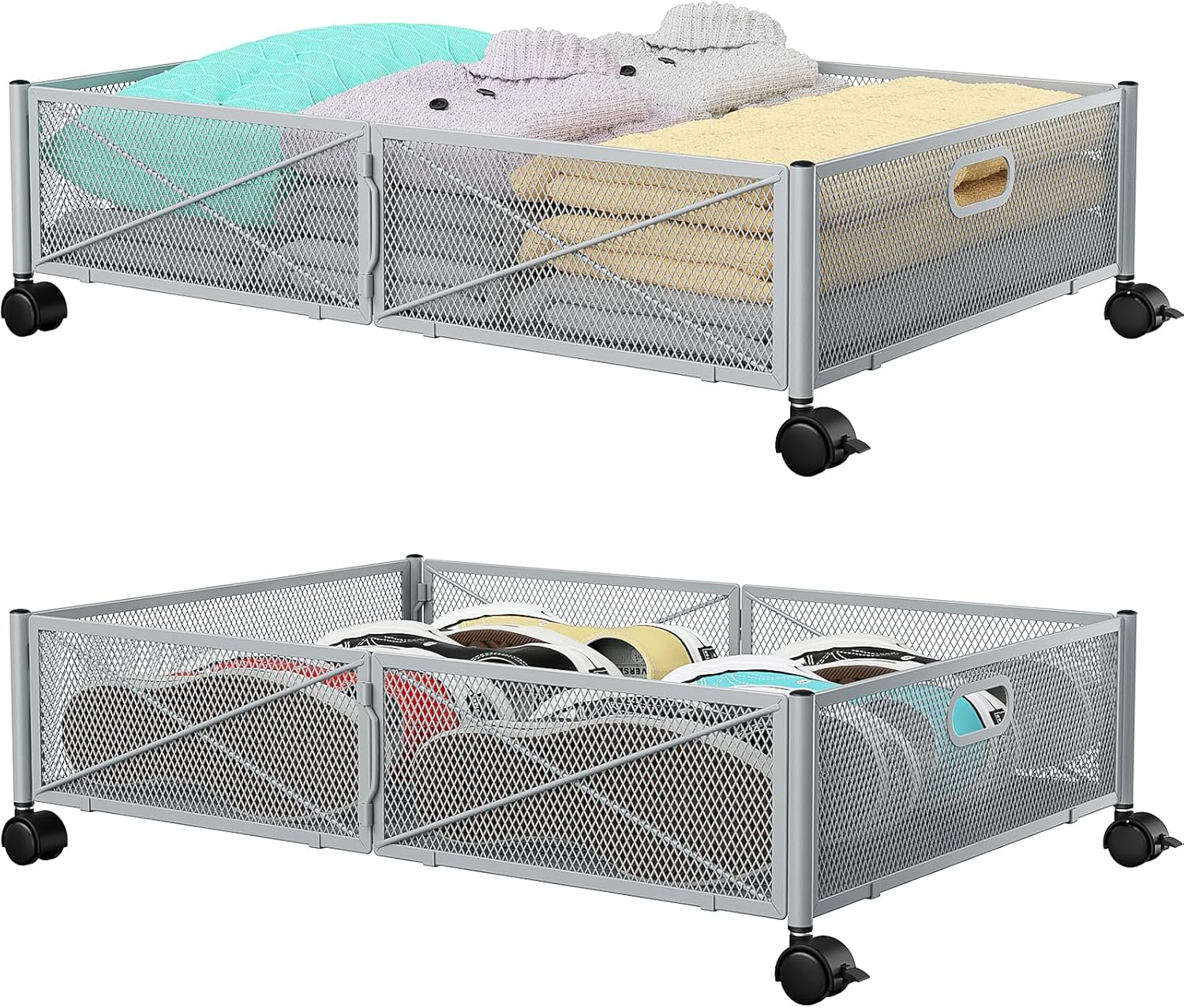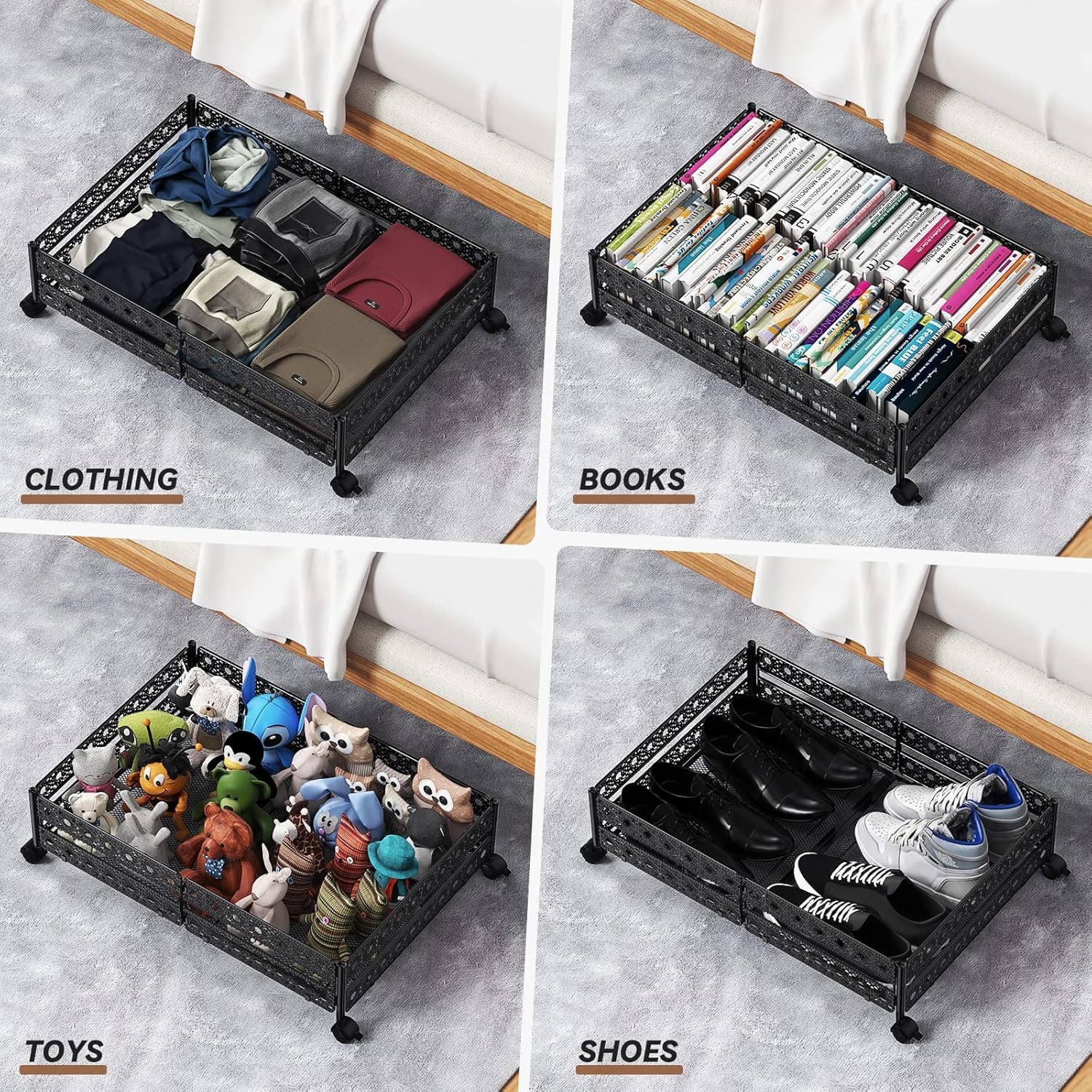 Under Bed Storage, Under the Bed Storage Containers with Wheels, Under Bed Shoe Storage Organizer Drawer, Tool-free Assembly Metal Underbed Storage Containers for Bedroom Clothes Shoes Blankets -4PCK