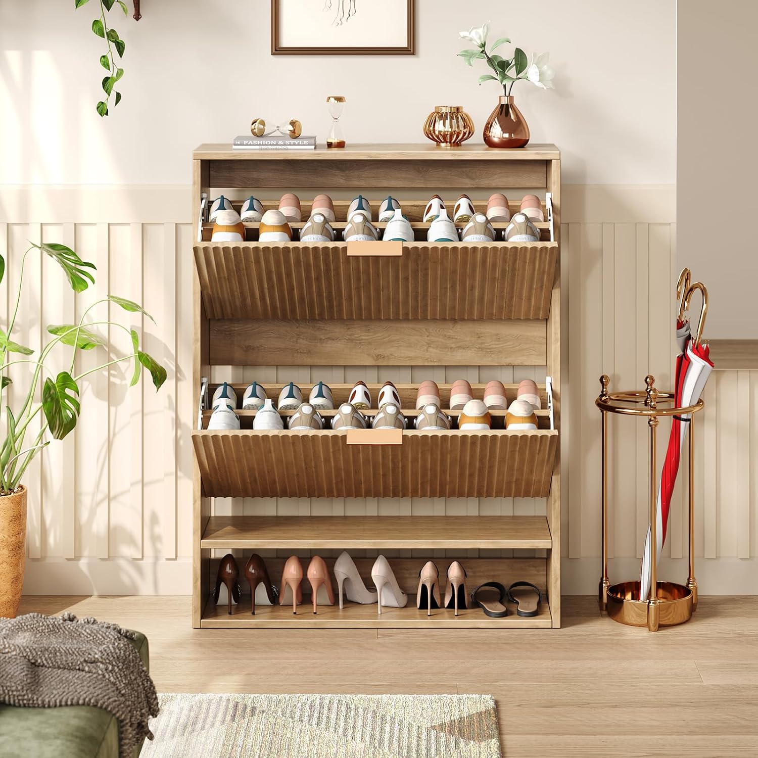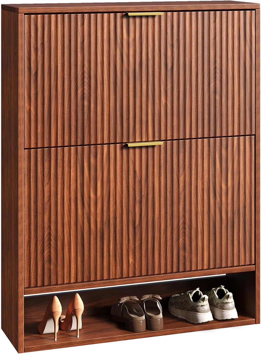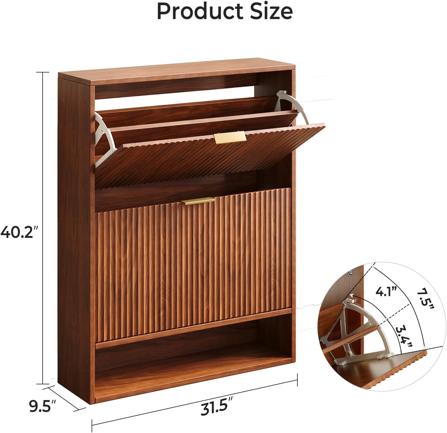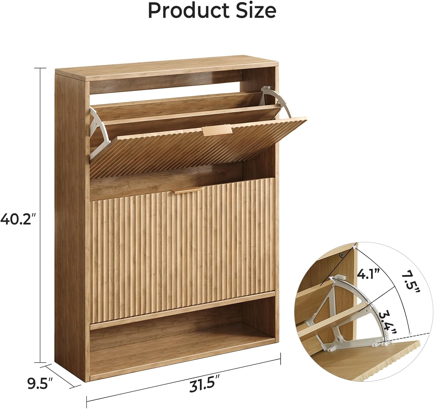 Shoe Storage Cabinet,Farmhouse Shoe Organizer with 2 Flip Drawers & Barn Door Design,Freestanding Hidden Slim Narrow Shoe Rack Cabinet for Entryway,Foyer,Hallway,Antique White