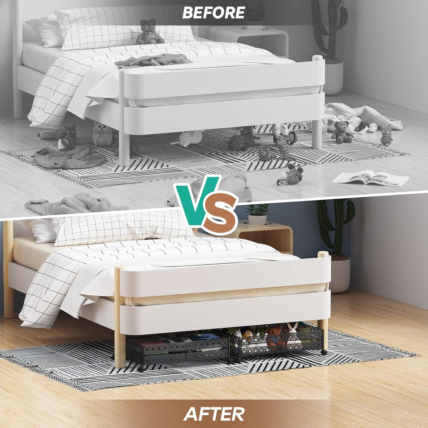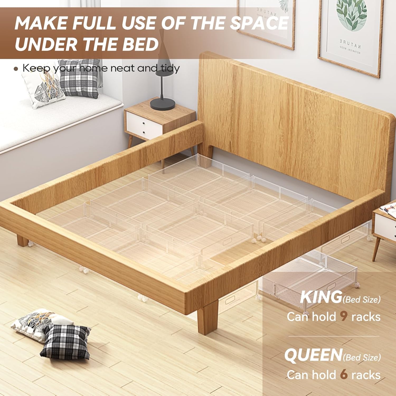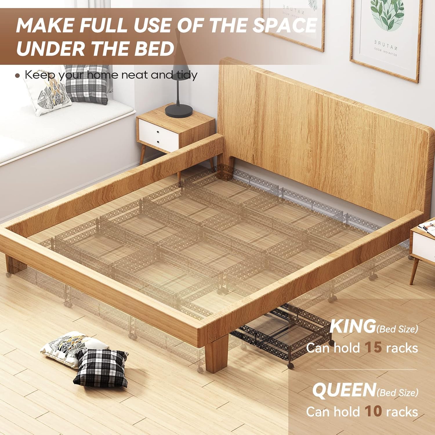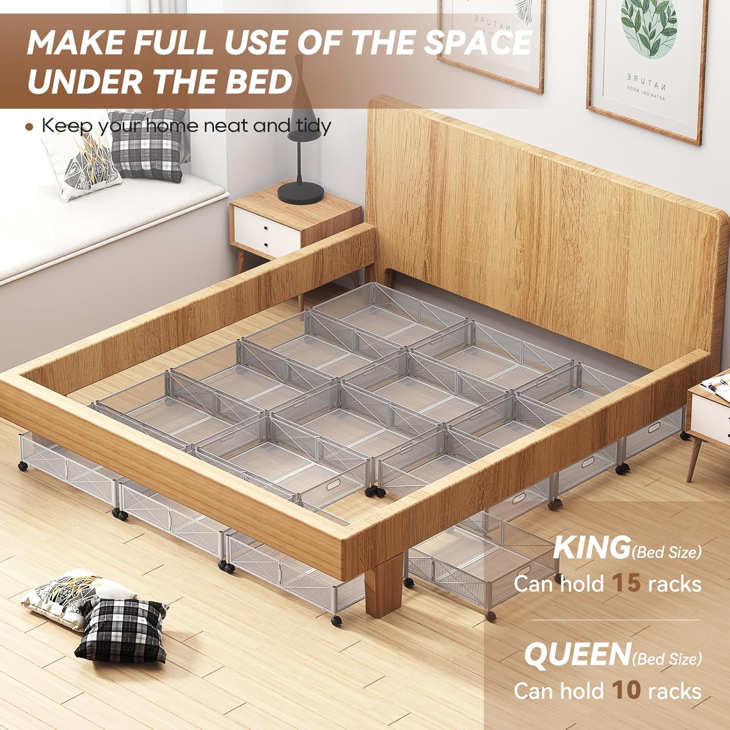Under Bed Storage Containers with Wheels - Shoe Storage Organizer Drawer, Tool-free Assembly Metal Underbed Storage for Bedroom Clothes, Shoes, Blankets - 4Pack