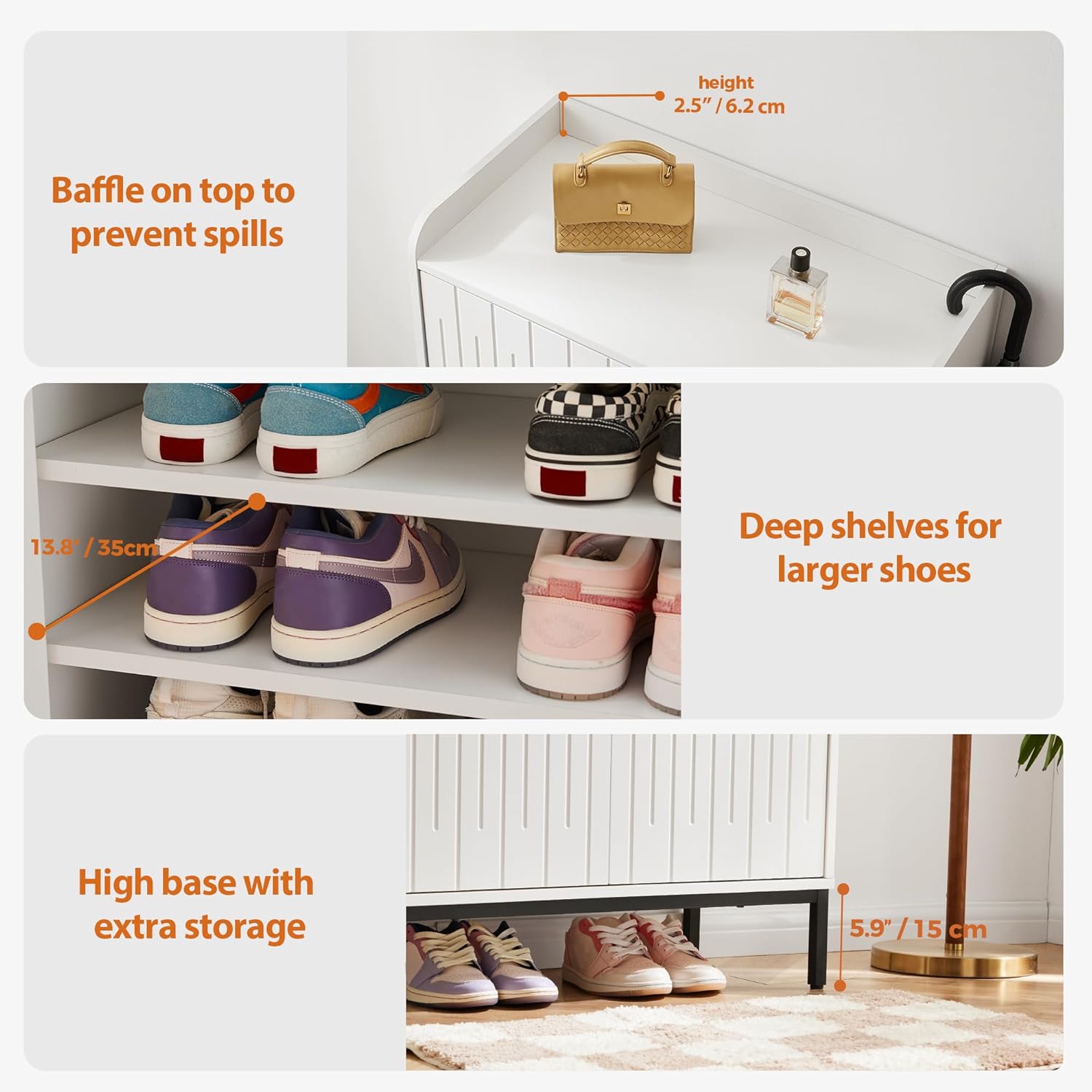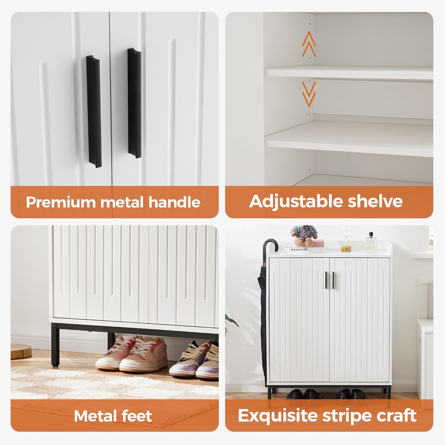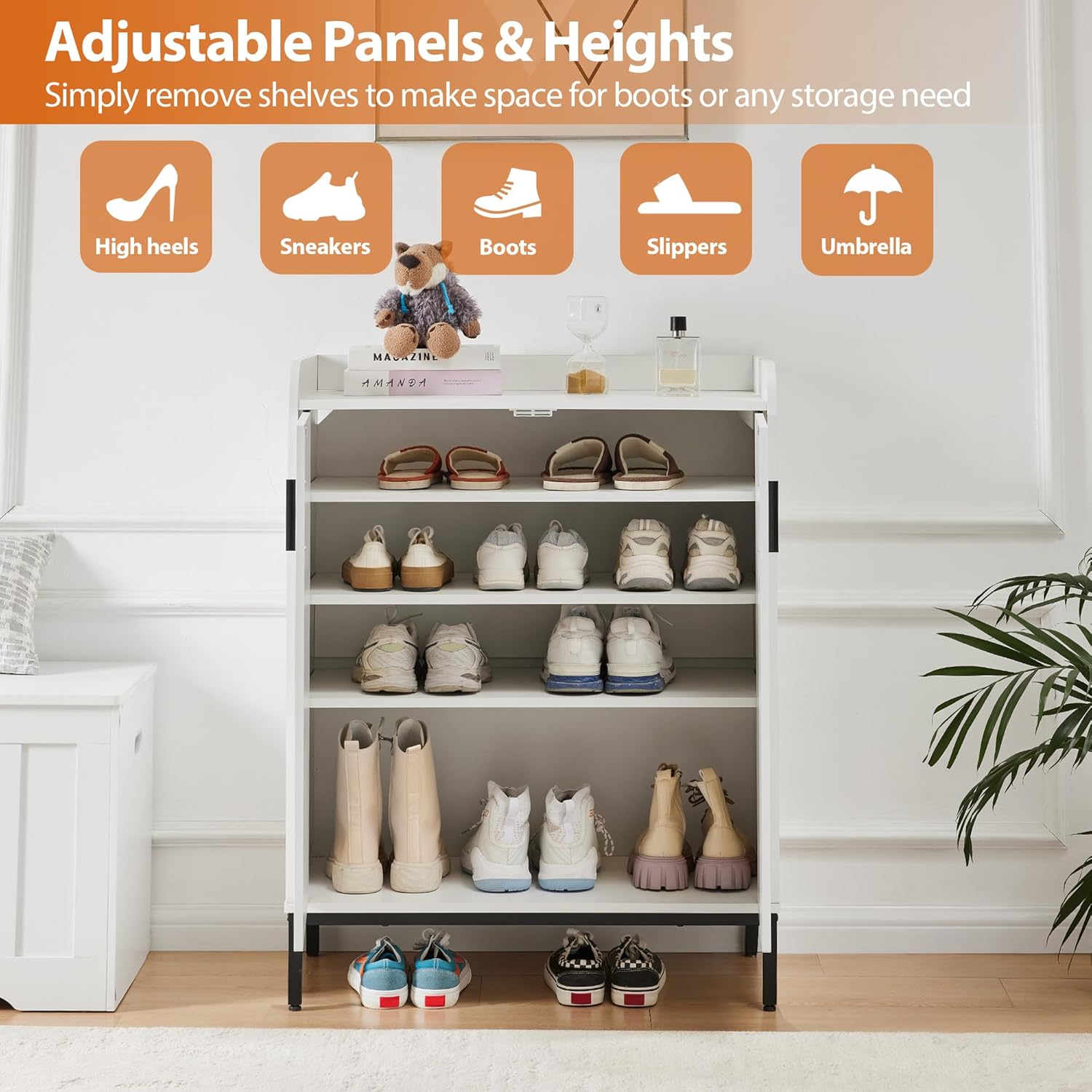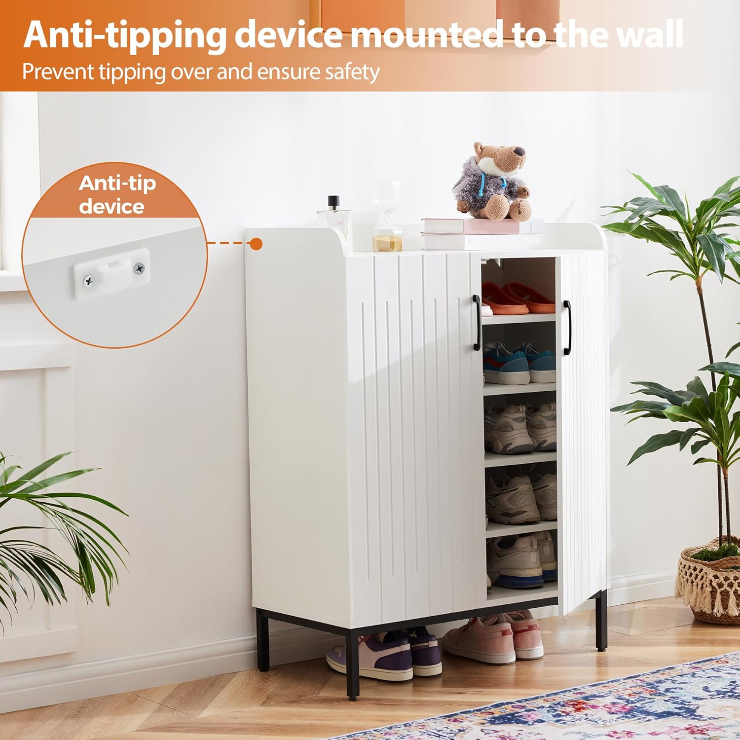 Modern Shoe Cabinet with Metal Legs, Farmhouse Large 5-Tier Shoe Storage Cabinet with Doors, Wooden Shoe Organizer for Entryway, Hallway, Closet, Bedroom, Living Room, White