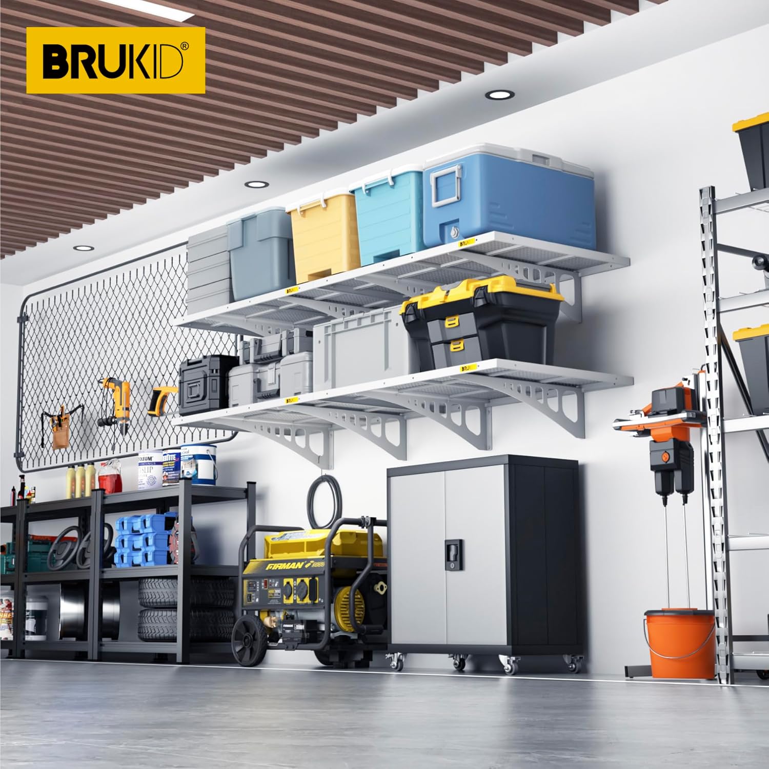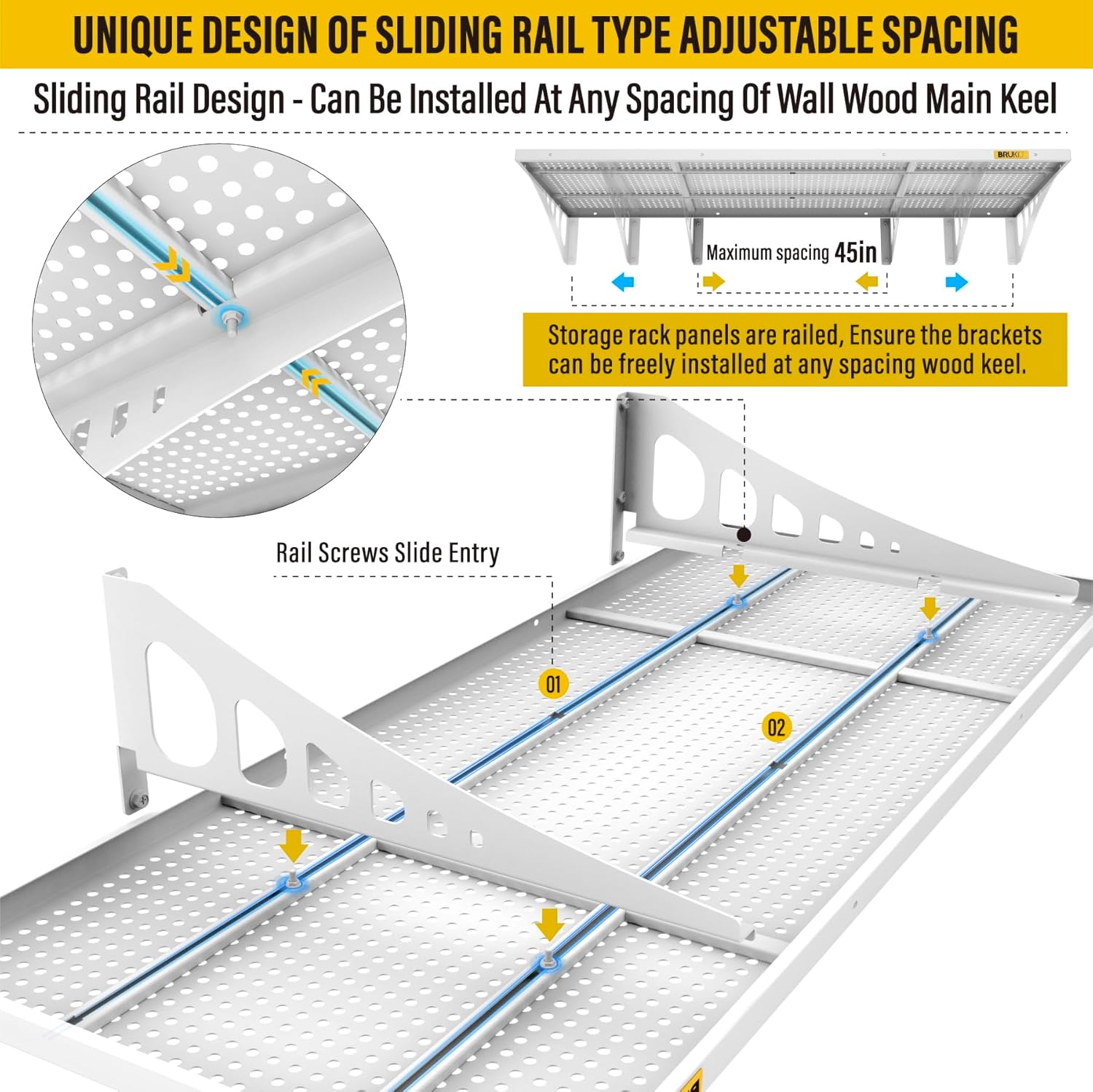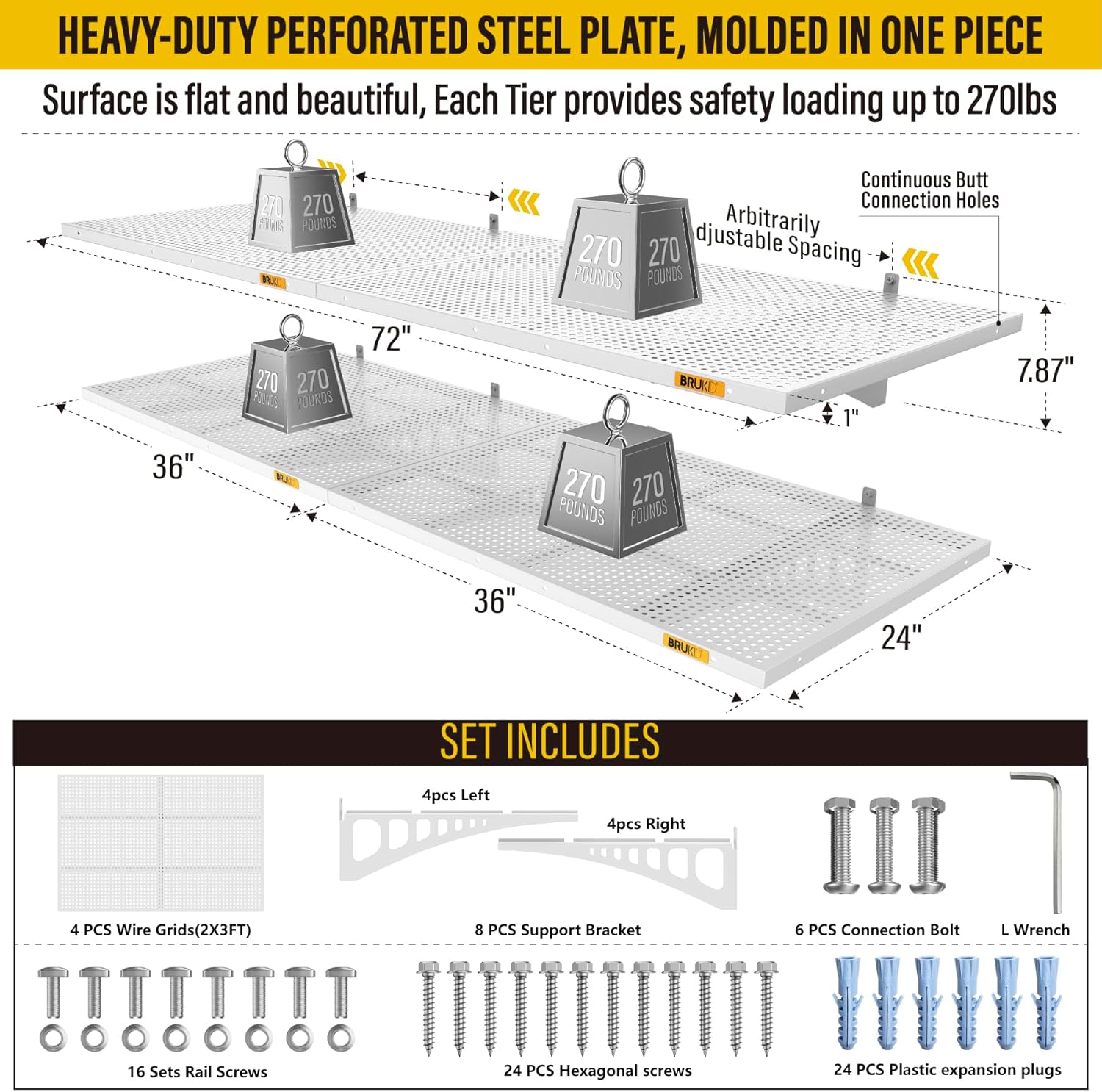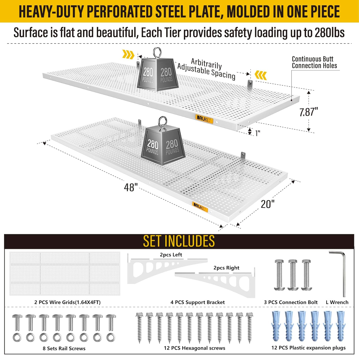 2Pack 1.64x4ft Adjustable Metal Garage Wall Shelving Heavy Duty Garage Storage Shelf Wall Mounted White