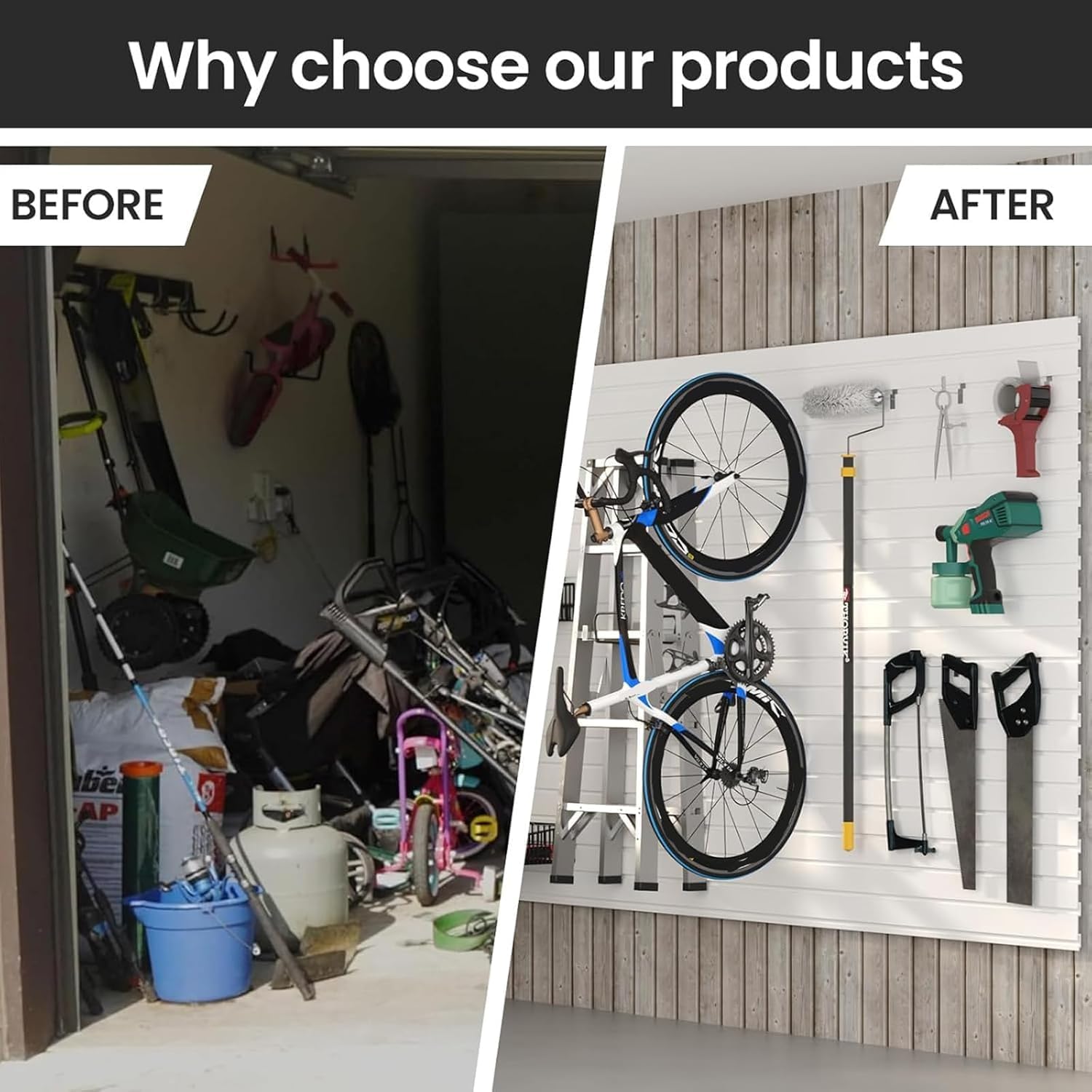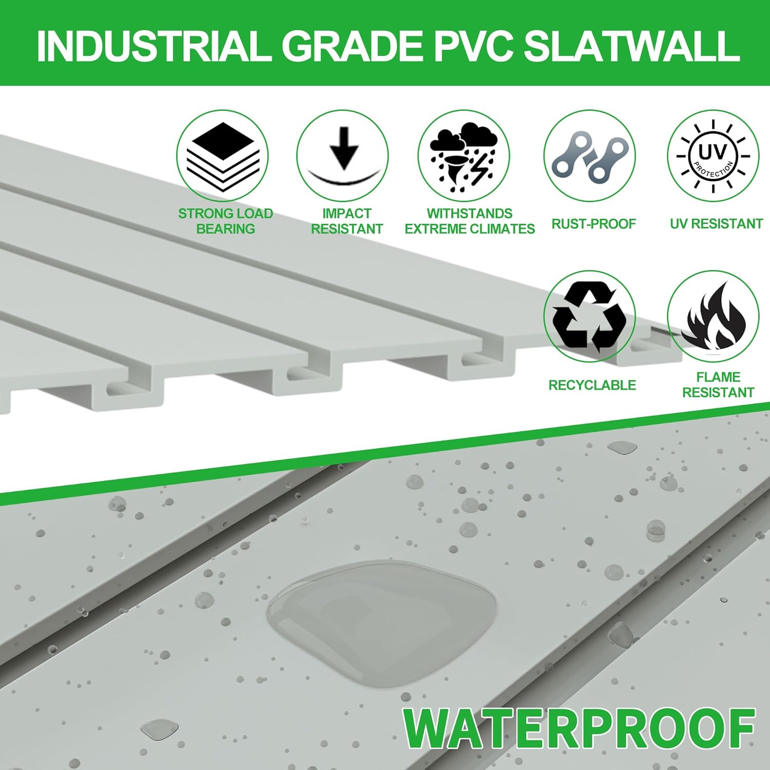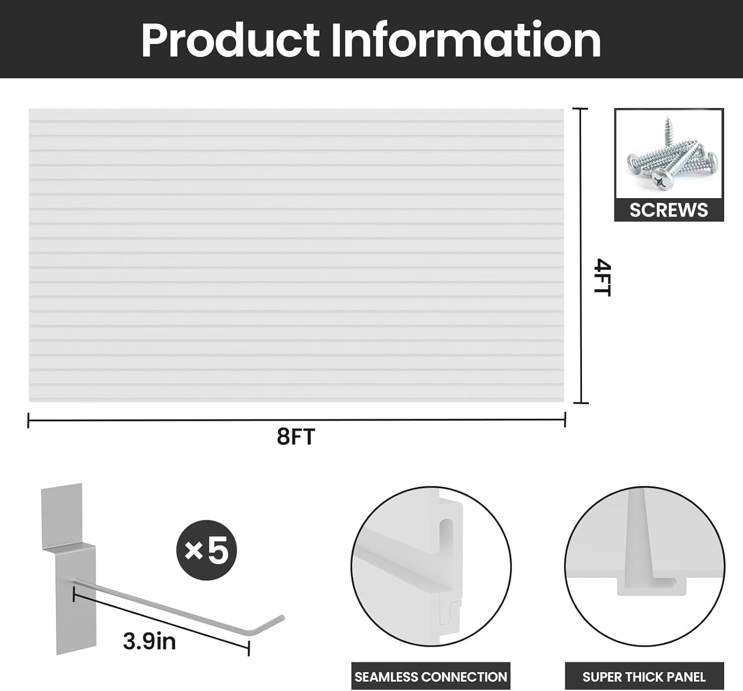 RELIANCER PVC Slat Wall Panels,4ft by 8ft (32 sqft) Garage Wall Organizer Storage System,Interlocking Slatwall Paneling Sheets,Workshop Slatwall Shelves Tools Organization,Wall Mounted Storage Rack