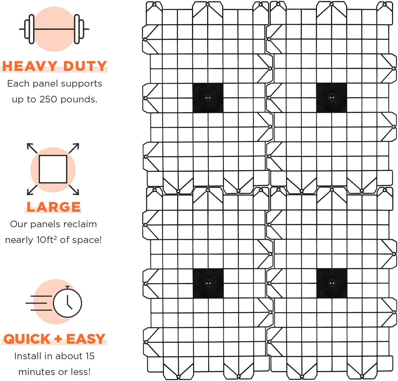 Flooring Storage System, Walking Deck Pallet Boards for Attic, Easy Installation Floor System for Garage, Roof and More, 4 Panels Included - Black