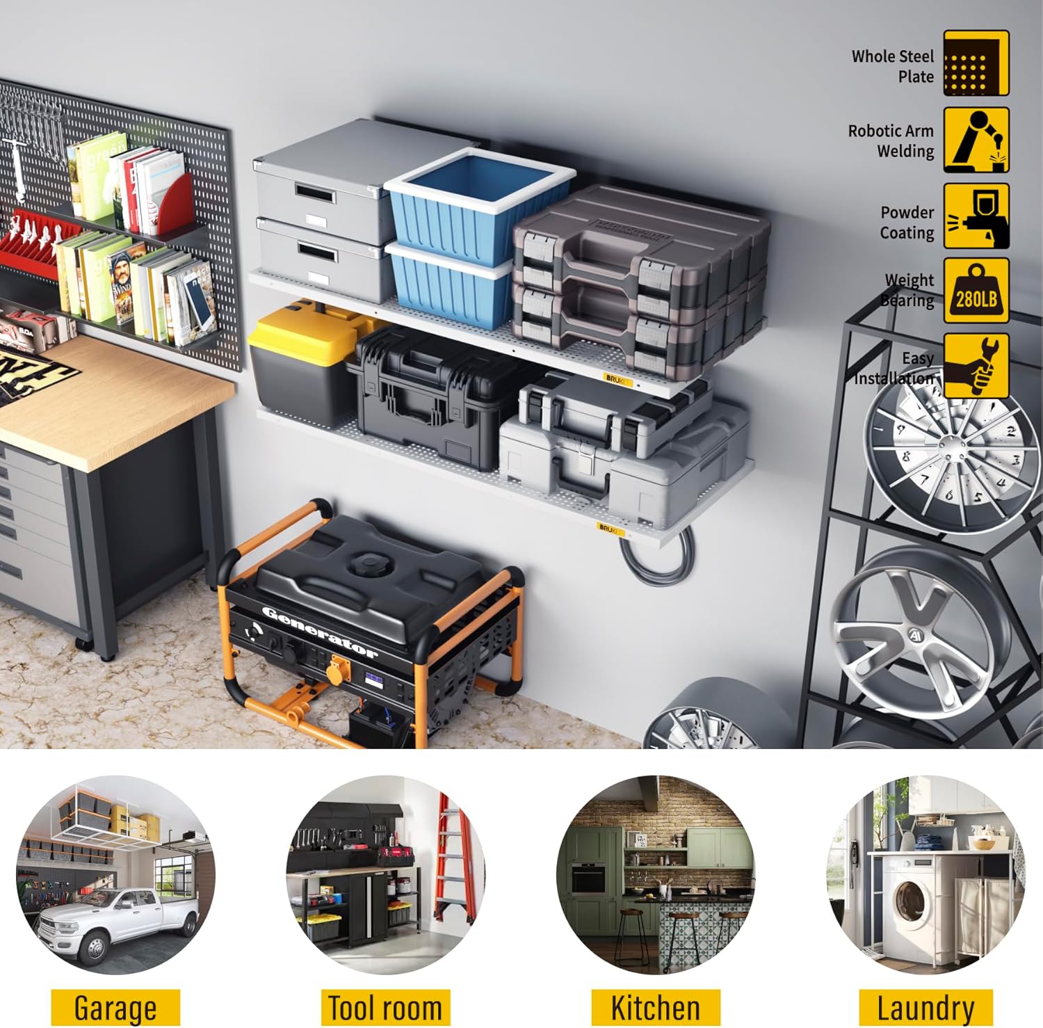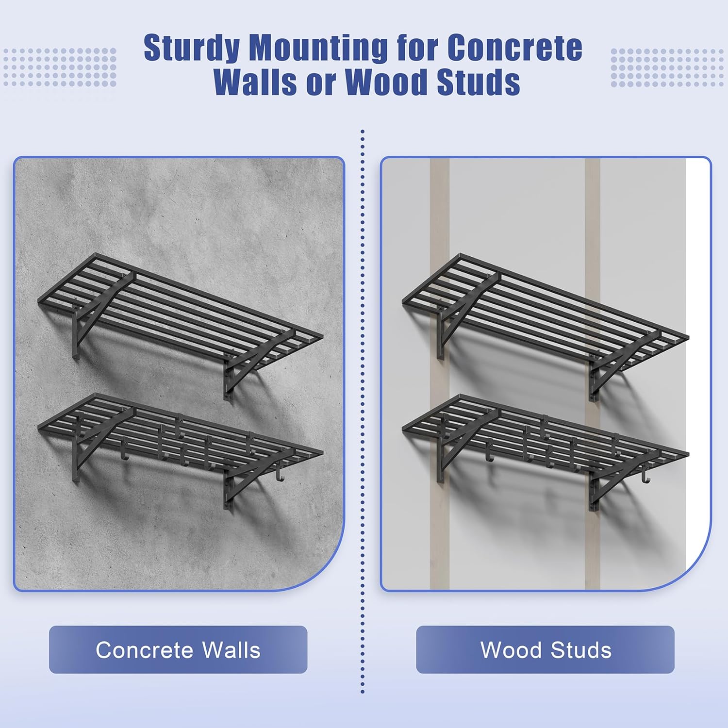2Pack 1.64x4ft Adjustable Metal Garage Wall Shelving Heavy Duty Garage Storage Shelf Wall Mounted Black