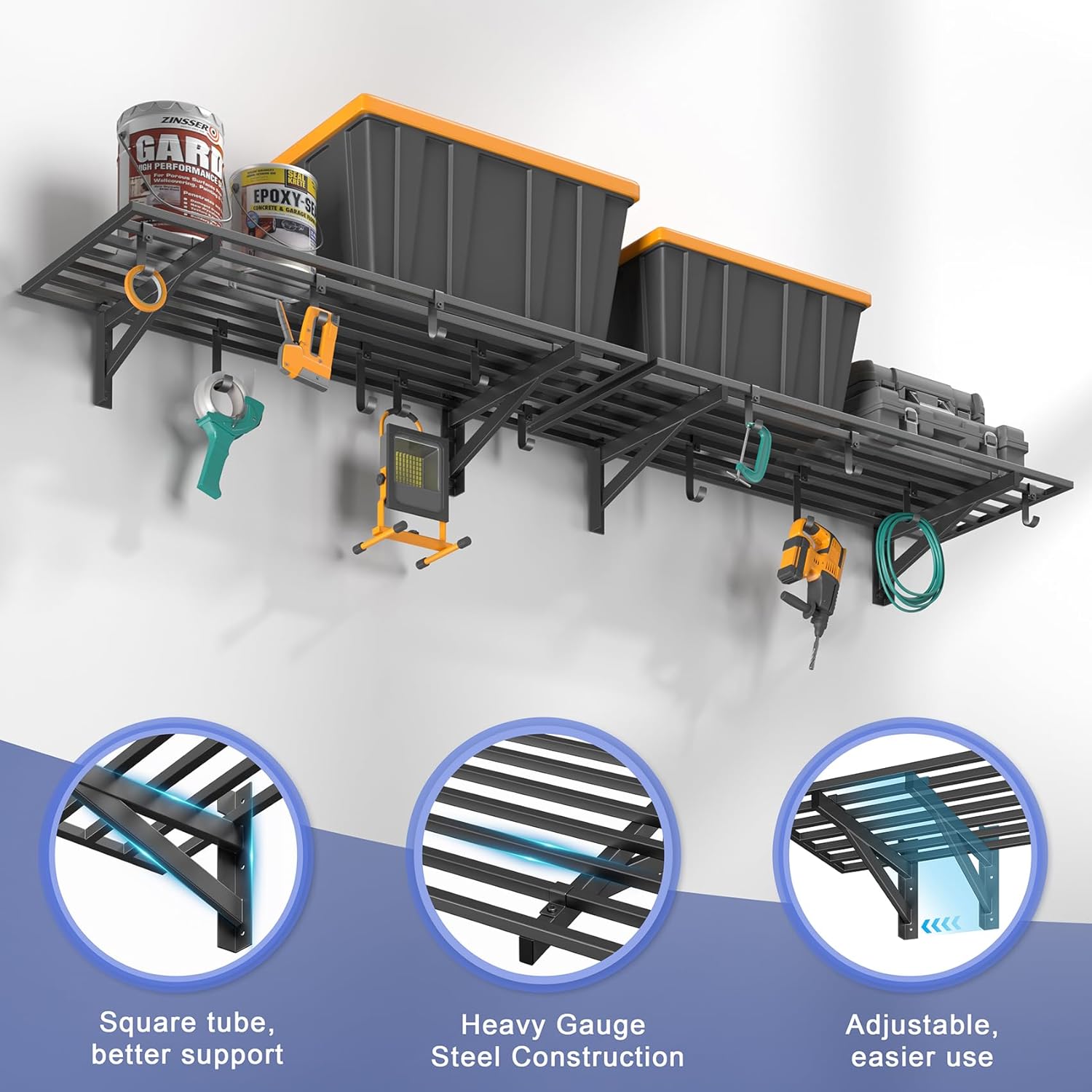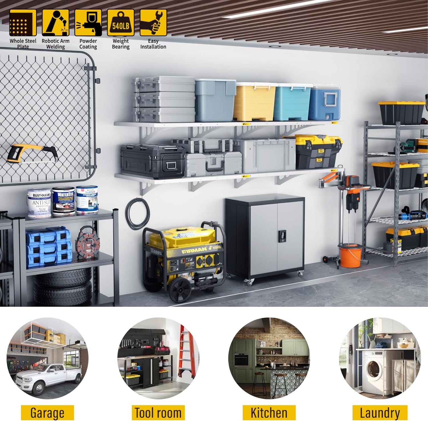 4-Pack 1.5x4ft Garage Shelving Wall Mounted, 1.5 x 4' Heavy Duty Garage Storage Shelves with Hooks, 800LB Capacity